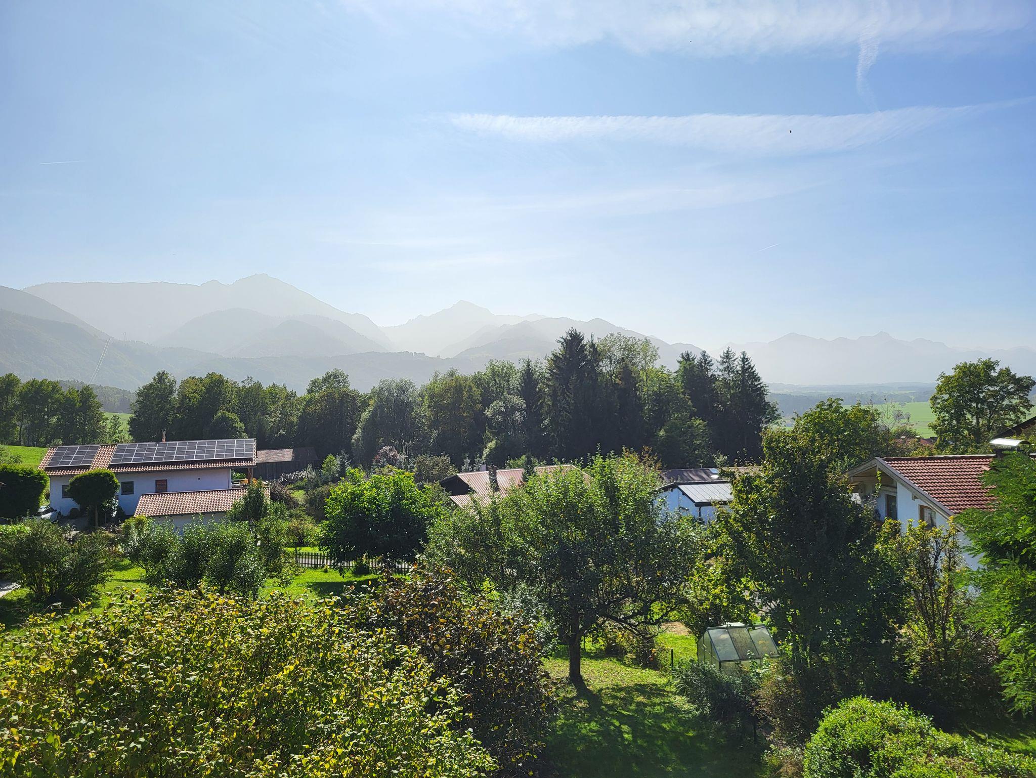 Unser Gästehaus in Bernhaupten liegt in einer ruhigen Wohnlage an einer Südhanglage mit unverbauten Panoramablick auf unsere Hausberge Hochfelln und Hochgern und Kampenwand. Zudem verfügen wir über einen großen Garten mit Schaukel. In unmittelbarer Nähe befindet sich noch ein Spielplatz. Bernhaupten gehört zur Gemeinde Bergen. Der Ortskern ist 3 km von uns entfernt. Bergen selbst ist ein lebendiger Ort mit Kurpark, Kneippanlage, Naturfreibad mit Beachvolleyballanlagen, Einkaufsmöglichkeiten, Restaurants und Veranstaltungen. Direkt vom Haus weg sind Wanderungen und Radtouren in die Chiemgauer Berge oder zum Chiemsee möglich. Auch führt der Radweg Königsee-Bodensee in unmittelbarer Nähe an unserem Haus vorbei. Der Bahnhof ist fußläufig in 10 Minuten zu erreichen. Womit einem Tagesausflug mit der Bahn nach Salzburg, Rosenheim, München oder Traunstein nichts im Wege stünde. Ebenfalls befindet sich in Bahnhofsnähe ein kleiner Supermarkt der Ihren täglichen Bedarf abdeckt. Ihre Frühstücksbrötchen werden bei Bedarf von unserem heimischen Bäcker bis vor die Haustüre geliefert.