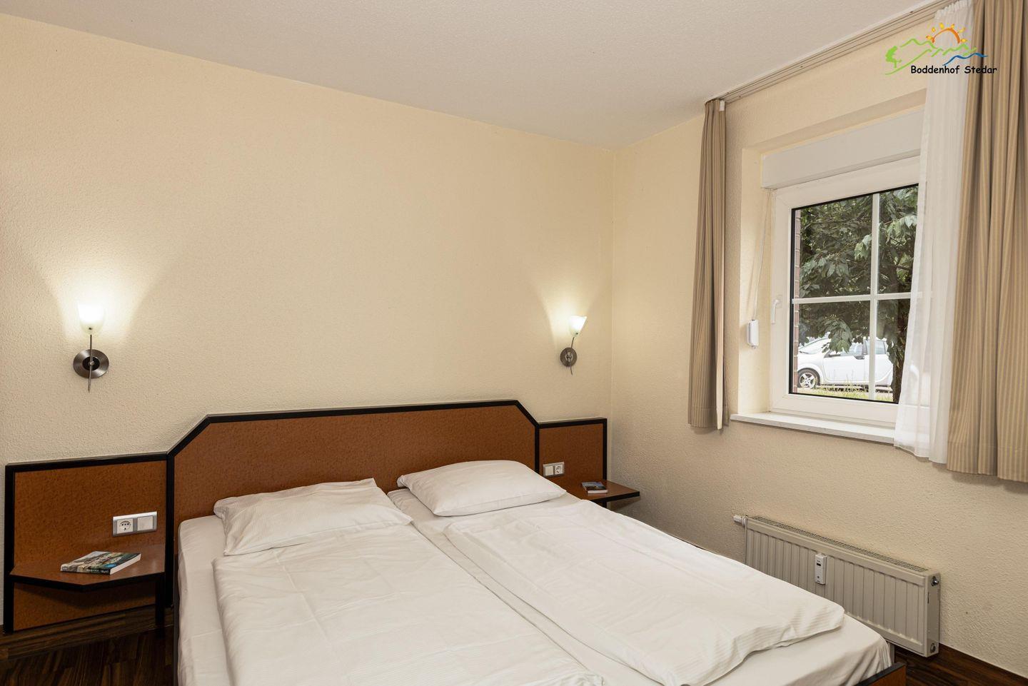 Das separate Schlafzimmer ist mit einem komfortablen Doppelbett ausgestattet.