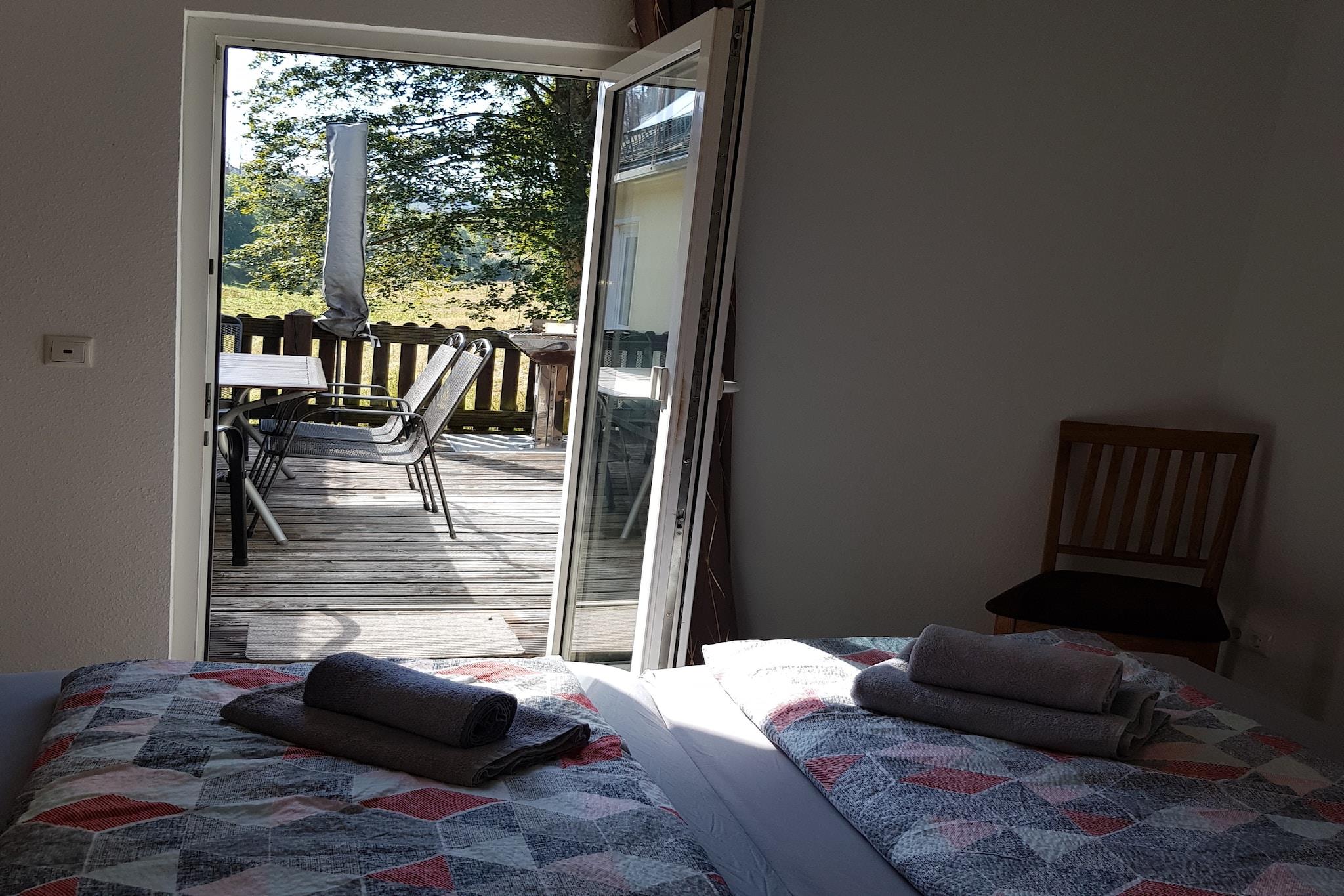 Beliggende i den fredelige landsby Weidenhausen tilbyder denne renoverede møllelejlighed stilfuld komfort midt i naturen. Ejendommen ligger på en fredfyldt 1.600 m² parklignende grund i 460 meters højde, hvilket giver et afsondret tilflugtssted for naturelskere. Indenfor kan gæsterne nyde moderne indretning, hyggelige rum og en privat sauna - perfekt til at slappe af efter en naturskøn vandretur. Den åbne planløsning fører til en 36m² terrasse med udsigt over den rolige mølledam. Halvt overdækket og udstyret med havemøbler og en kulgrill, er det en ideel ramme for afslappede måltider i den friske luft. Et fuldt udstyret køkken bidrager til hjemmets appel for kulinariske entusiaster. Weidenhausen ligger nær Rothaarsteig-stien og er en port til vandreparadis. Udforsk Berleburg Slot, besøg nærliggende dyrelivsparker, og opdag perler som Kahler Asten, Edersee og Atta Cave. Med Winterbergs skiløjper og Kyrill Trail også i nærheden, blander dette gemmested udendørs eventyr med stille luksus.