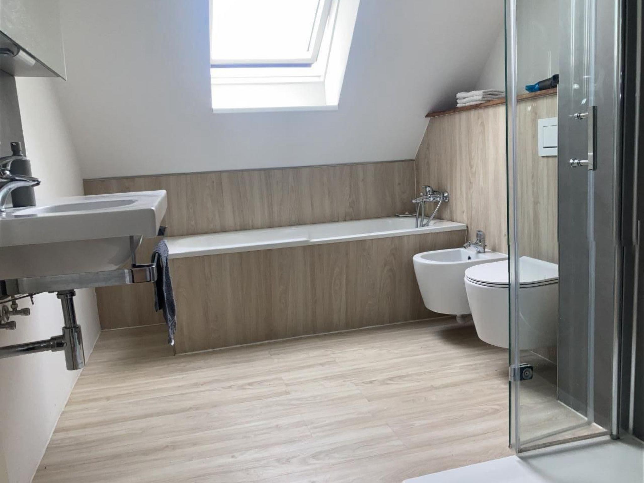 Modern, bright, very quiet room in an attic, suitable for singles, fitters, business travellers (only for single persons), lift to the 4th floor. In the room: a comfortable bed, 140x200cm, 1 table by the bed, a desk with armchair, a couch with table, a coat rack; modern easy-care vinyl floor, blackout blind plus curtain, lockable, the guest has access to the terrace where he can smoke. Otherwise the flat is a non-smoking area. Access to the modern bathroom with shower, bathtub, WC and bidet, shared use of the modern kitchen (equipped with everything you need, dishwasher).