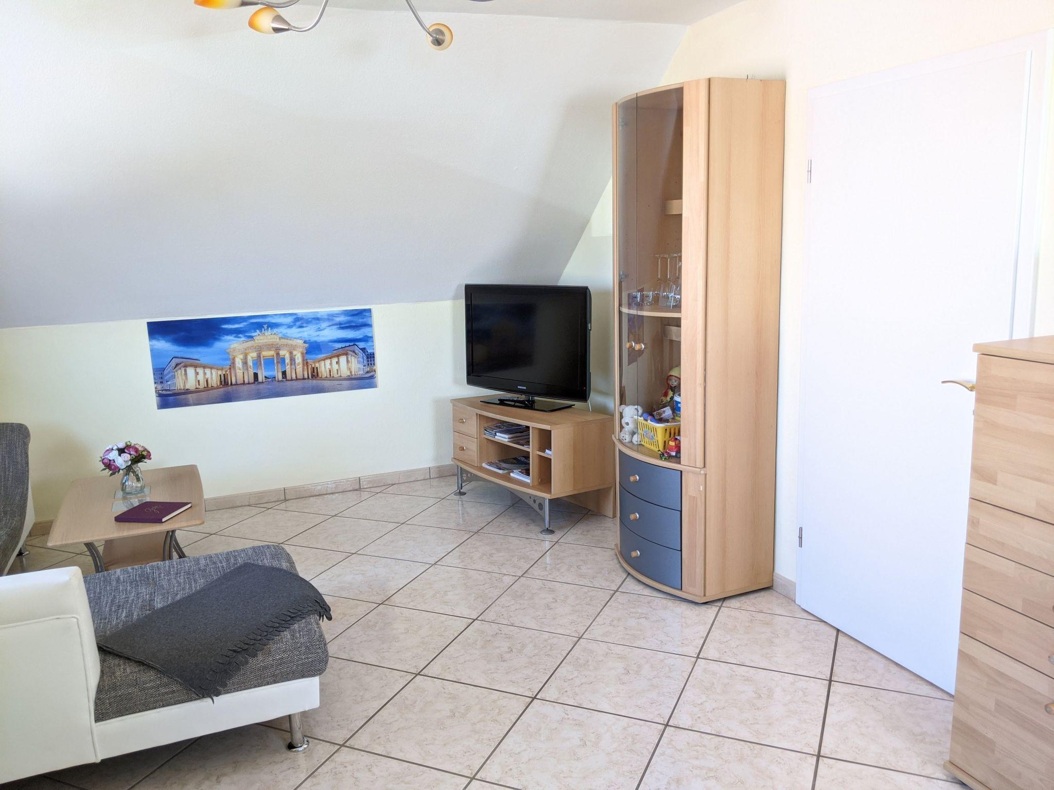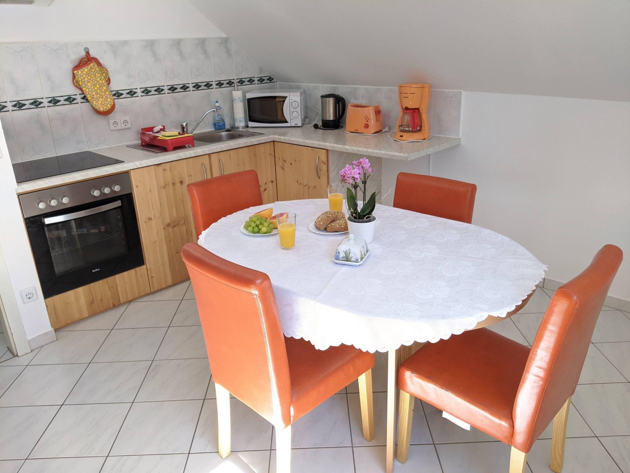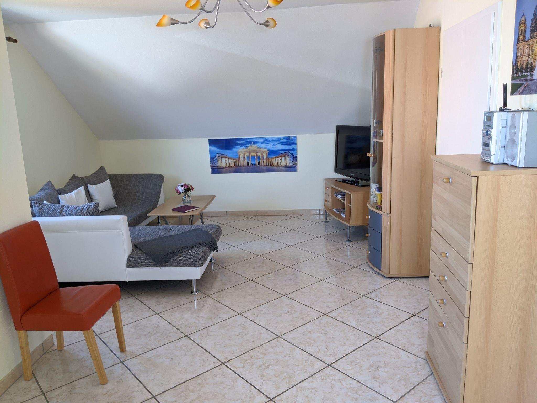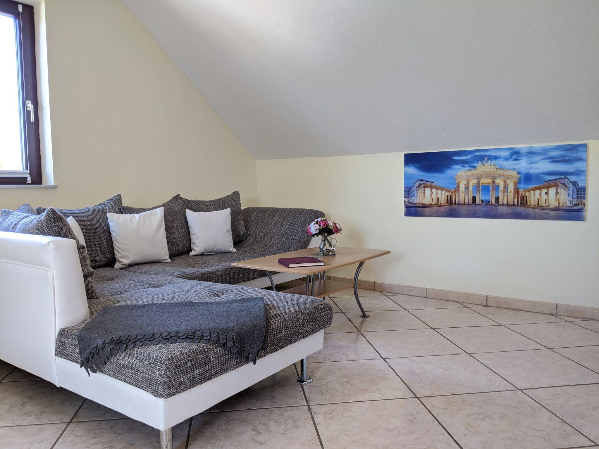 The flat is located on the top floor of a detached house and offers space for four people and one additional person with an extra bed.
