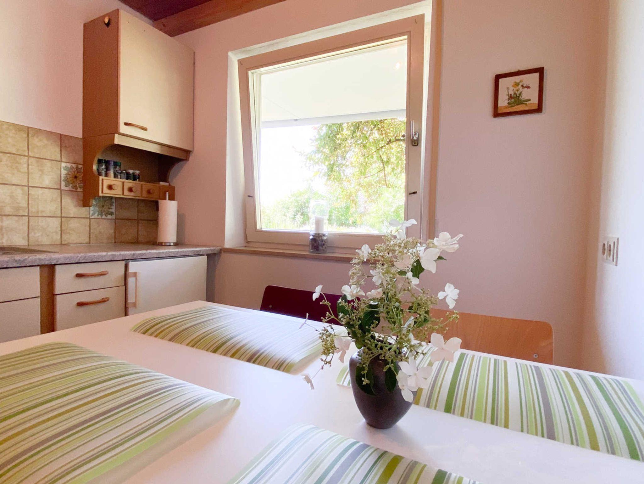 Unser Haus liegt in schöner, ruhiger Südwest-Wohnlage am Ortsrand (und noch nahe dem Ortszentrum, ca. 1km), unweit von Weinbergen und Feldern. Unsere Gäste wohnen in zwei geschmackvoll eingerichteten Ferienwohnungen im Erdgeschoss.