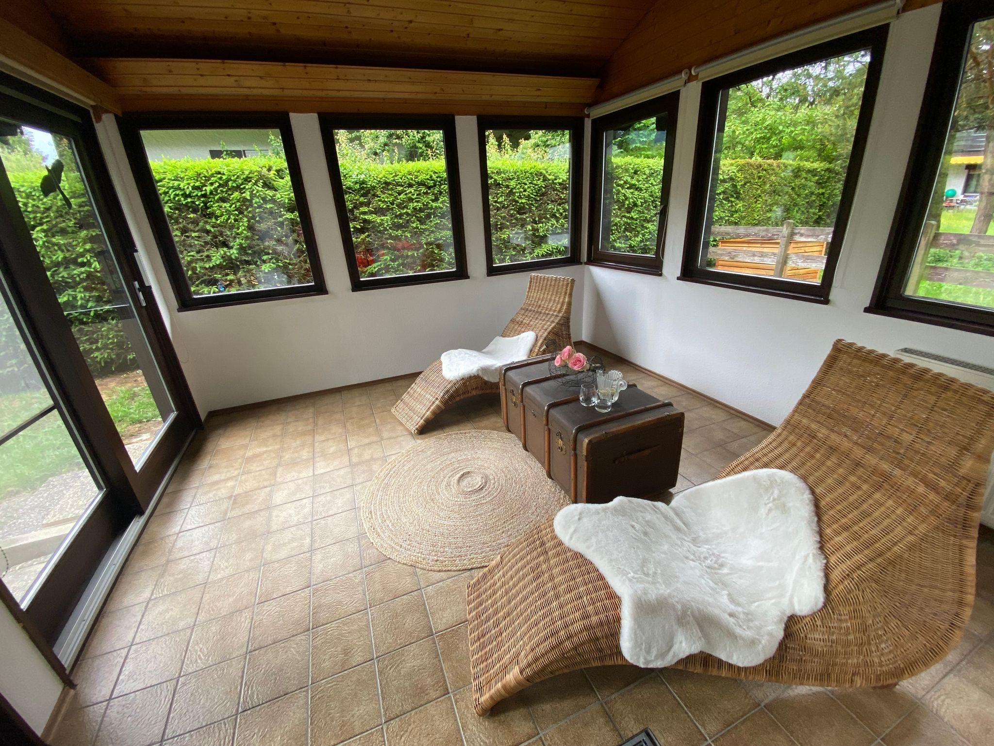 Die Ferienwohnung ist hell und sonnig, was für eine angenehme und freundliche Atmosphäre sorgt. Sie ist großzügig geschnitten und bietet viel Platz zum Wohlfühlen. Das Wohnzimmer (das zum Flur hin offen ist) lädt mit komfortabler Einrichtung zum Entspannen ein, während das Schlafzimmer einen ruhigen Rückzugsort bietet. Bei dem Schlafplatz für die 5. Person handelt es sich um ein Durchgangszimmer vom Wohnzimmer aus. Ein besonderes Highlight ist der Wintergarten, der viel Tageslicht durch große Fenster einfängt und einen schönen Blick nach draußen ermöglicht – perfekt für gemütliche Stunden bei Sonnenschein. Die gut ausgestattete Küche verfügt über alle notwendigen Geräte und Utensilien, sodass Sie bequem Ihre Mahlzeiten zubereiten können. Insgesamt bietet die Wohnung eine helle, freundliche und komfortable Umgebung für einen erholsamen Aufenthalt.