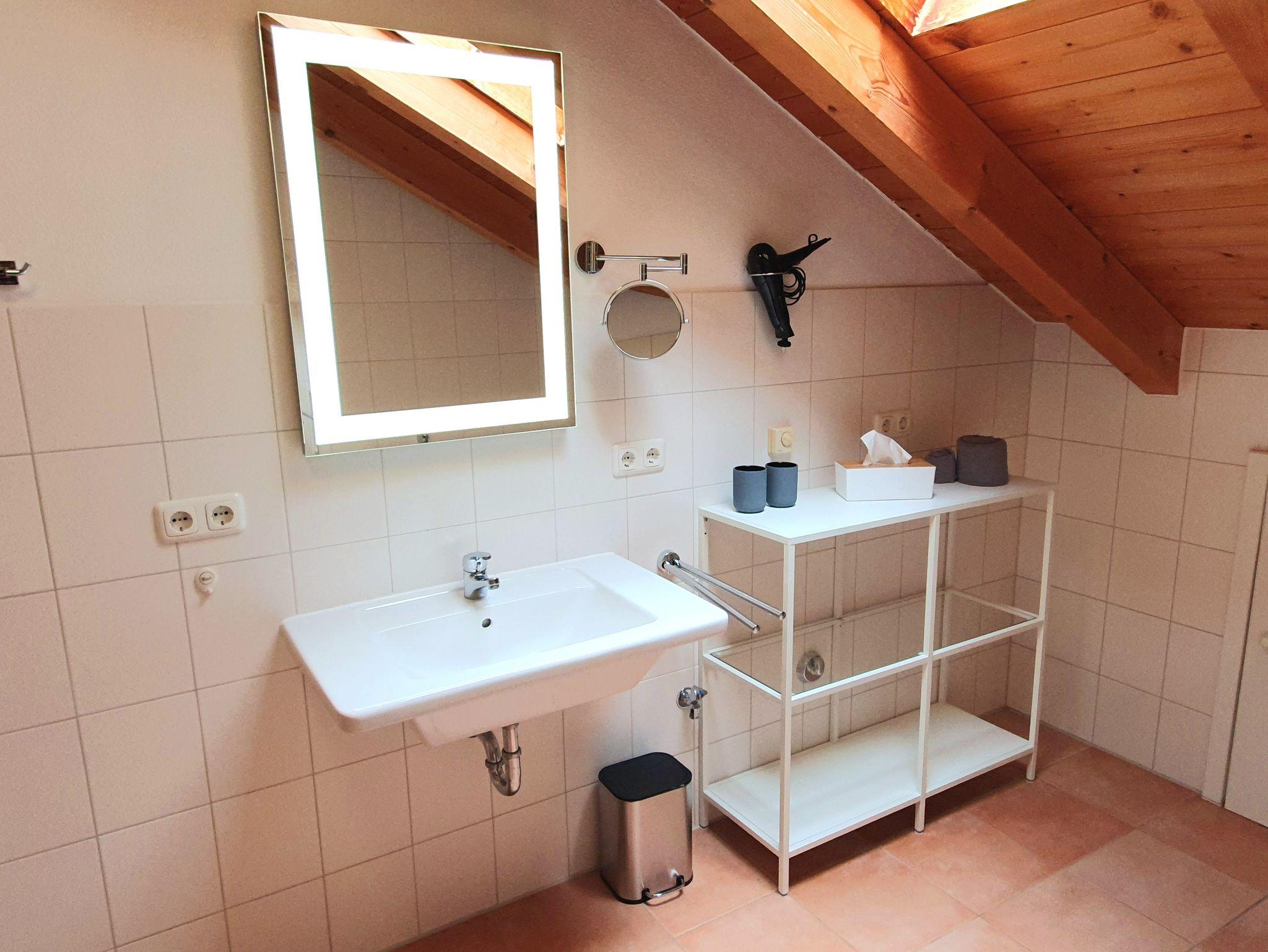 Der großzügige Flur im Eingangsbereich bietet genügend Stauraum für Ihre Kleidung, Koffer und Freizeitequipment. Damit Sie sich rundum wohlfühlen, stellen wir frische Handtücher sowie alle wichtigen Utensilien wie Seife, Duschgel und Putzmittel bereit.