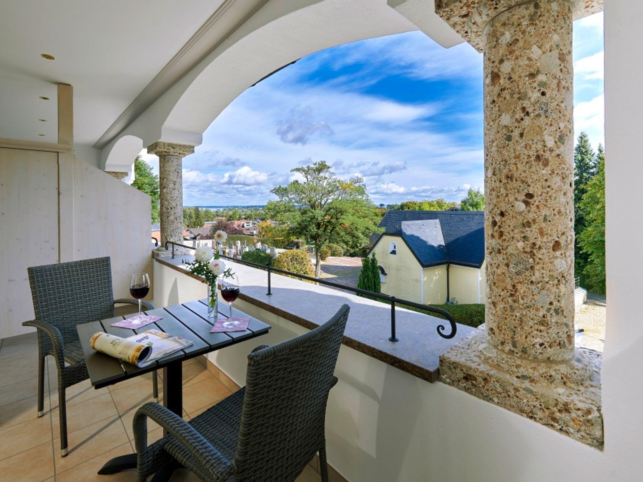 Das Bonnschlössel ist ein Ort mit Geschichte, an dem Sie in unseren neu gestalteten Ferienwohnungen die schönste Zeit des Jahres genießen können. Tauchen Sie ein in die Vergangenheit unseres Hauses! Der große Park mit seinem alten Baumbestand und die großzügige Terrasse laden zum Entspannen ein und im Haus begegnen Sie immer wieder der Zeugnissen aus vergangenen Zeiten des Bonnschlössls.In unseren mit viel Liebe zum Detail neu gestalteten Ferienwohnungen genießen Sie stilvoll Ihre schönsten Tage des Jahres: moderne Materialien und edles Design in Einklang mit der Geschichte des Hauses. Entspannen Sie! …im Haus, mit einem Glas Wein auf der Terrasse oder auf dem Liegestuhl in unserem großen Park – Sie sollen während Ihrem Aufenthalt in unseren Ferienwohnungen im Bonnschlössl am Chiemsee nichts vermissen! Die zehn Ferienwohnungen im Bonnschlössl sind unterschiedlich groß, aber alle sind mit maßgeschreinerten Möbel stilvoll eingerichtet. Der fantastische Blick in die Chiemgauer Bergwelt ist von vielen Wohnungen aus kostenlos zu genießen.Die Ferienwohnungen im 1. und 2. Stock sind alle bequem mit einem Lift erreichbar. Die großzügige Terrasse und ein gemütlicher Aufenthaltsraum laden zum Verweilen ein. Die große Parkanlage mit Sonnenliegen kann jederzeit gerne genutzt werden.Entspannung und Erholung finden Sie auch in unserem kleinen, aber feinen, Wellnessbereich. Hier stehen Ihnen ein Saunabereich und verschiedene Verwöhnprogramme (nach Terminvereinbarung) zur Verfügung! Unseren Gästen, die eine Ferienwohnung in Bernau am Chiemsee gebucht haben, stehen außerdem der Waschraum im EG mit Waschmaschine und Trockner zur freien Verfügung.Damit auch die PKW´s & Bikes den Urlaub genießen können, sind ausreichend Parkplätze sowie eine abschließbare Fahrrad-Garage vorhanden. Ebenso finden Sie eine Lade-Box für E-Auto's.