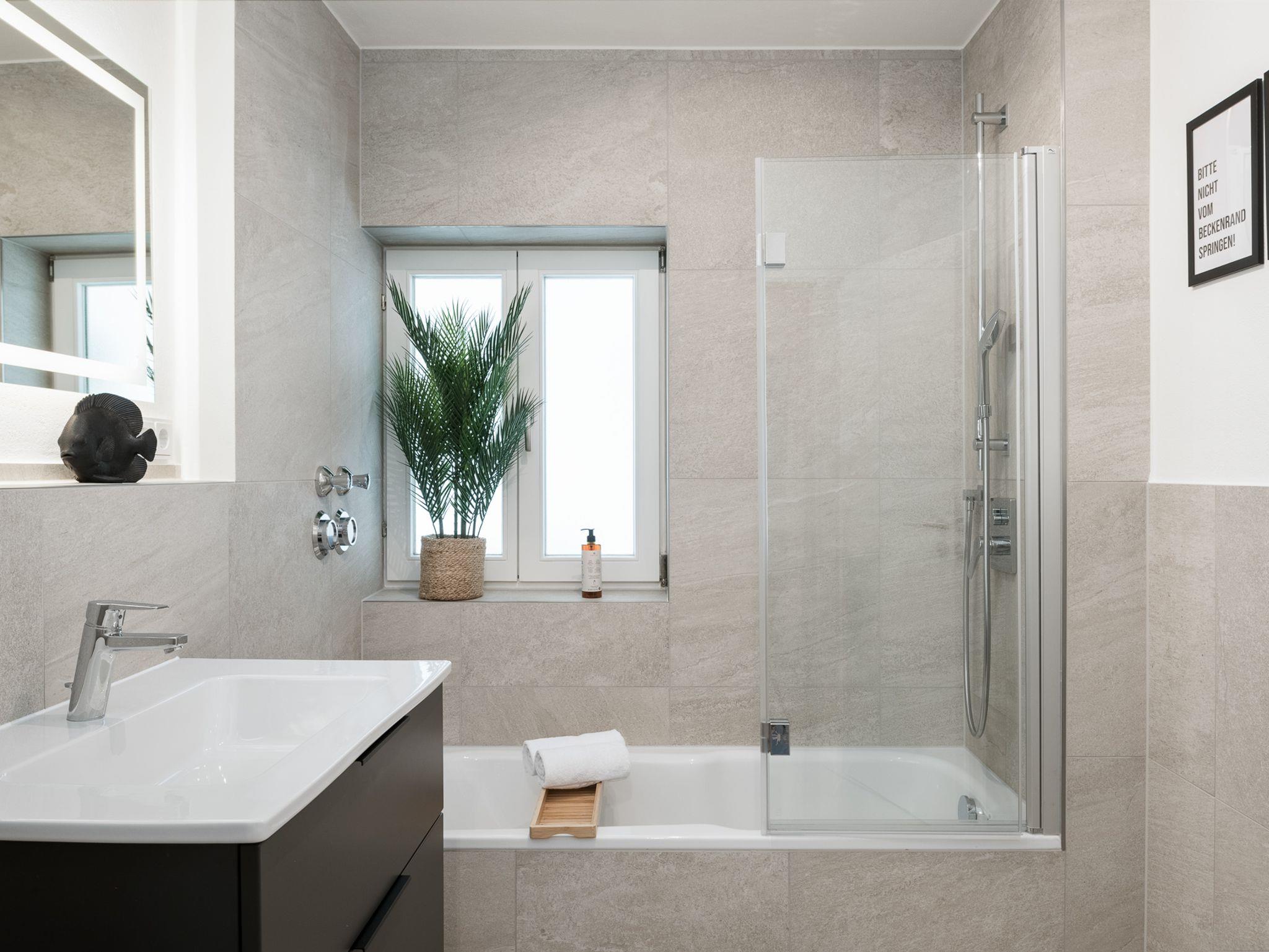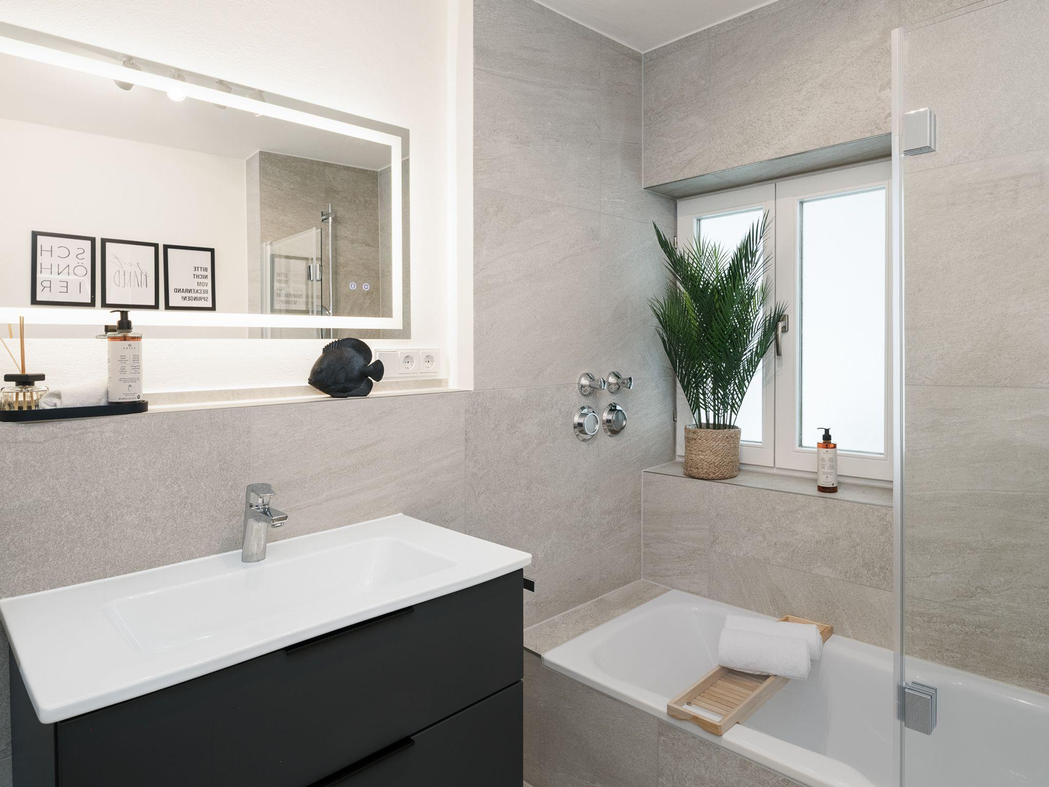 Nach einem erlebnisreichen Tag kannst Du im Badezimmer mit komfortabler Duschbadewanne wunderbar entspannen. Ein separates WC sorgt zusätzlich für noch mehr Freiraum.
