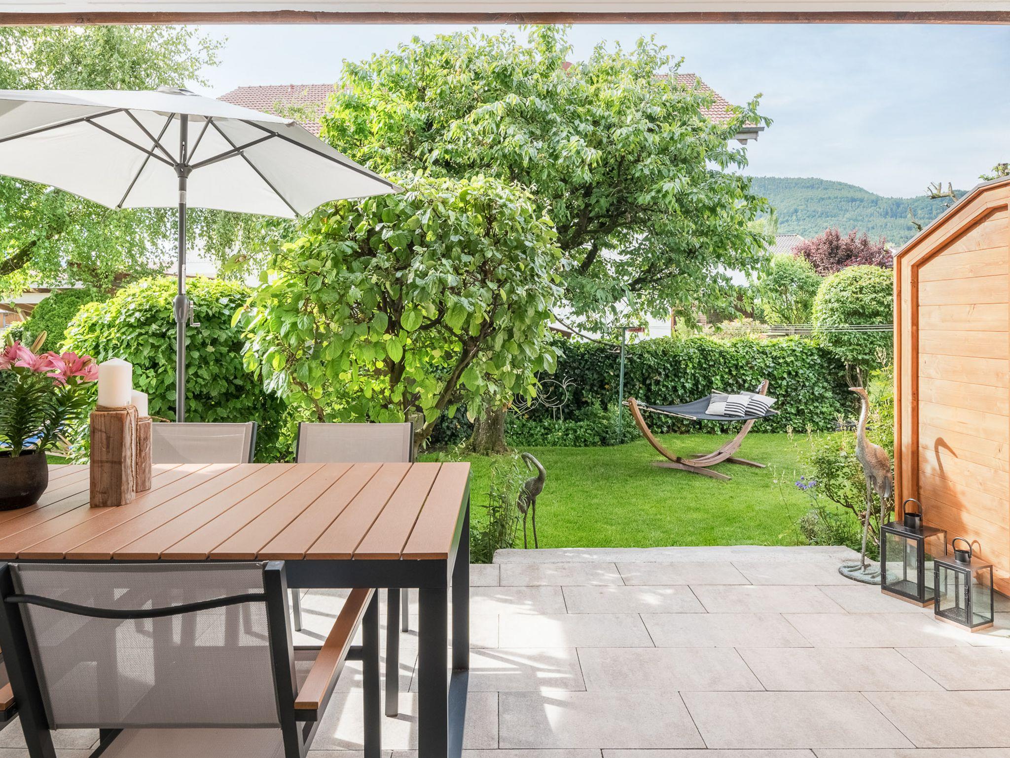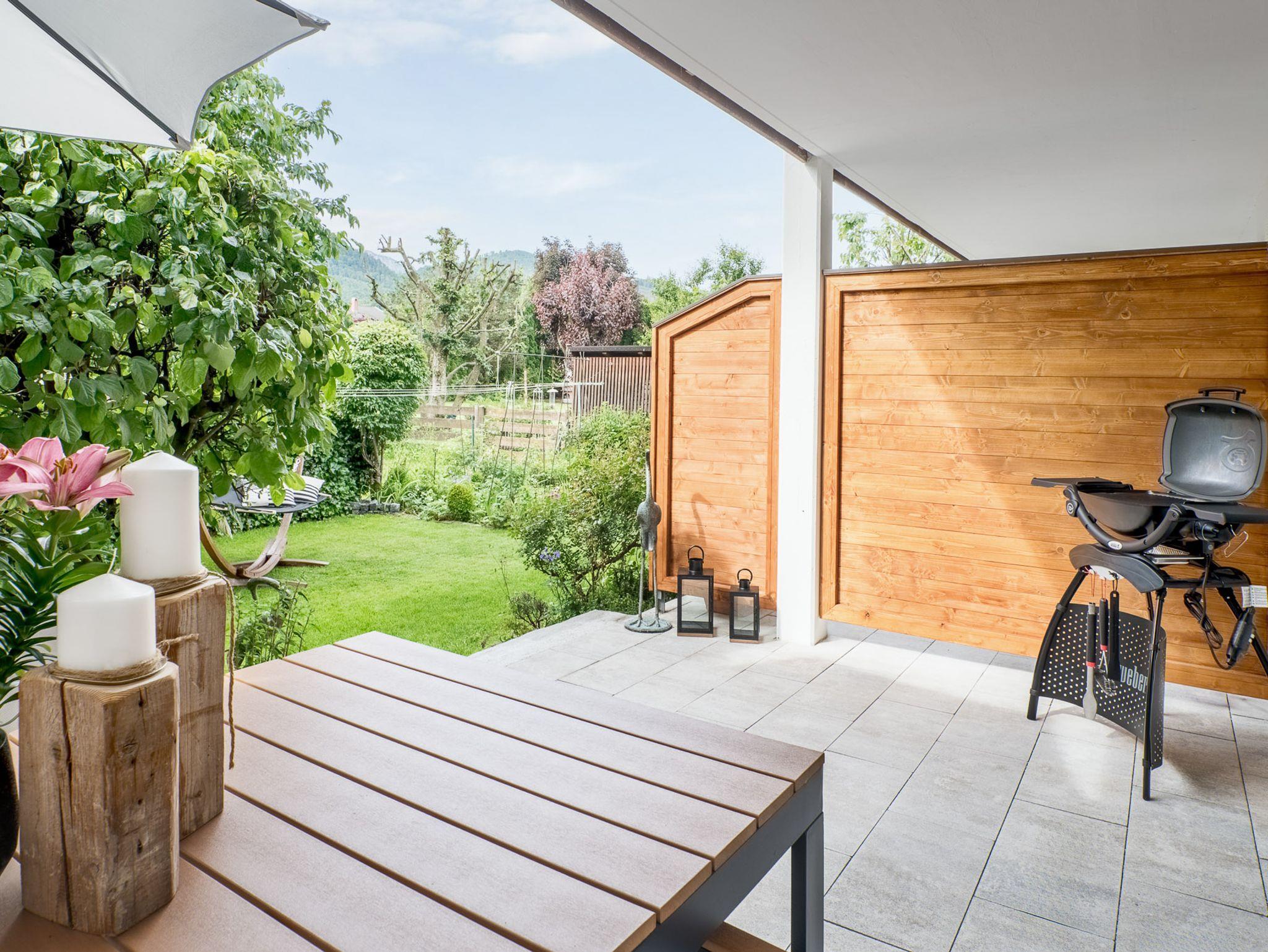 Deinen Tag kannst Du mit einem leckeren Kaffee auf der Terrasse mit Gartenblick beginnen und all die schönen Annehmlichkeiten dieses Apartments genießen.