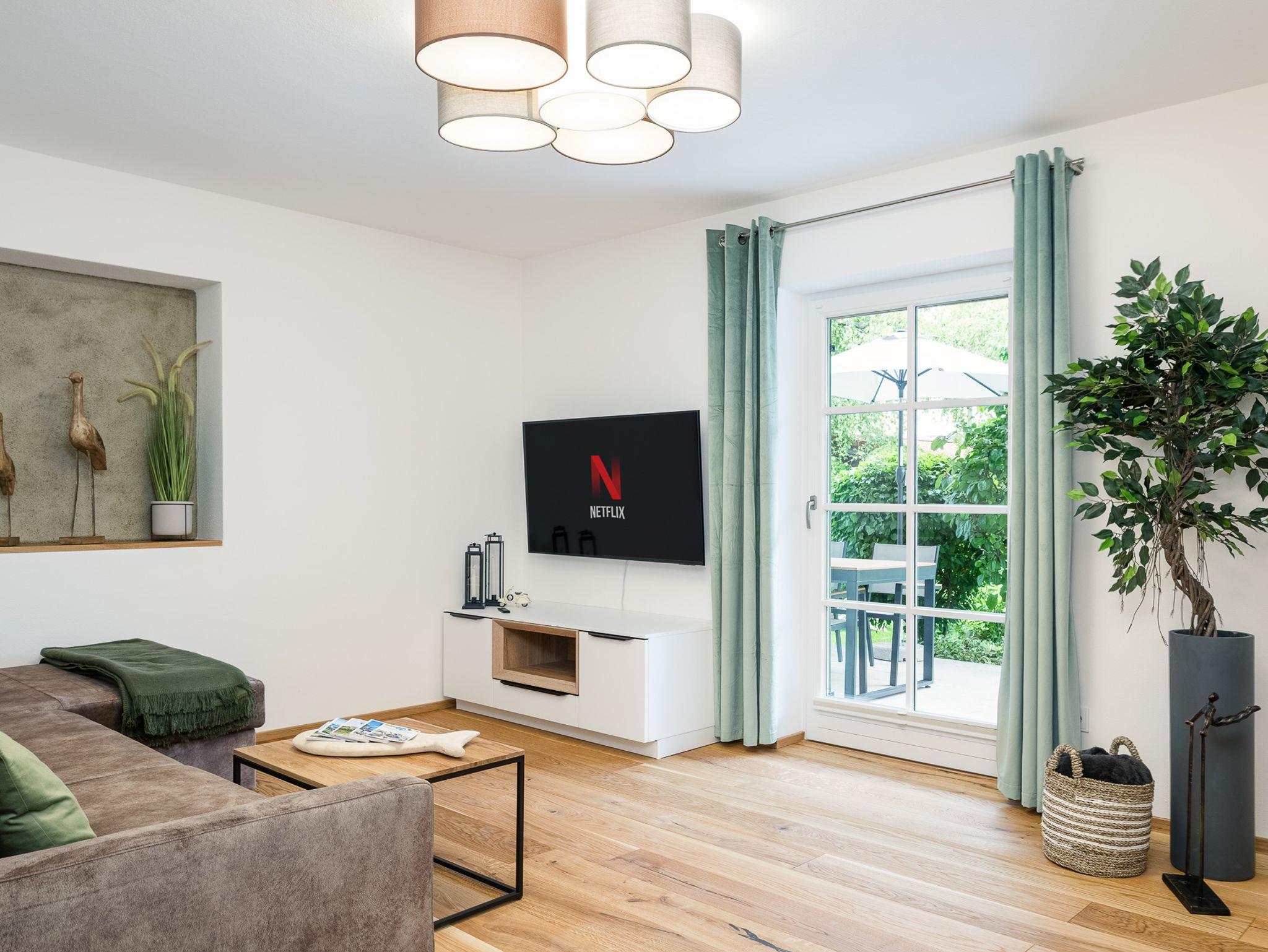 Entspann Dich im Wohnzimmer mit gemütlichem Ambiente, das mit einem 55-Zoll-Smart-TV inkl. NETFLIX und Internet-TV in UHD-Qualität ausgestattet ist. Genieße Deine Lieblingssendungen und Filme in bester Bildqualität.