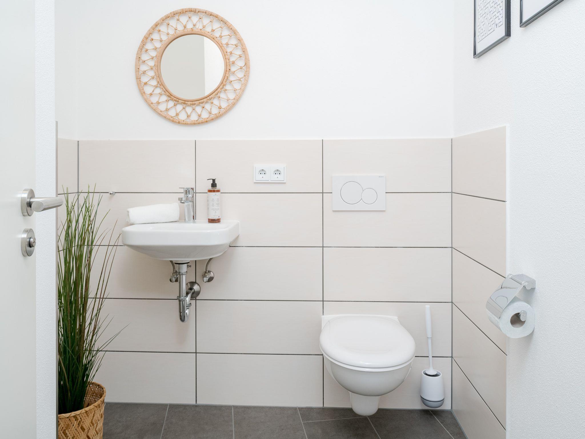 Das Badezimmer bietet sowohl eine Dusche als auch eine komfortable Badewanne. Hier kannst Du dich nach einem ereignisreichen Tag entspannen. Zusätzlich gibt es in dem Apartment noch ein Gäste-WC.