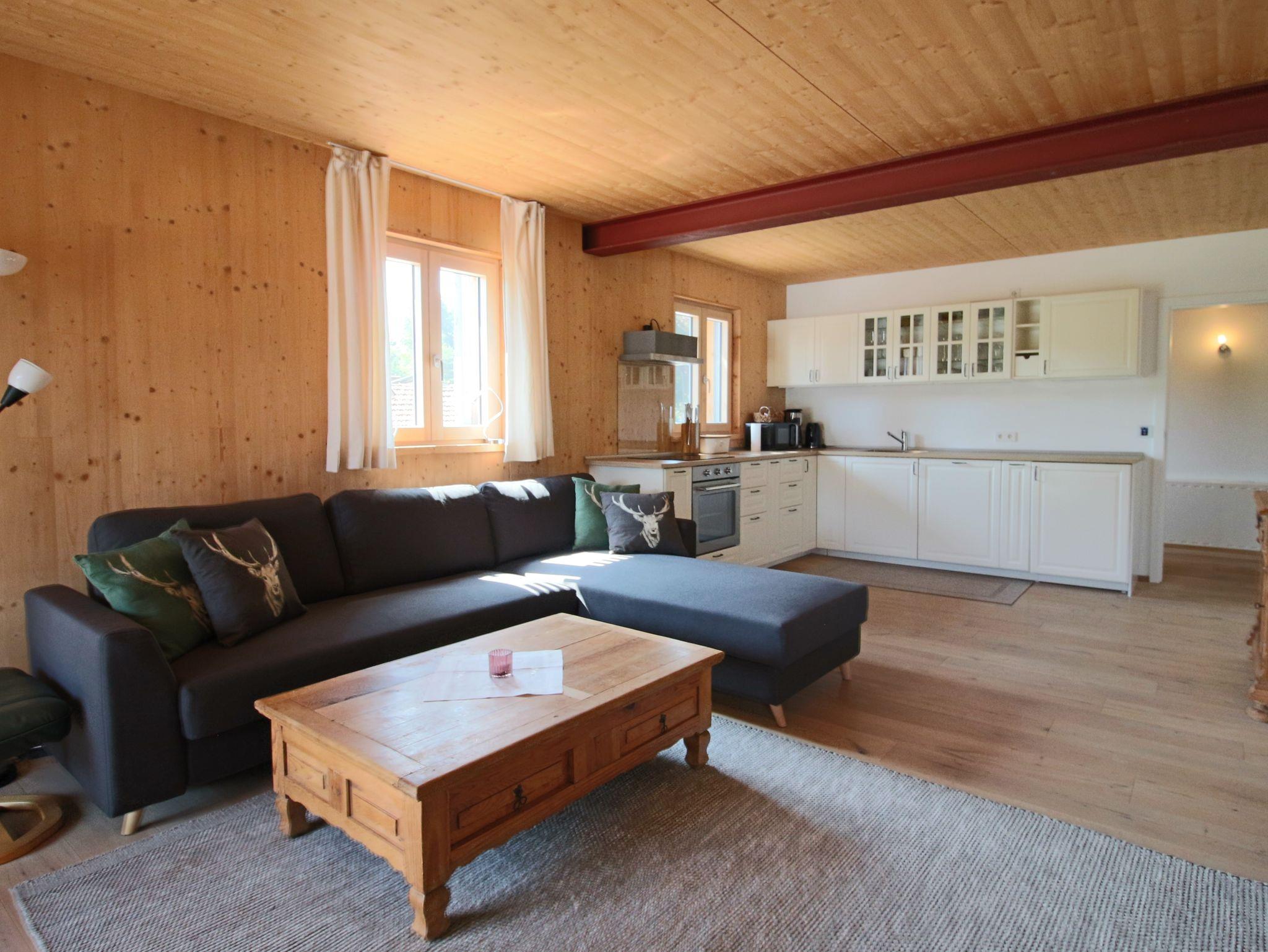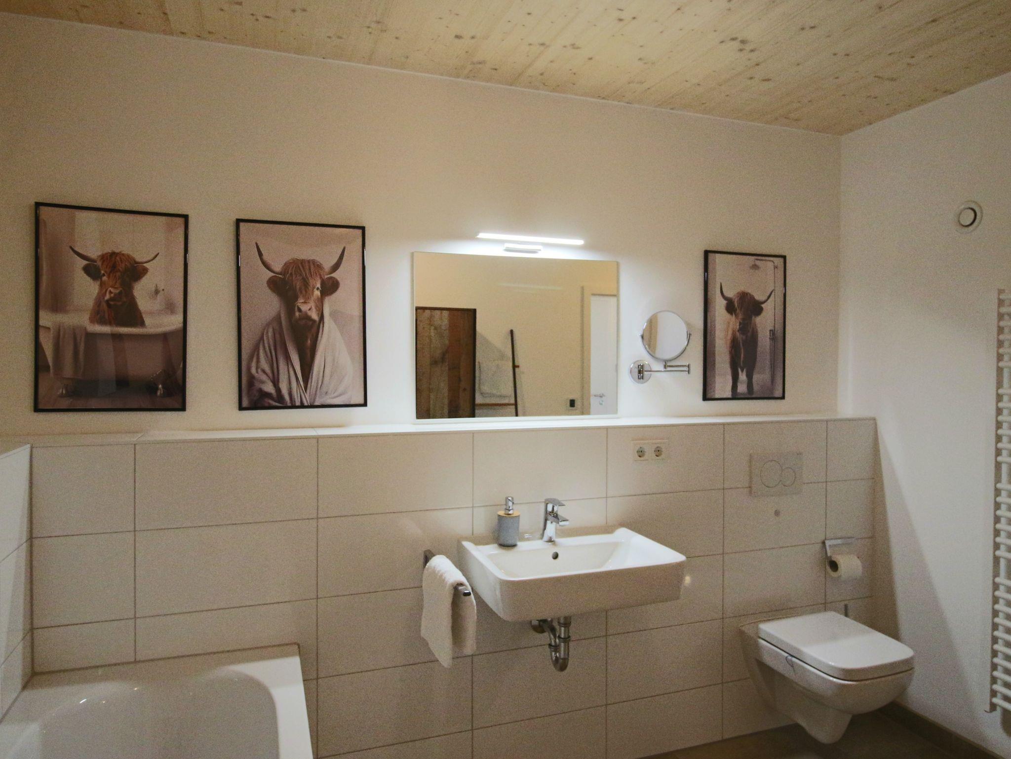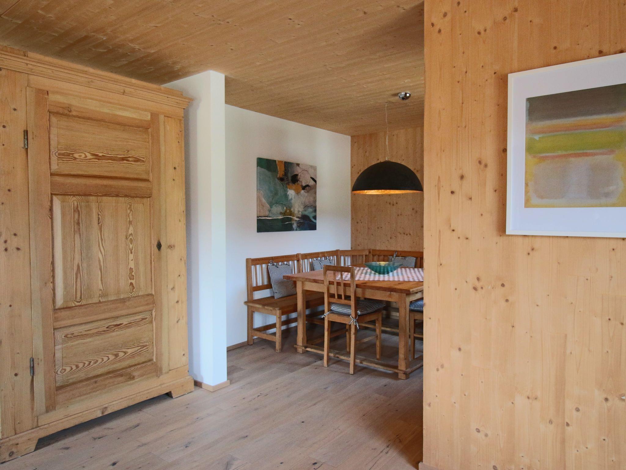 Die lichtdurchfluteten Räume strahlen gemütliche Eleganz aus: ausgewählte alte Bauernmöbel ergänzen die hochwertige Ausstattung mit Qualitätsmatratzen, hochwertigen Bentten und Schlafsofa sowie Hotelbettwäsche. Zusätzliche Kissen sorgen für erholsamen Schlaf nach Ihren individuellen Bedürfnissen. Besonders groß ist der Wohnessbereich mit integrierter Küche gestaltet und vermittelt gleichzeitig Gemütlichkeit und Wärme. Im Schlafzimmer gibt es einen gesonderten Platz, falls Ruhe für´s Homeoffice benötigt wird.