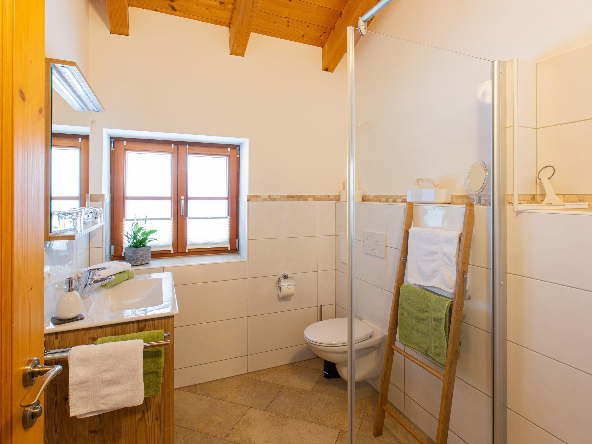 • Badezimmer mit Regendusche und WC - und Chiemseeblick