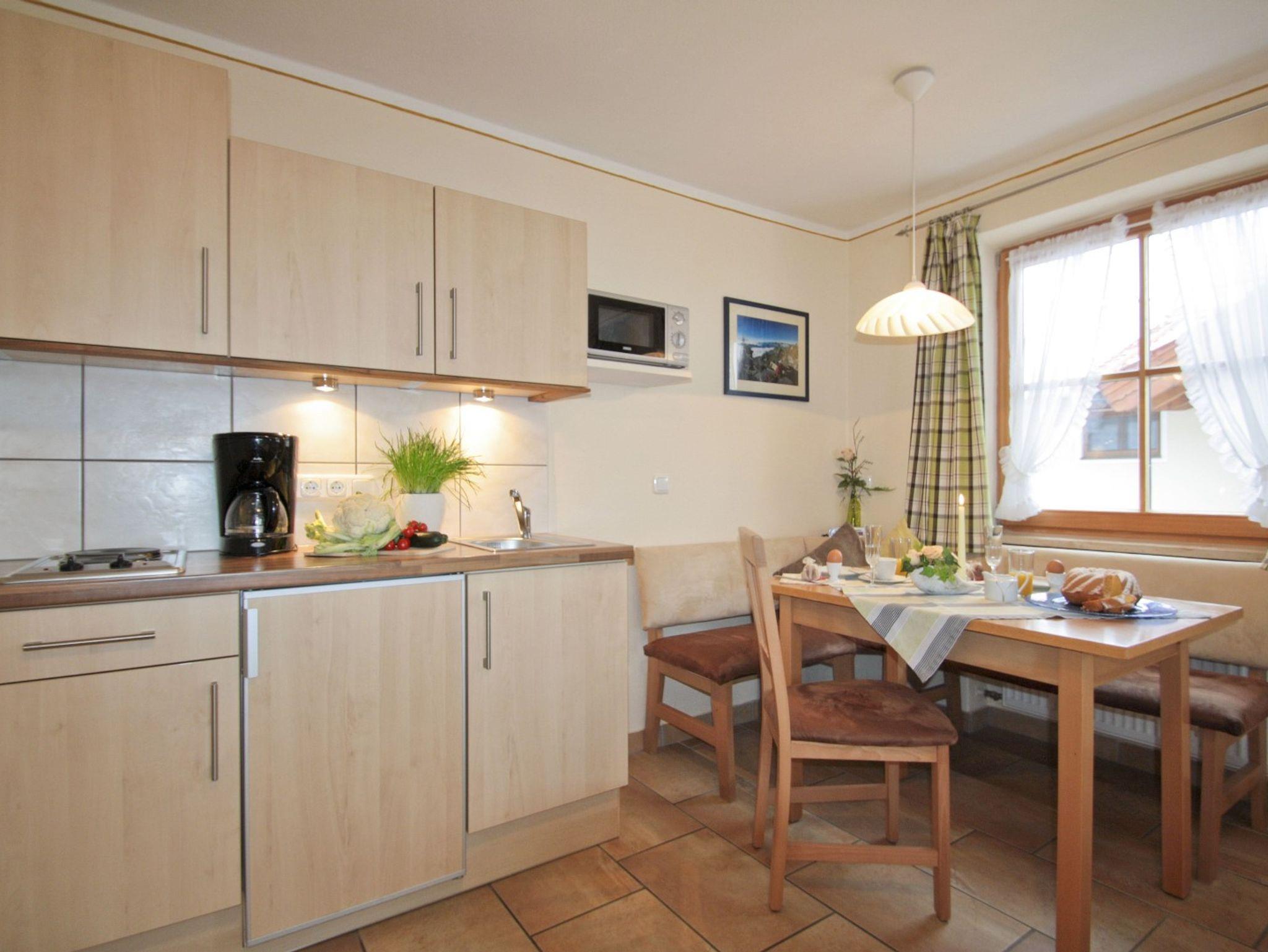 Unsere Ferienwohnung Hochfelln bietet eine Wohnfläche für 2 Personen, zusätzlich ist noch Raum, um ein Zustellbett oder ein Babybett zu integrieren. Der gesamte Wohn-, Schlafbereich umfasst ca. 30 qm und beinhaltet ein Doppelbett, eine komplett ausgestattete Küche, eine Eckbank, sowie einen Flachbildschirm. Von diesem Raum aus können Sie den eigenen, abgetrennten Balkon nutzen und die Berglandschaft in der Morgensonne genießen. Das freundliche, großzügige Badezimmer ist mit Dusche/WC ausgestattet. Kostenfreies WLAN.