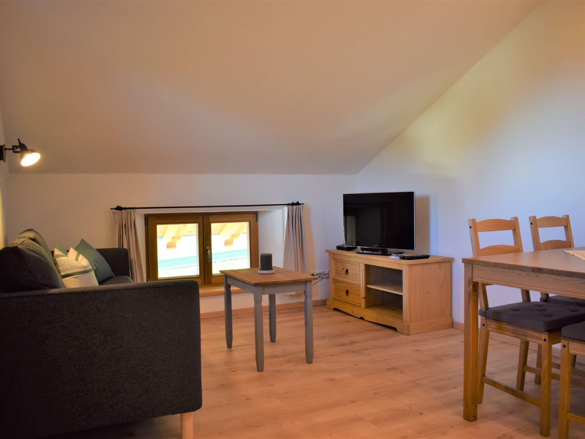Die neue Ferienwohnung Gipfelglück befindet sich im Dachgeschoss mit Süd-Ost Ausrichtung. Die Wohnung ist in dezenten, angenehmen Farbtönen gehalten um für Ruhe und Entspannung zu sorgen. Es gibt zwei separate Schlafzimmer, eins davon mit Etagenbett, sowie die Möglichkeit ein Babybett aufzustellen. Im Bad finden Sie eine begehbare Dusche vor. Die Wohnküche verfügt über eine voll ausgestattete Küchenzeile mit Spülmaschine, Essbereich, sowie TV und Sofa. Von hier aus haben Sie direkten Zugang auf den Balkon, wo Sie den herrlichen Blick in die Chiemgauer Alpen und über den Chiemsee genießen können. Bett- und Tischwäsche, Handtücher sowie Kinderausstattung sind natürlich inbegriffen. WLAN inklusive. Waschmaschine und Trockner sind im Gemeinschaftsbereich vorhanden.