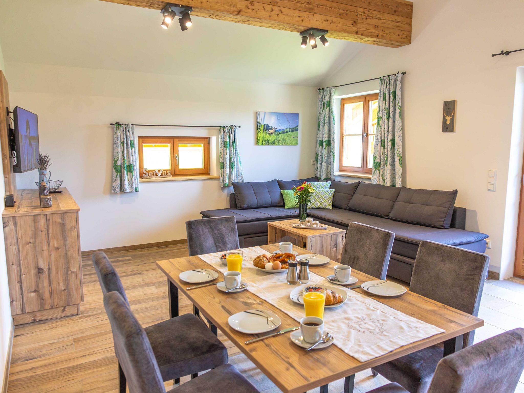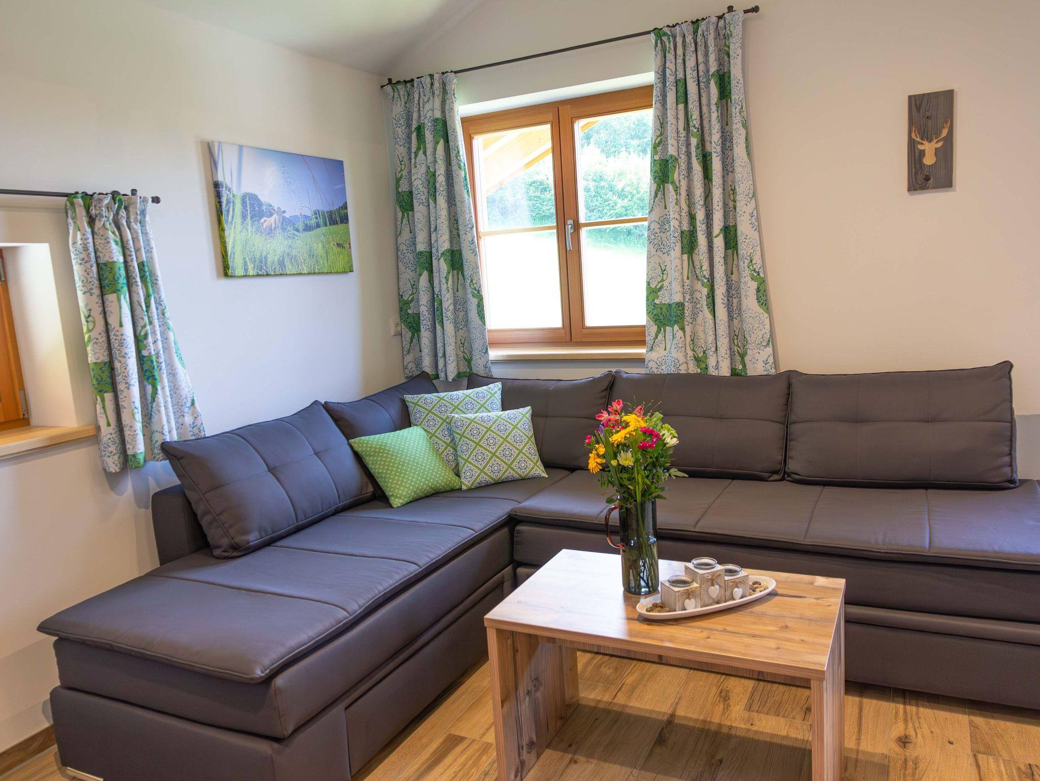 Mit der „Kampenwand“-Wohnung bieten wir Ihnen eine exklusive Unterkunft, die sich ideal für Familien eignet und eine gemütliche Atmosphäre bietet. Sie zeichnet sich durch ihren großen Wohnbereich mit einer modernen Küche aus. Vom Balkon aus können Sie den direkten Blick auf die umliegenden Wälder und Wiesen genießen. Wir laden Sie herzlich dazu ein, Ihren Urlaub auf dem Wieserhof zu verbringen und freuen uns auf Ihren Besuch.