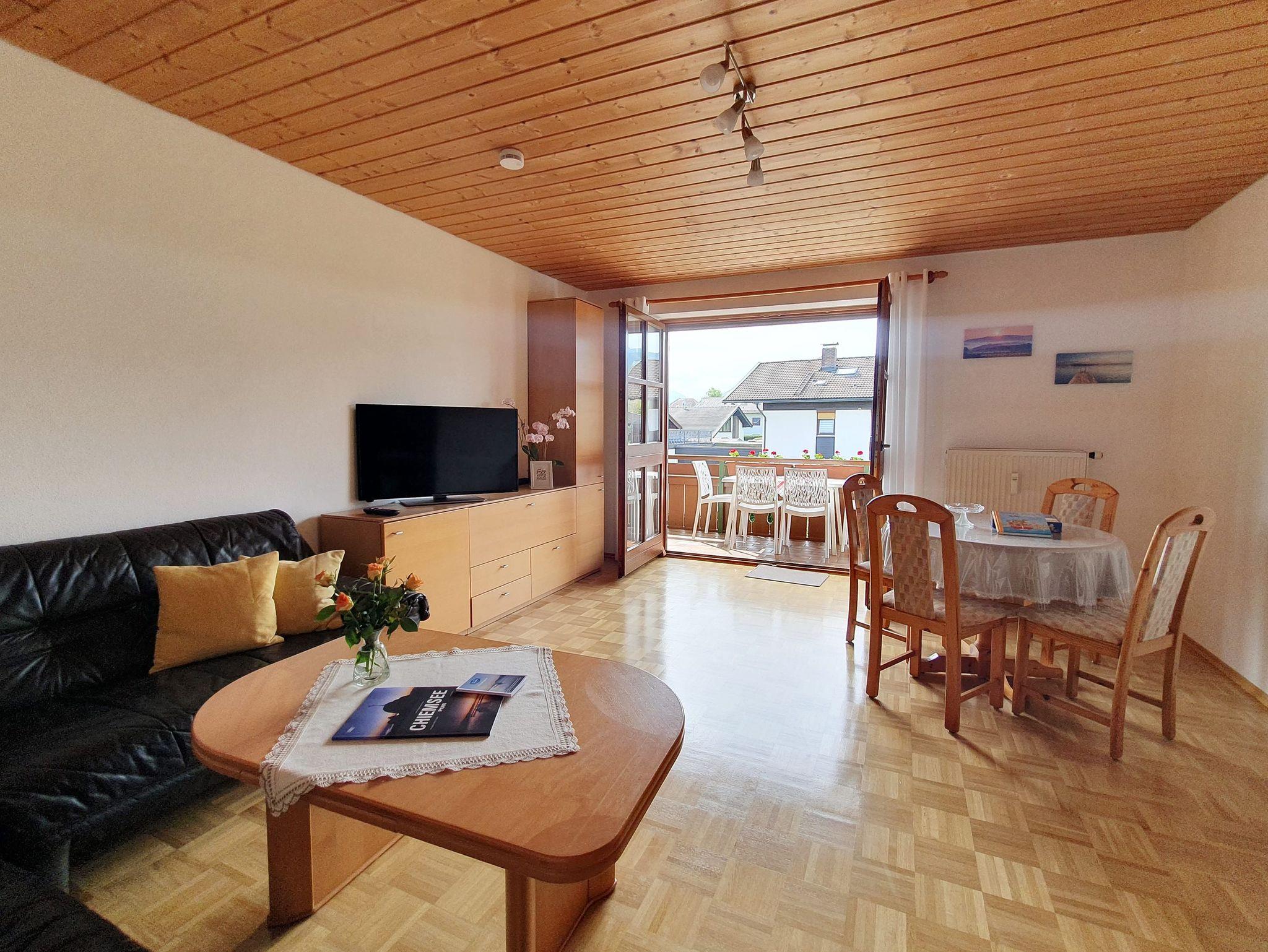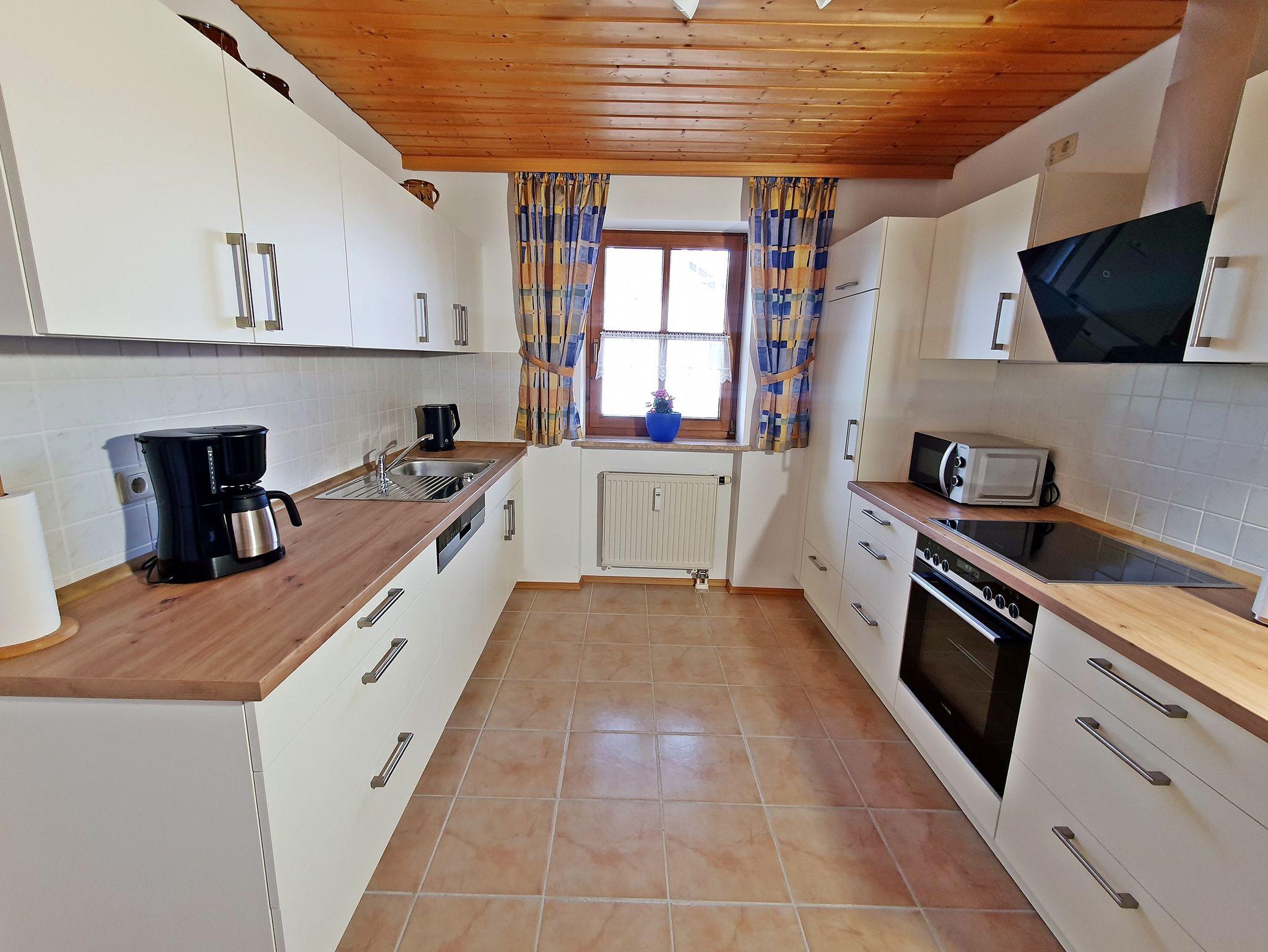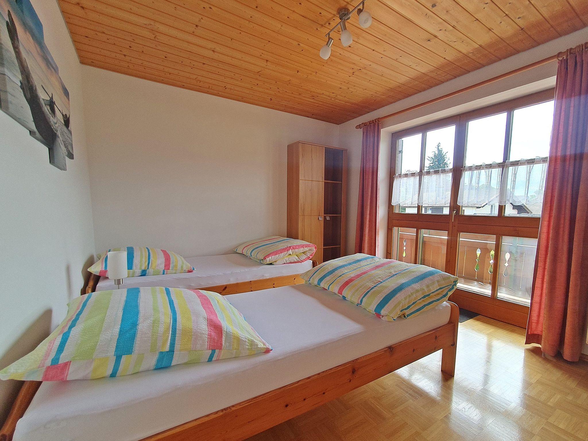 Verbringen Sie ein paar schöne Urlaubstage in der großzügig geschnittenen und lichtdurchfluteten Wohnung mit 120 qm im 1. Obergeschoss. Die Ferienwohnung verfügt über 3 Schlafzimmer, eines davon mit einem Doppelbett, die anderen mit Einzelbetten und einem zusätzlichen Kinderbett. Die 2022 neu eingebaute Küche ist ausgestattet mit einem Herd, Backofen, Kühlschrank, Geschirrspülmaschine, Wasserkocher, Kaffeemaschine, Toaster und einer Mikrowelle. Im Nebenzimmer befindet sich das Esszimmer mit Platz für die ganze Familie und Blick auf die Berge. Das Wohnzimmer mit der großen Eckcouch verfügt über einen SAT-TV. Vom Wohnzimmer und den Schlafzimmern haben Sie Zugang auf den Ost-/Südbalkon mit Blick auf die Chiemgauer Alpen. Das Badezimmer verfügt über eine Badewanne/Dusche, zwei Waschbecken und ein WC. In der Wohnung befindet sich noch ein zusätzliches WC. Ein Hauseigener Parkplatz wird Ihnen kostenfrei zur Verfügung gestellt. Kostenfreies WLAN ist in der Wohnung vorhanden. Haustiere sind nicht erlaubt. Für mitgebrachte Fahrräder steht Ihnen eine abschließbare Garage zur Verfügung.