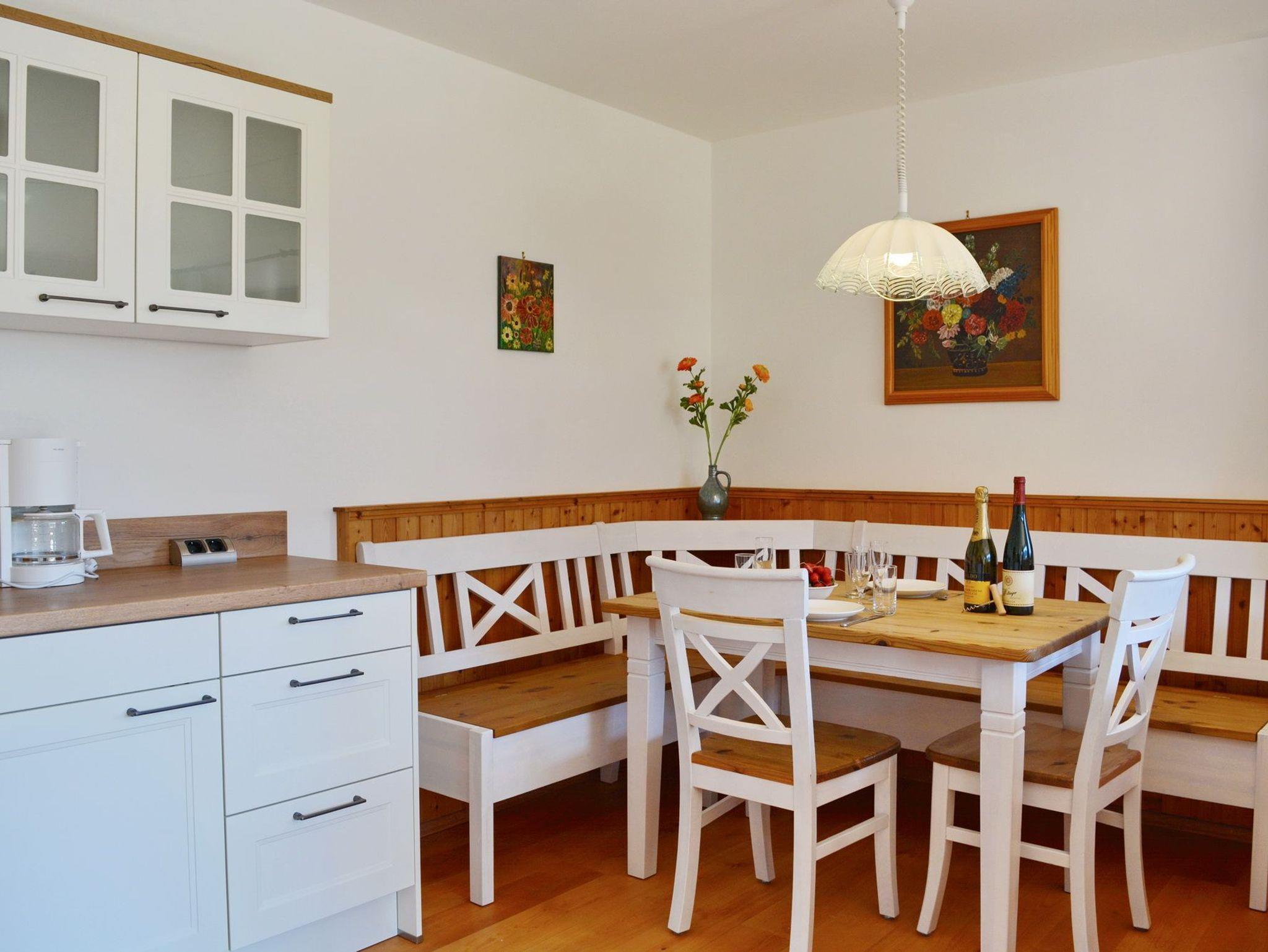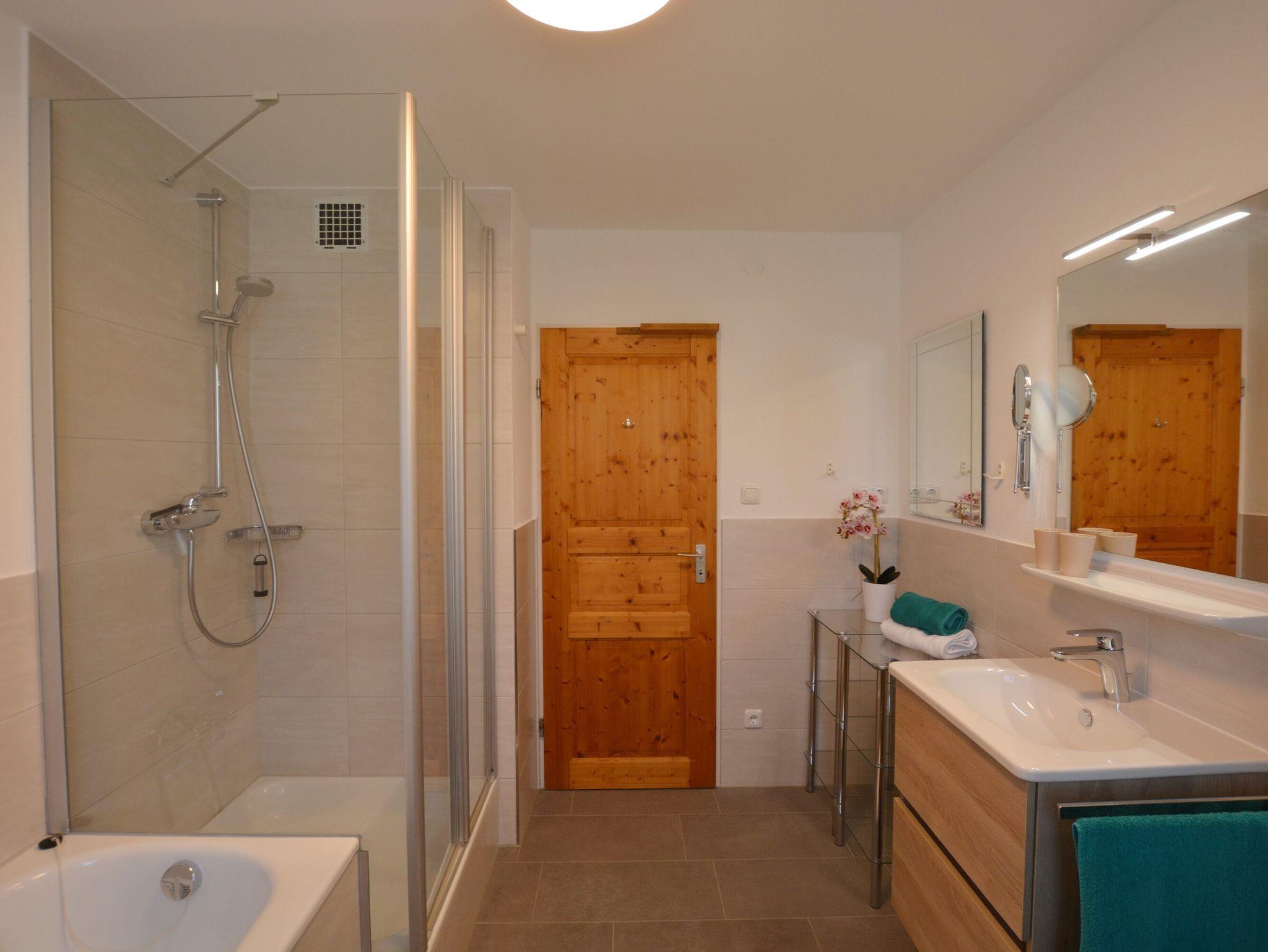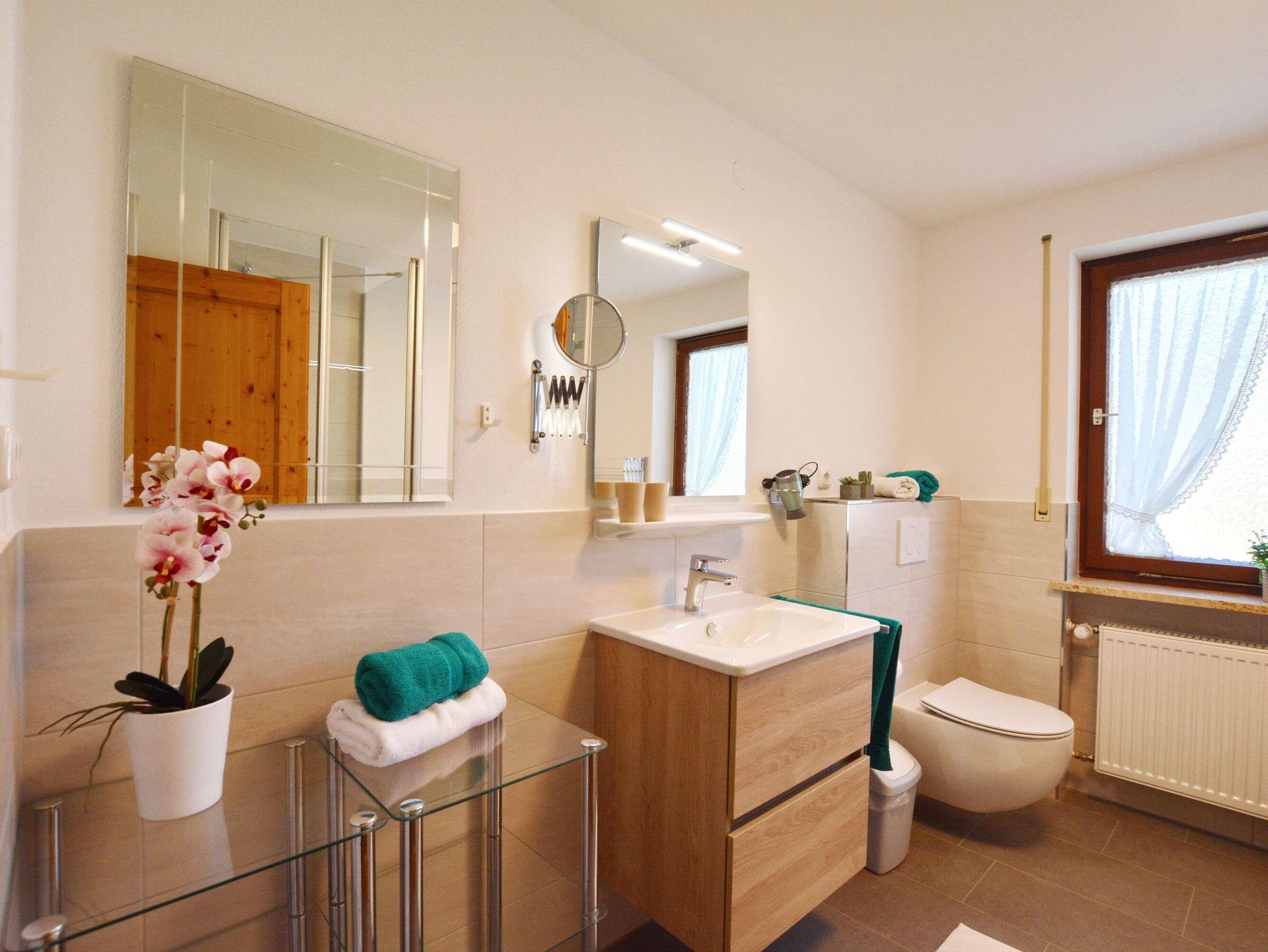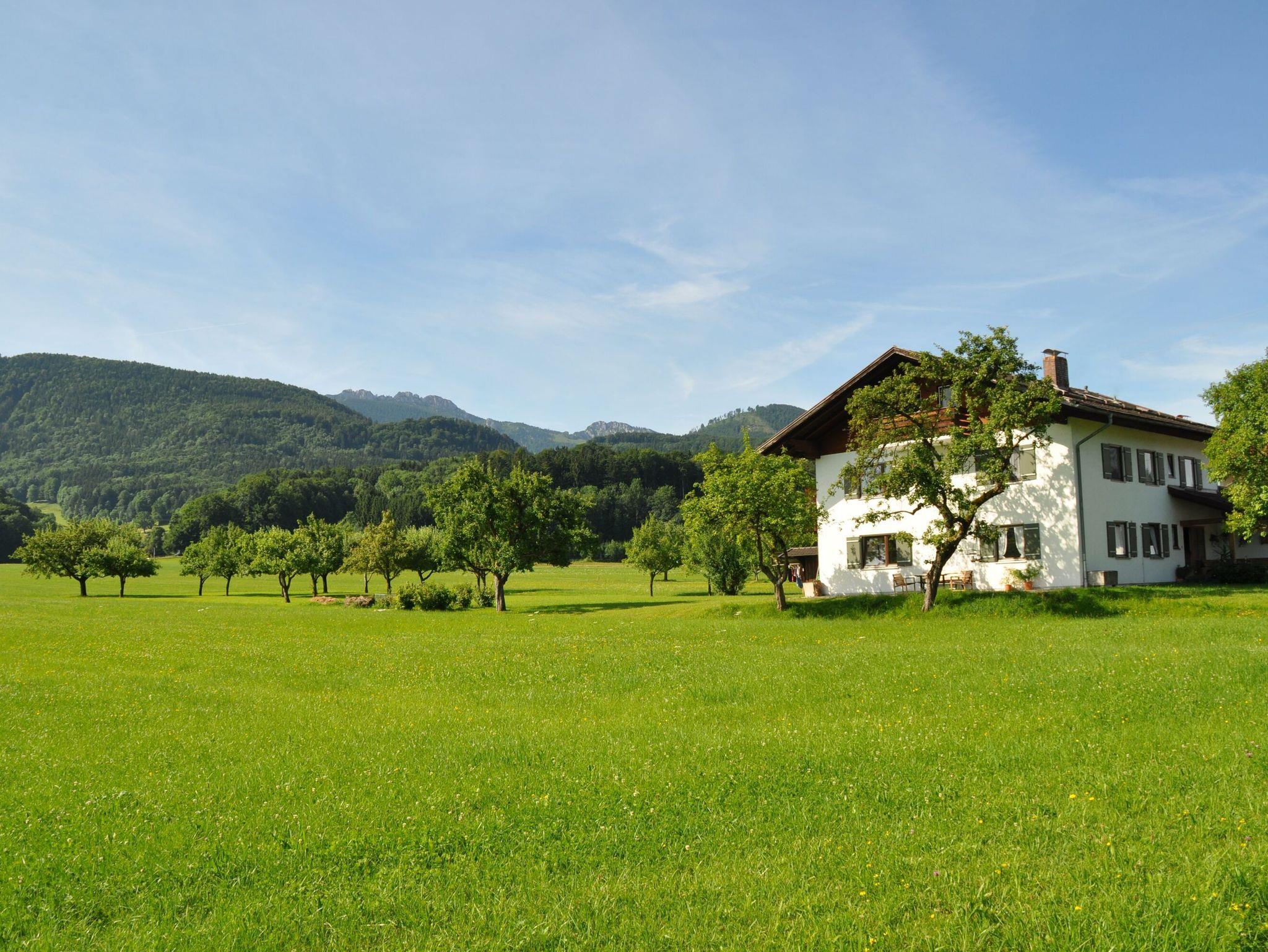 Die großzügige 2-Zimmer-Wohnung für bis zu 4 Personen befindet sich im 1.Stock und verfügt über einen Südbalkon, von dem aus Sie eine faszinierende Aussicht über die Obstbäume, Wiesen und die Bergkette genießen können.