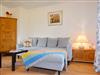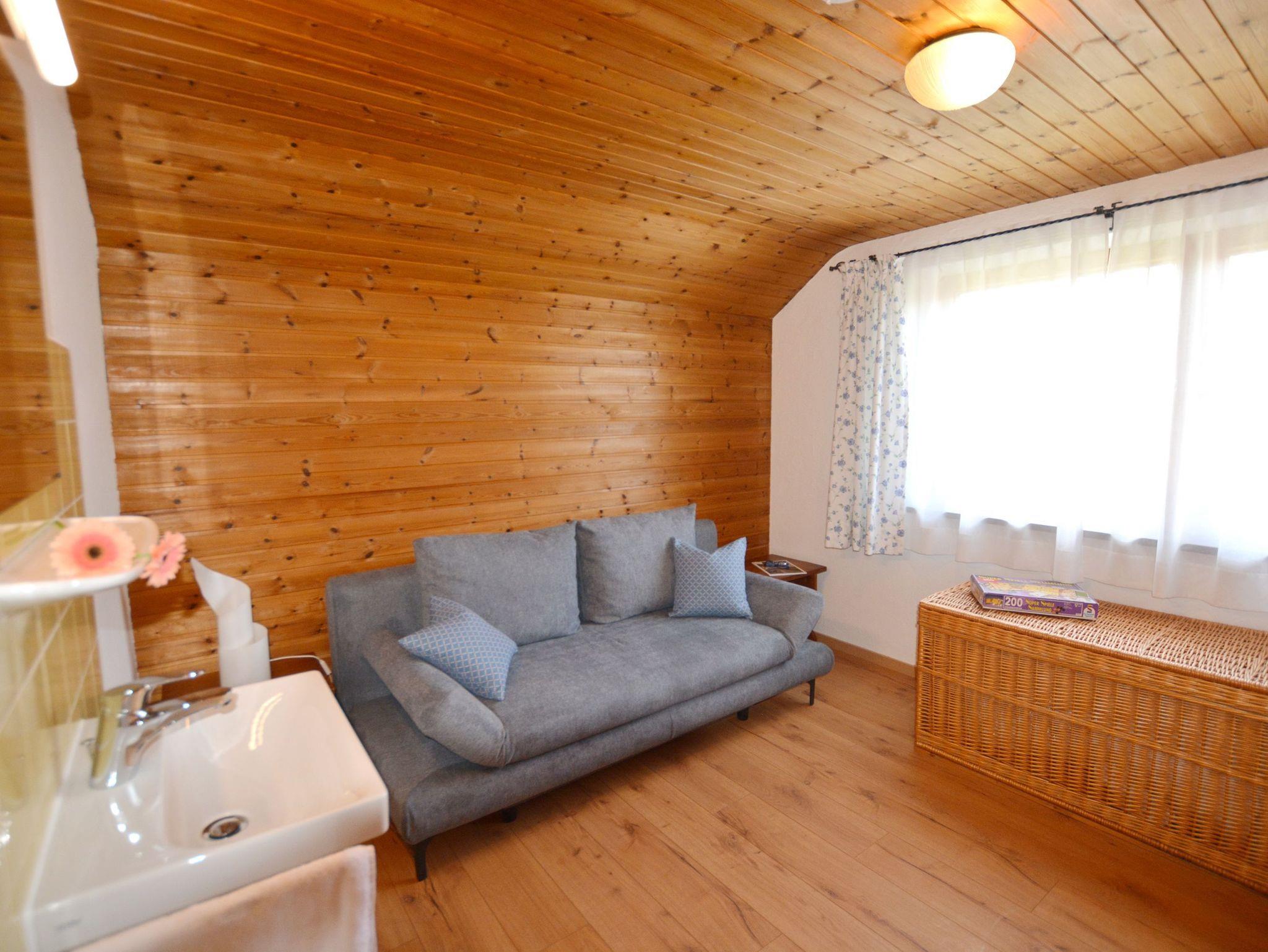 Auf dieser Etage finden Sie einen weiteren Schlafraum mit Doppelbett. Das kleinere Schlafzimmer ist mit einem Schlafsofa und Waschbecken ausgestattet und kann somit variabel als zusätzlicher Rückzugsraum oder als weiterer Schlafraum genutzt werden.