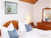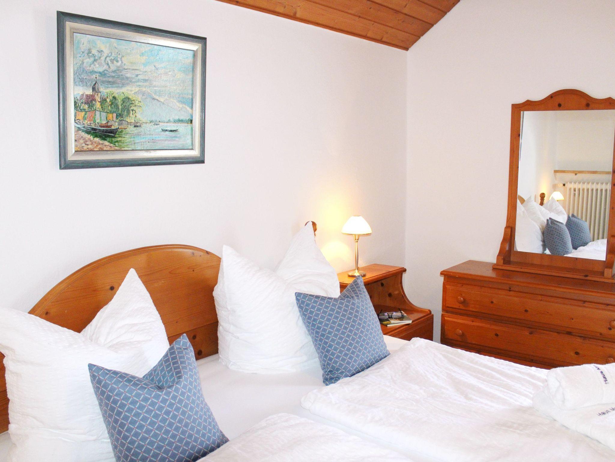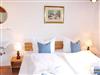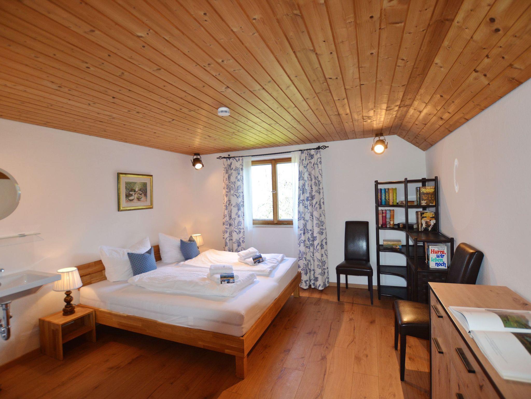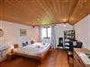 Im Obergeschoss befinden sich drei Schlafräume. Nicht nur im Erdgeschoss finden Sie Rückzugsmöglichkeiten, auch auf dieser Etage wurde darauf ein Augenmerk gerichtet. So bietet ein Schlafzimmer zwei Räumlichkeiten, welche durch einen offenen Durchgang miteinander verbunden sind. Treten Sie zuerst ein in den Wohnbereich, welcher mit Tisch und Stühlen, Schrank und Fernseher ausgestattet ist. Durch die Verbindung gelangen Sie in das Schlafzimmer, welches mit Doppelbett und Waschbecken eine perfekte Einheit bildet.