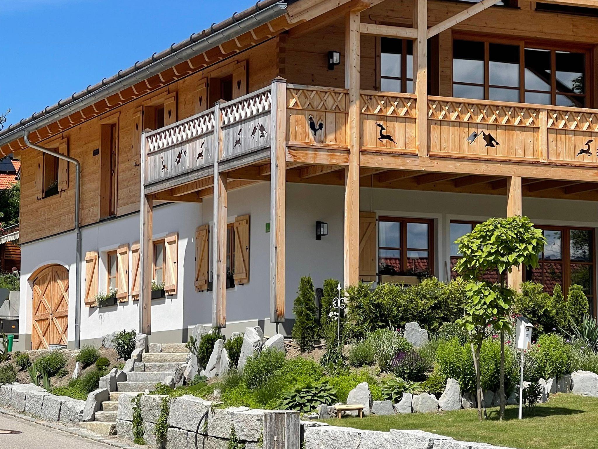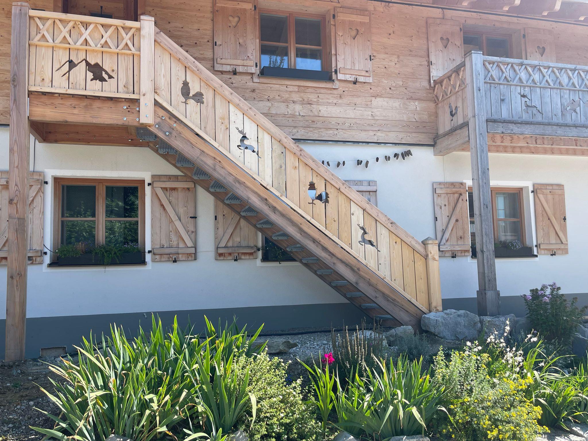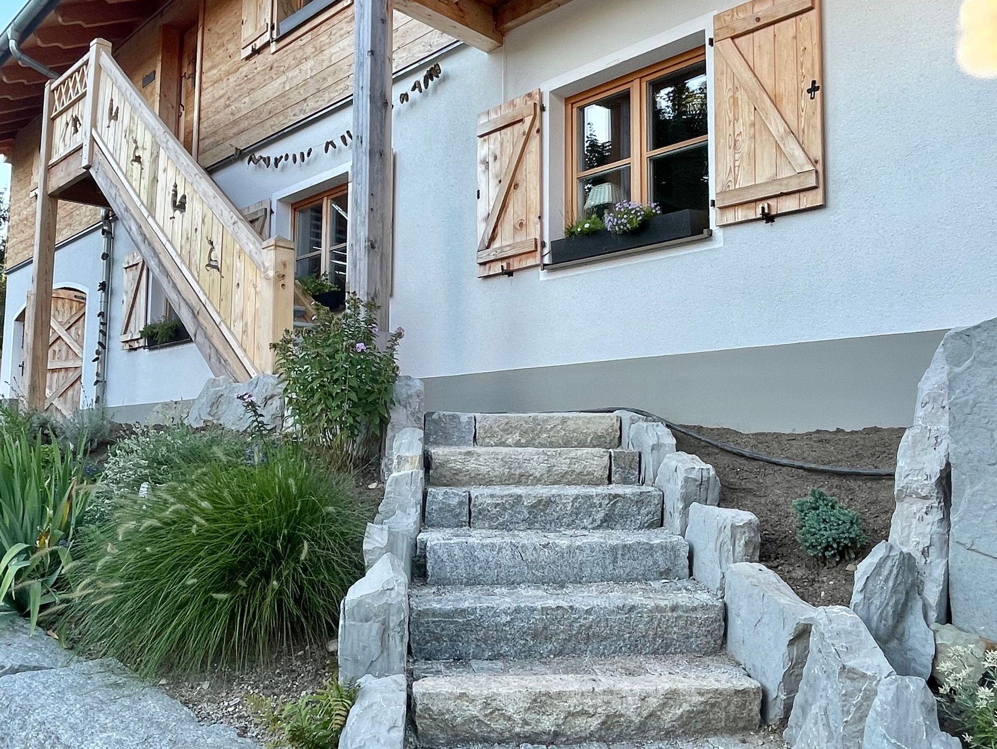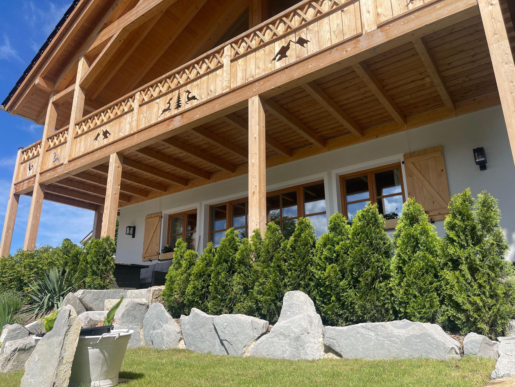 In dieser geräumigen u. wertigem Holzbau-Unterkunft (80qm/Neubau2024),empfangen wir Sie in einer liebevollen Einrichtung mit Blick auf Wälder und unseren Hausberg der Kampenwand.