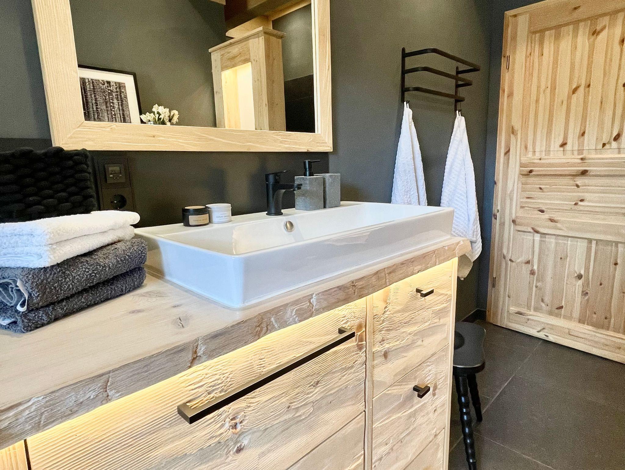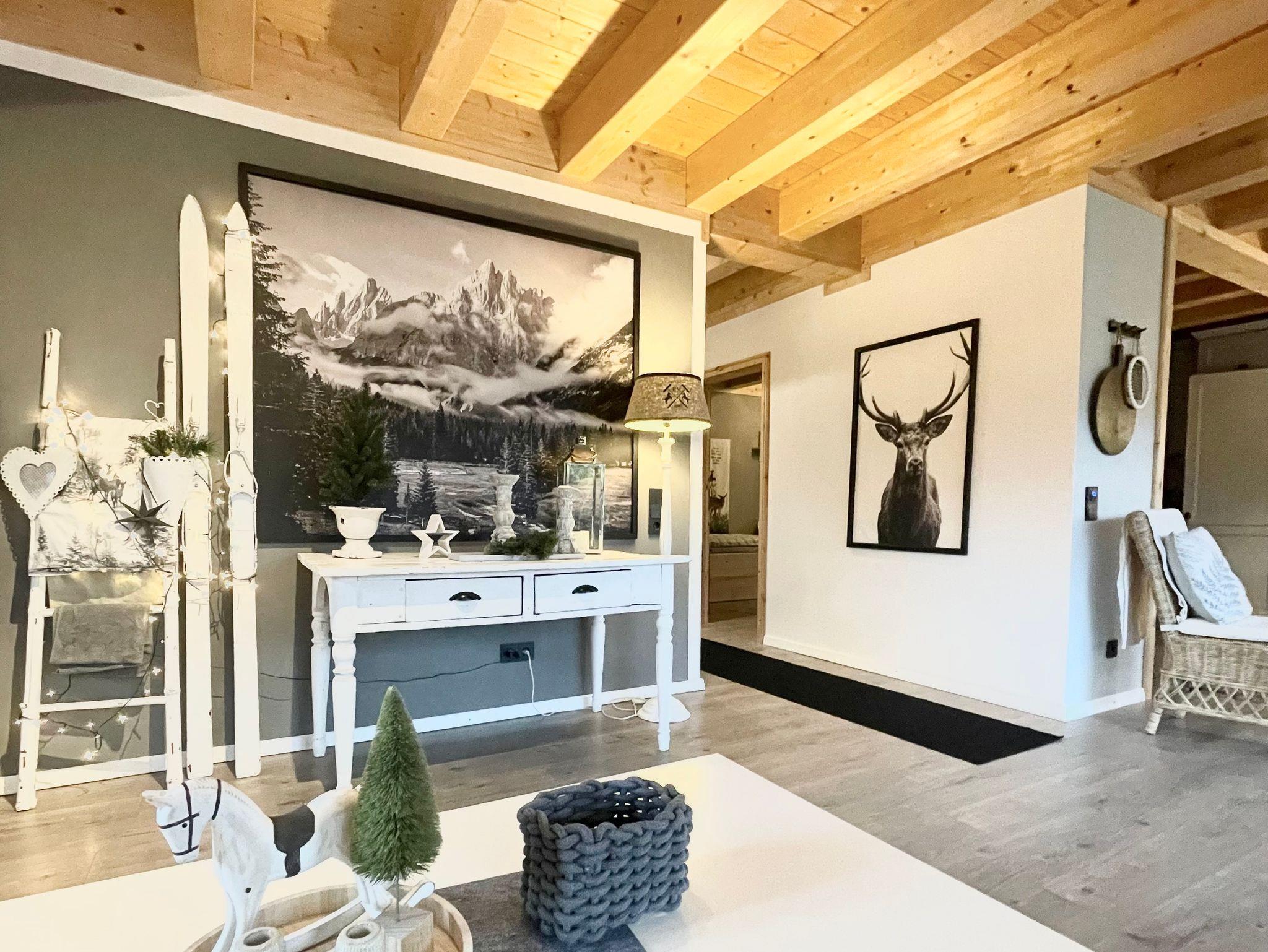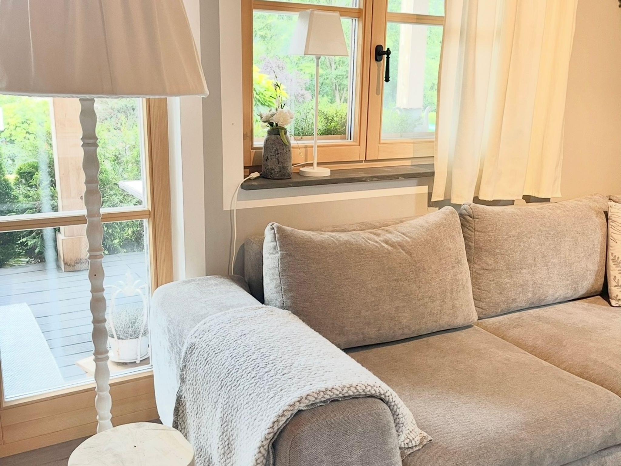 In dieser geräumigen u. wertigem Holzbau-Unterkunft (80qm/Neubau2024),empfangen wir Sie in einer liebevollen Einrichtung mit Blick auf Wälder und unseren Hausberg der Kampenwand.