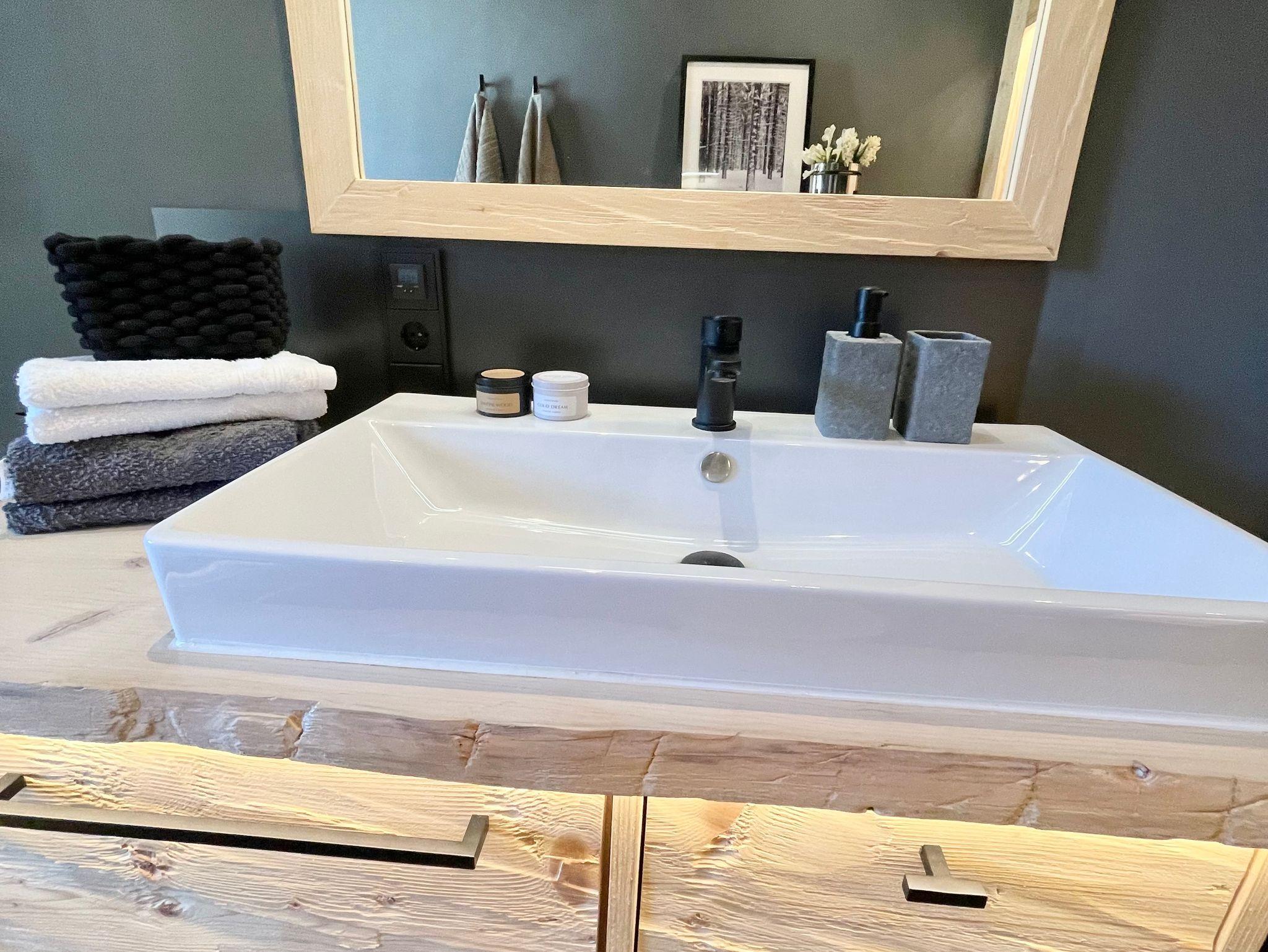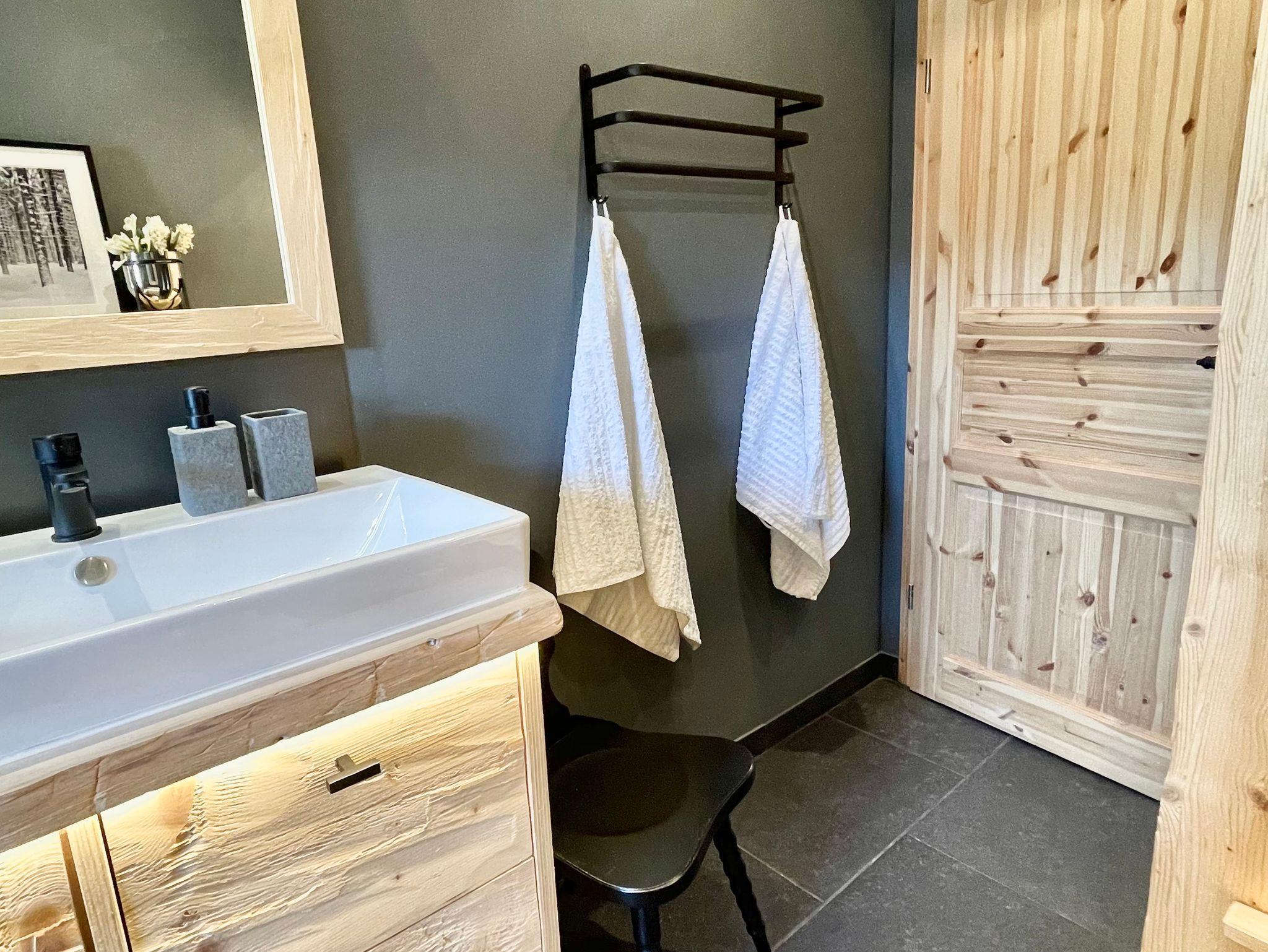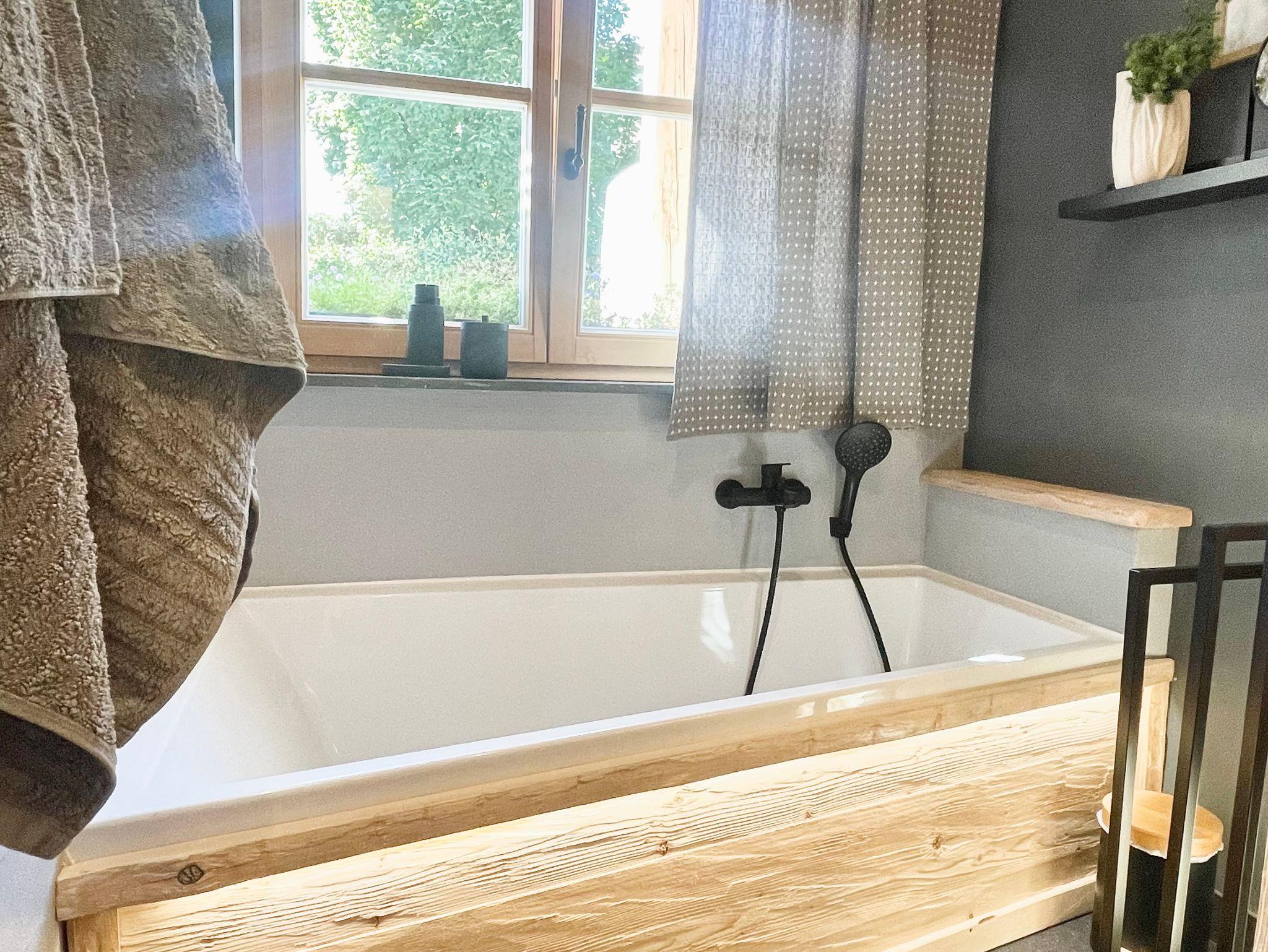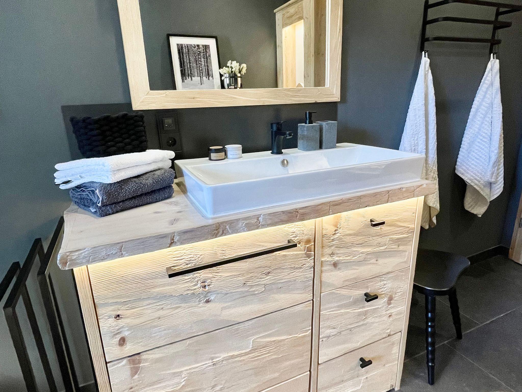 In dieser geräumigen u. wertigem Holzbau-Unterkunft (80qm/Neubau2024),empfangen wir Sie in einer liebevollen Einrichtung mit Blick auf Wälder und unseren Hausberg der Kampenwand.