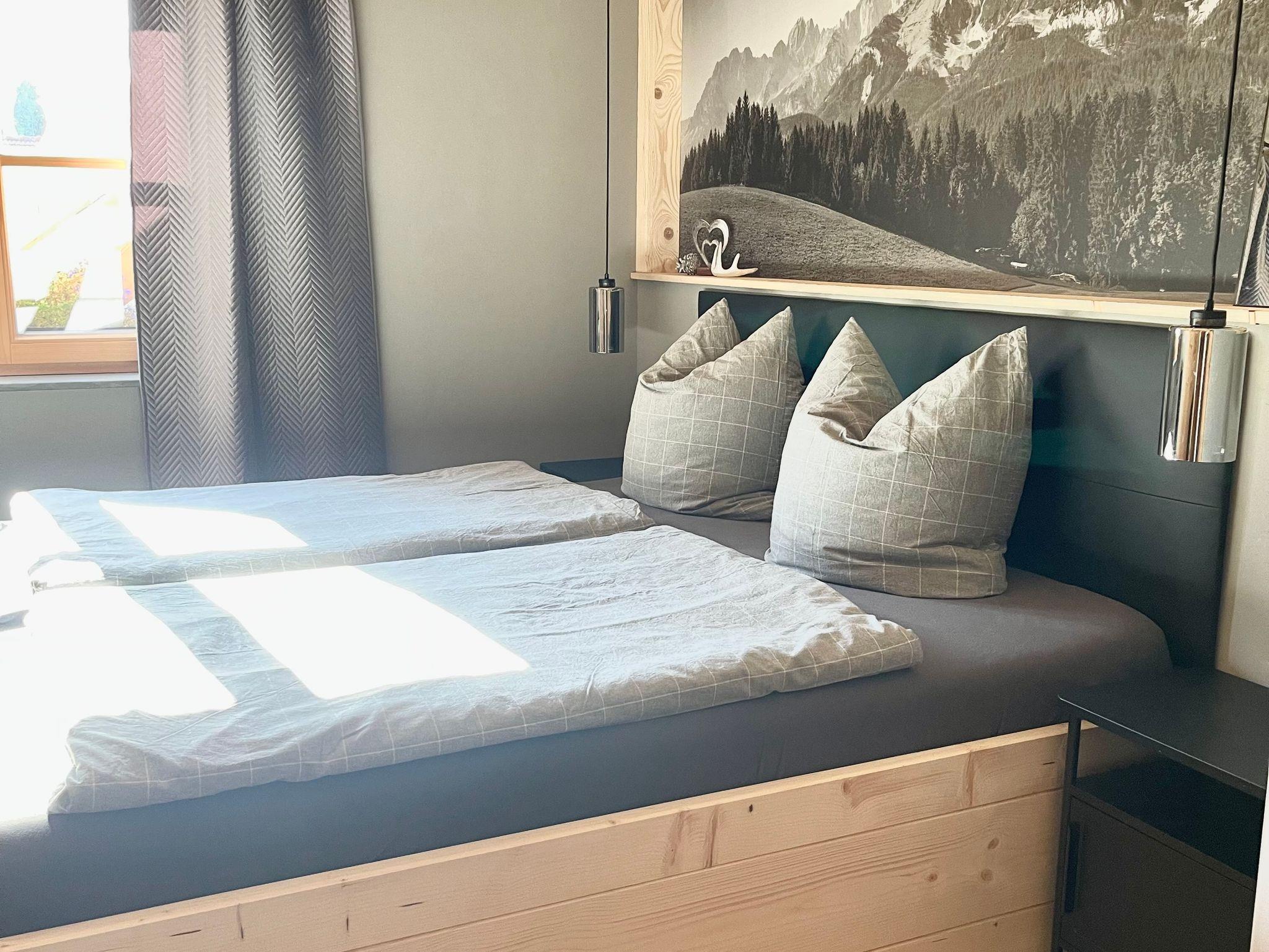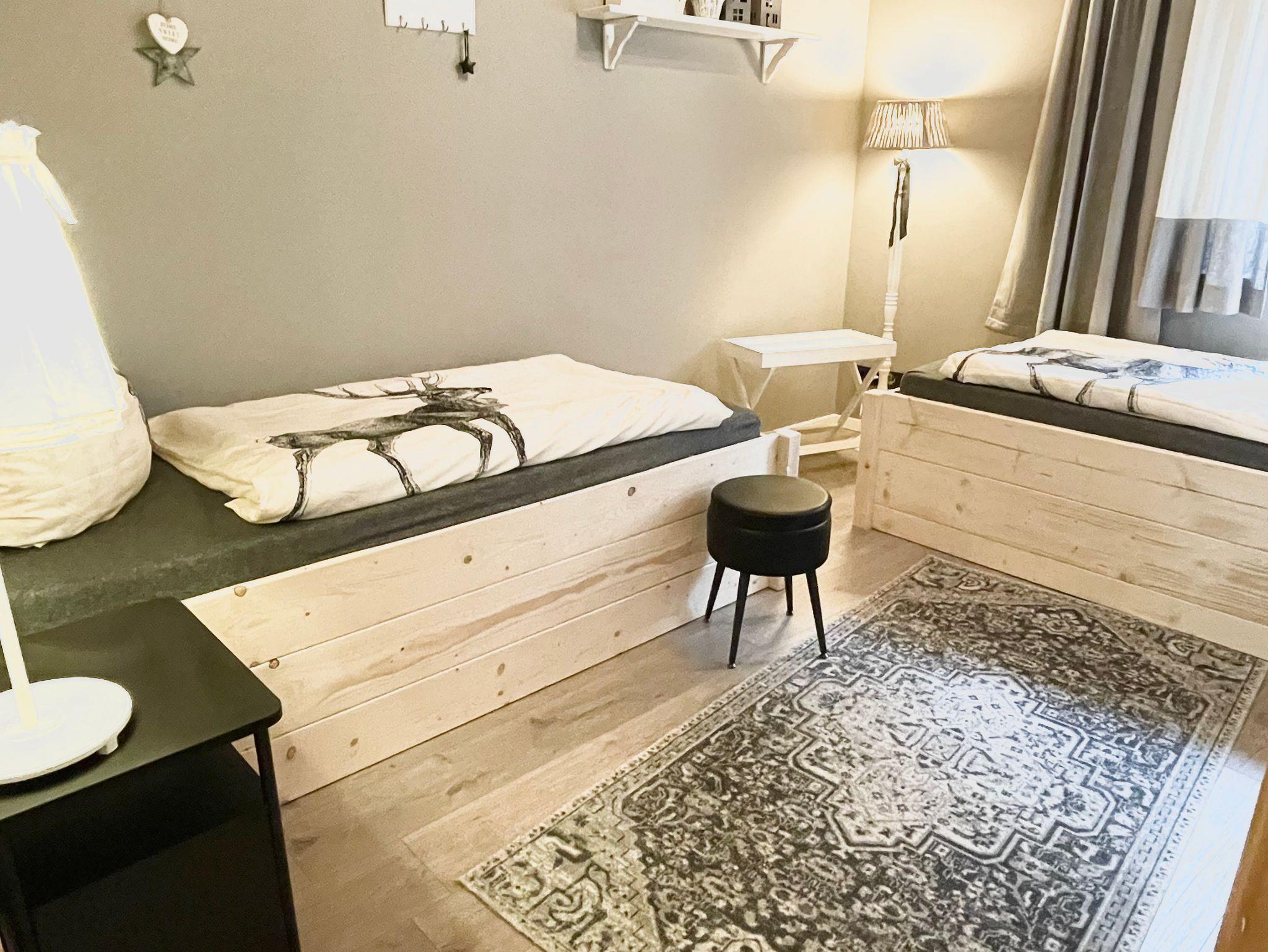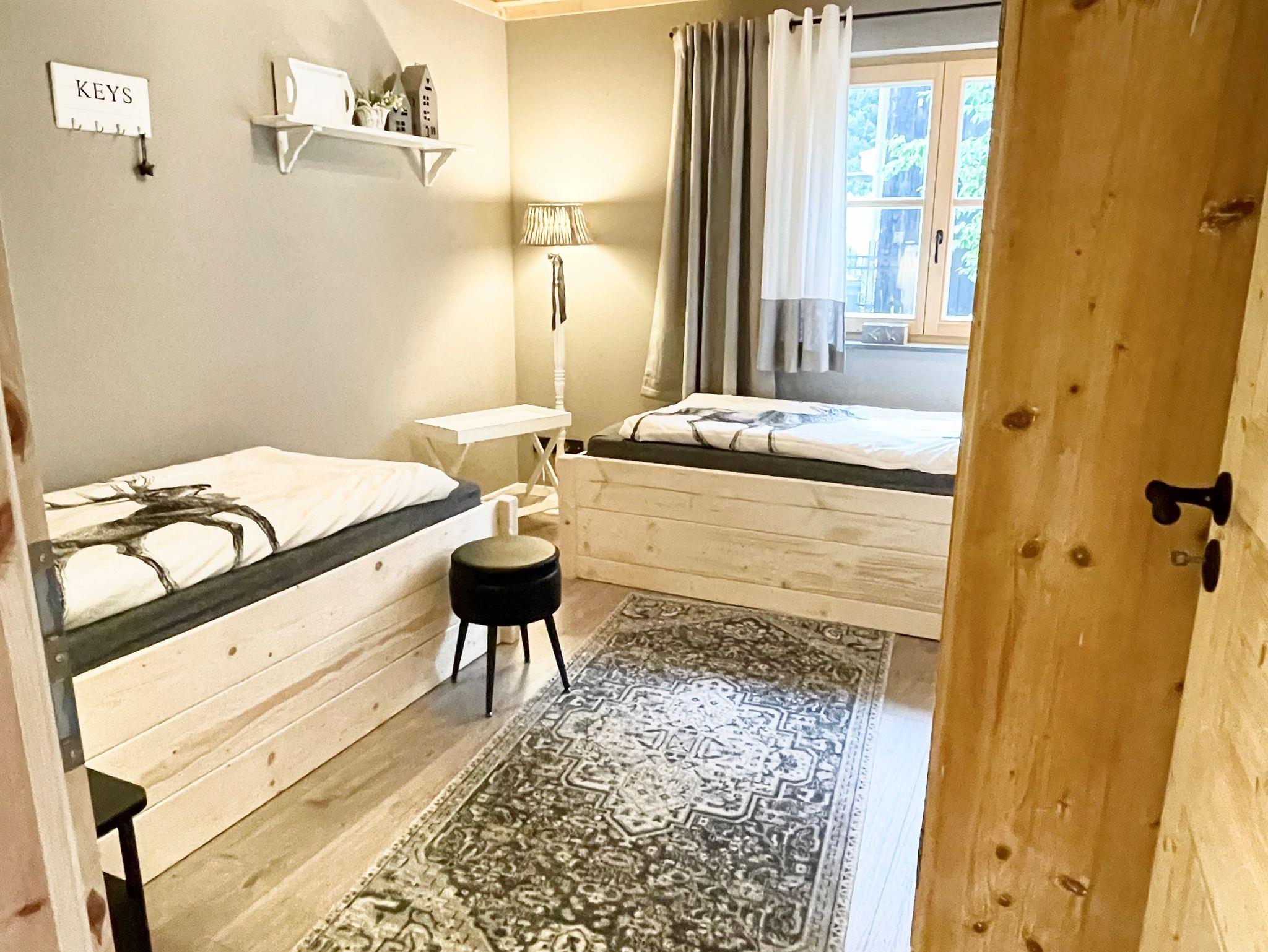 (1.Zimmer mit Doppelbett und das 2.Zimmer mit zwei Einzelbetten ).
