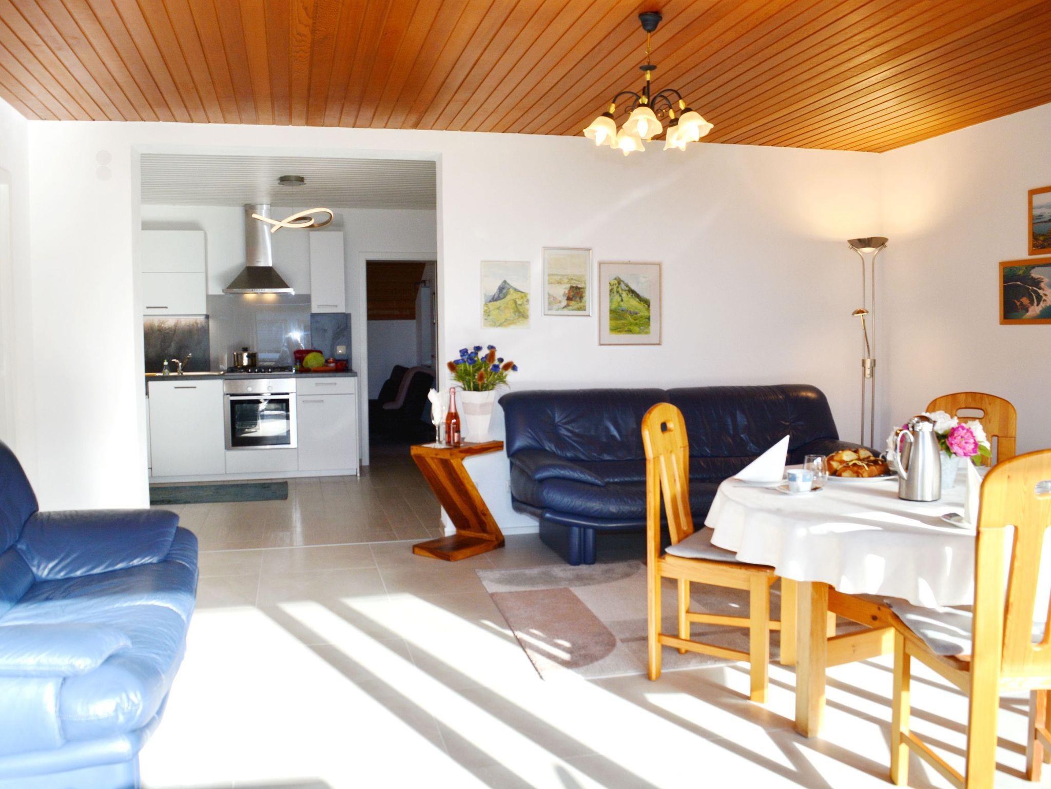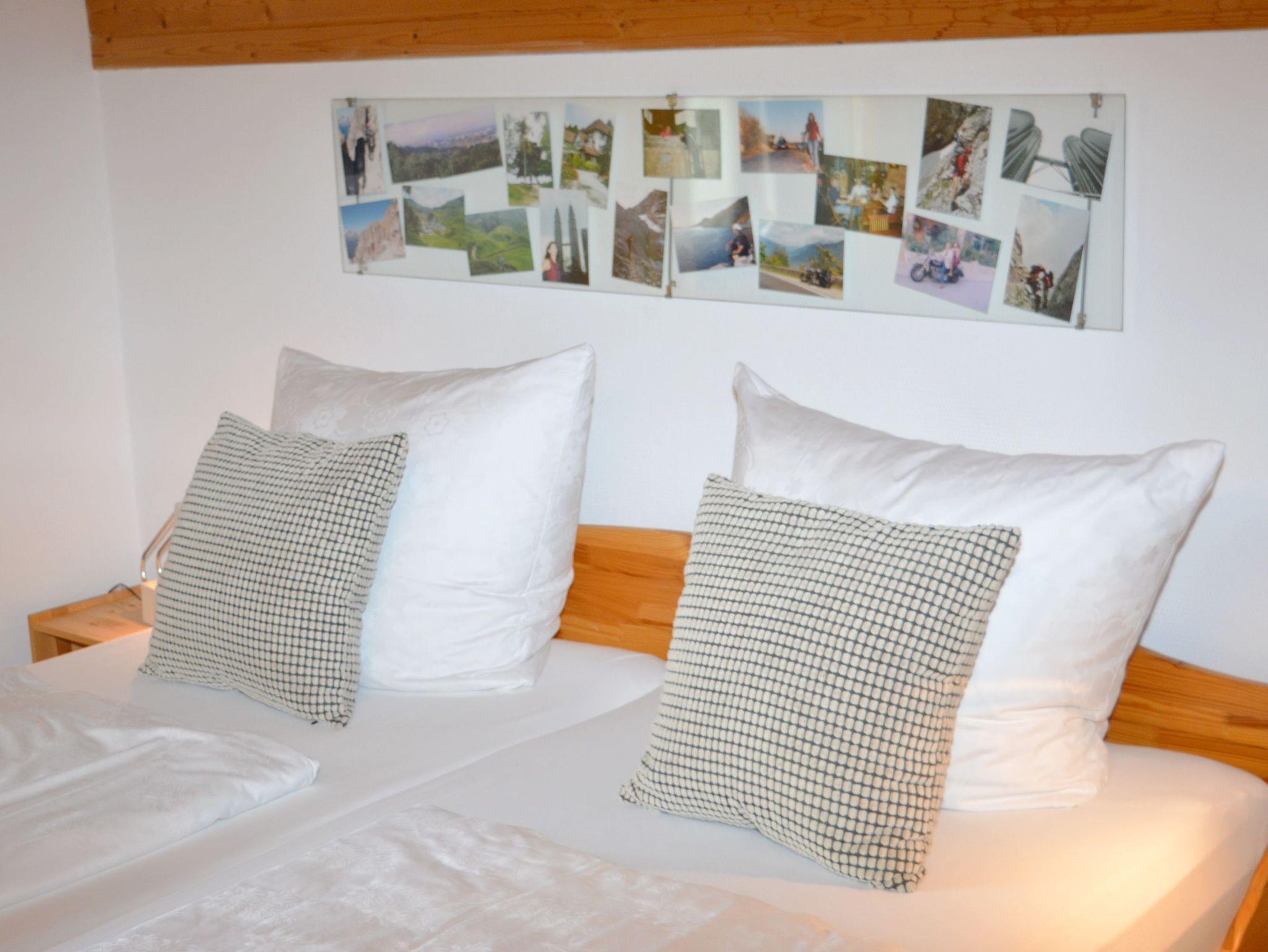 Das Herzstück der Ferienwohnung ist der offene große Wohn- und Essbereich mit großer Fensterfront, einem Esstisch, Flachbildfernseher und zwei Sofas. Durch einen Bogen ist die offene Küche optisch vom Wohnbereich getrennt. Die Küche ist mit allen wichtigen Utensilien, die zum Kochen benötigt werden, ausgestattet. Vom Wohnbereich aus betreten Sie über die Schiebetüre den Süd-Balkon, um die schöne Urlaubszeit zu genießen und Blick auf die Berge zu erhaschen. Ein zweiter Balkon zur Südseite ist über ein Schlafzimmer zu betreten. Das Domizil umfasst zwei Schlafzimmer, welche jeweils über ein Doppelbett und genügend Stauraum verfügen. Zusätzlich bietet ein Schlafraum ein Schlafsofa an, weshalb bis zu 5 Personen eine schöne Auszeit vom Alltag im „MountainView“ verbringen können. Modern präsentiert sich das Badezimmer, ausgestattet mit Fenster, WC, Dusche, Bidet, Waschbecken, Waschmaschine, Spiegel und Haartrockner.