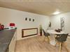 Eine Küche mit Essbereich und einem Bad im Erdgeschoss .