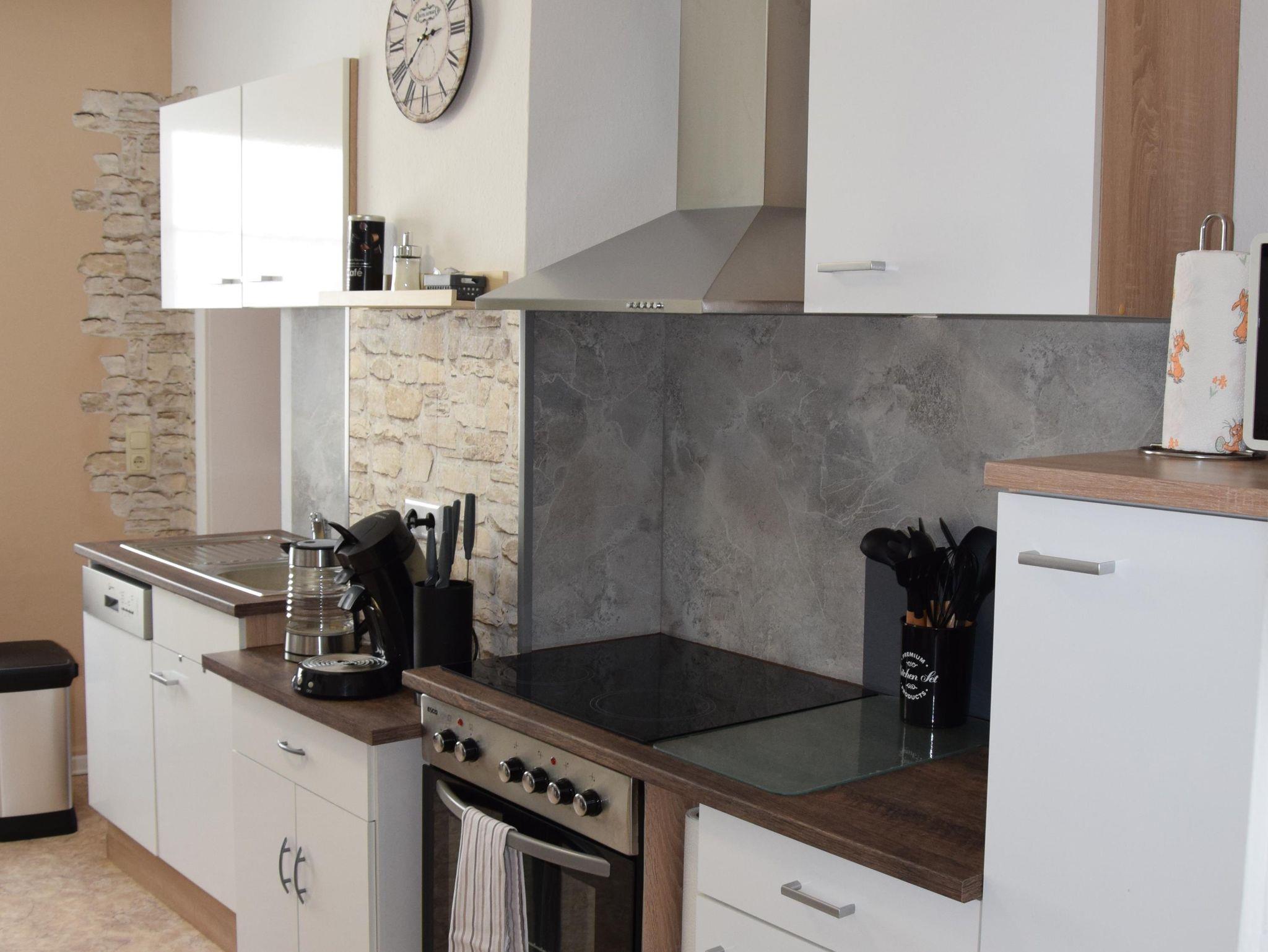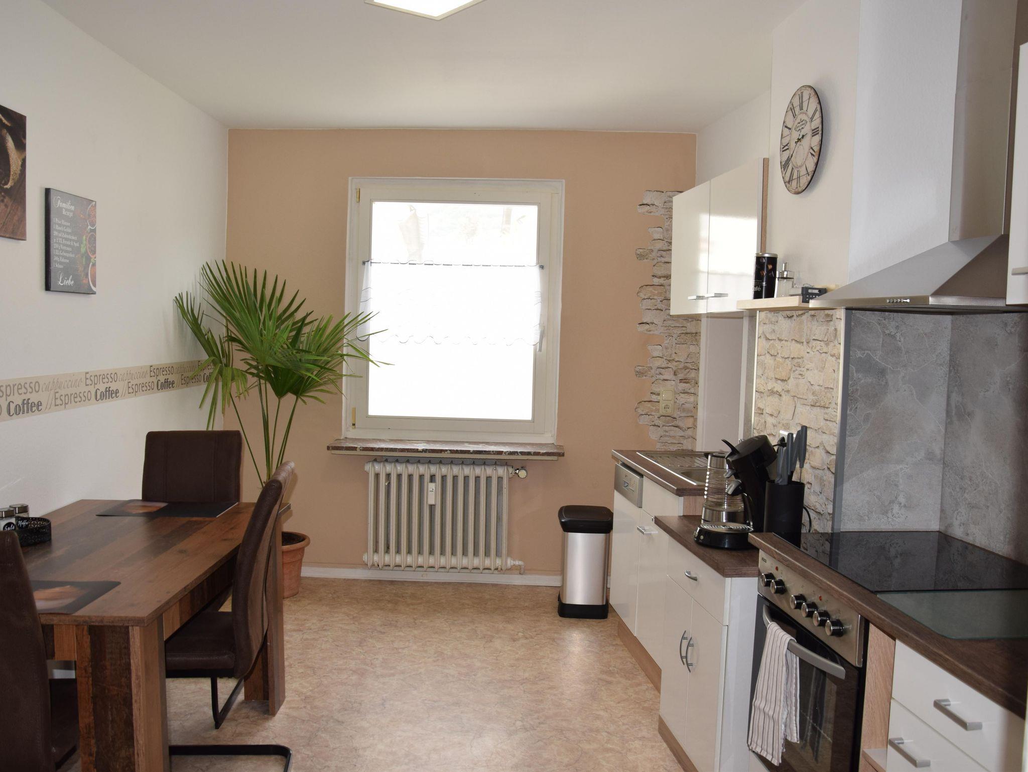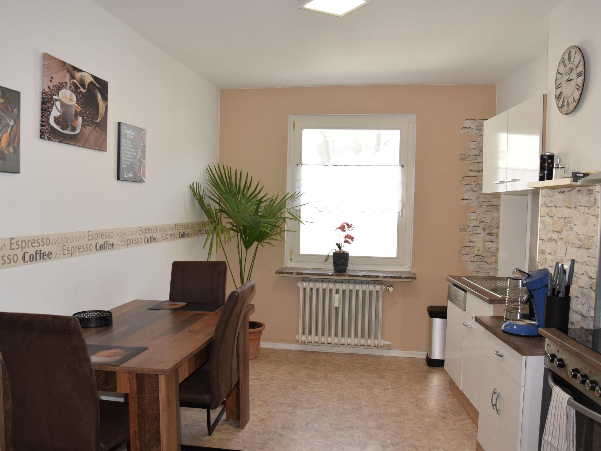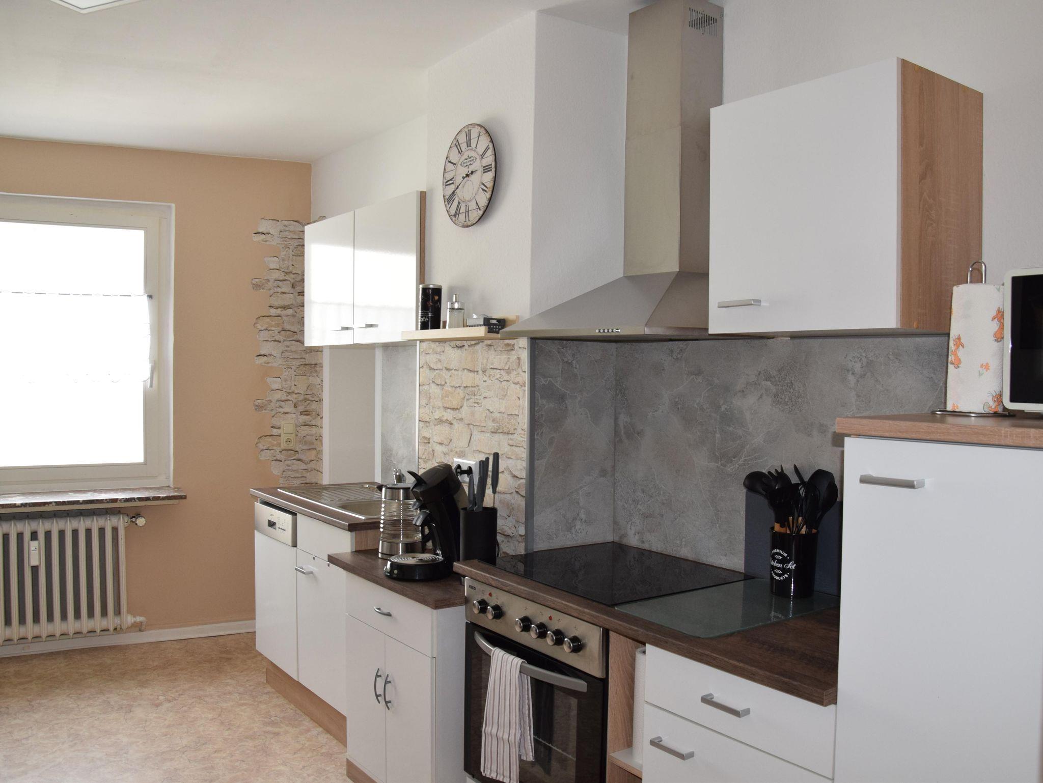 Das Ferienhaus Goethe befindet sich in zentraler und doch ruhiger Lage. Im Haus befinden sich zwei liebevoll renovierte Ferienwohnungen, jede Wohnung hat ihren eigenen Stil und verleiht ihr damit einen ganz besonderen Charme. Ihre im Landhaus- Stil eingerichtete Wohnung befindet sich im ersten Obergeschoss . Ausgestattet ist die ca. 60 qm² großen Wohnung ist mit einer moderneren und vollausgestatteter Küche, großem Esstisch. Zur Wohnung gehören ein Schlafzimmer, ein Wohnzimmer mit TV und Sofa, ein Duschbad mit WC, sowie eine Terrasse zur gemeinsamen Nutzung. Auf der Terrasse, welche ca. 10 m vom Eingang entfernt ist, befinden sich Gartenmöbel.