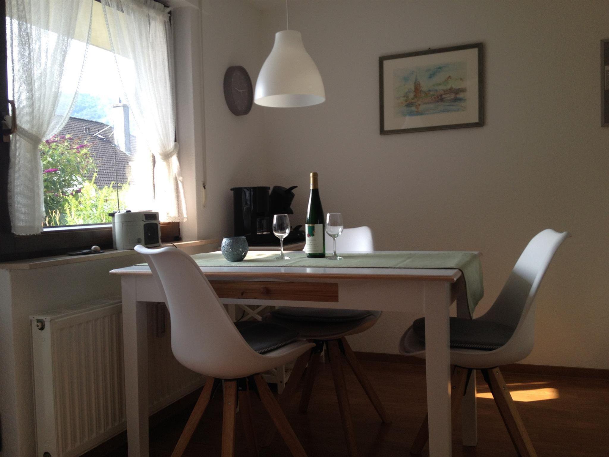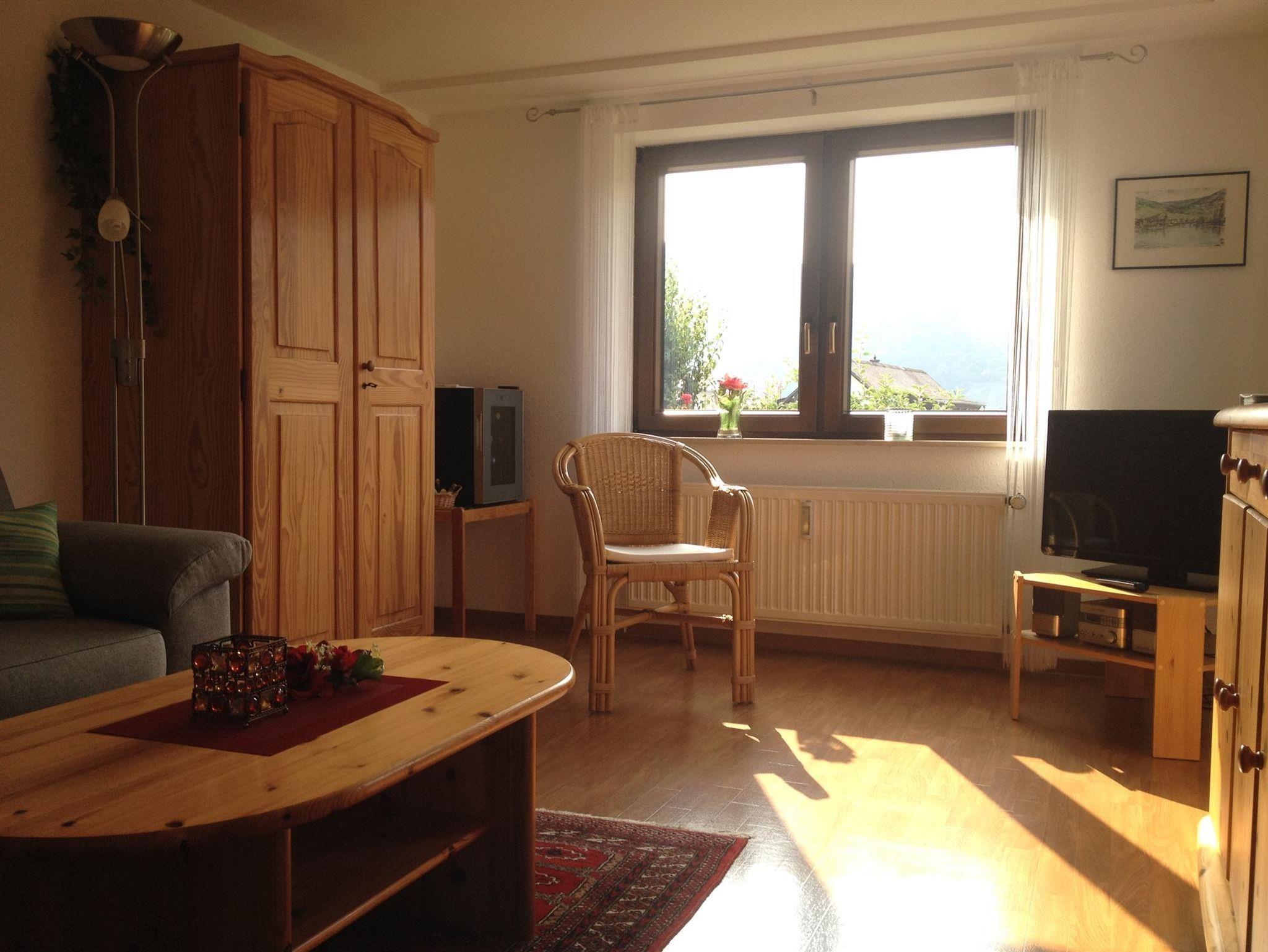 Schöne gemütliche und komfortabel eingerichtete Ferienwohnung für 2 Personen (Nichtraucher), in ruhiger Lage, bietet Ihnen ideale Erholungsmöglichkeiten. Separater Zugang, 20 qm große Südterrasse, eine Liegewiese (Sonnenschirm, Stühle, Liegen) mit wunderschöner Aussicht auf die Moselberge und die Burg Landshut. 1 Wohnzimmer mit Couch, Getränkebar, Kabel-TV, CD-Player, 1 Schlafzimmer. Separate moderne Küche mit Ceran-Kochfeld, Geschirrspüler, Kühl-Gefrierschrank, Backofen und weitere diverse Küchengeräte. Dusche/WC mit Haartrockner. Kostenloses W-Lan. Parkplatz direkt am Haus.