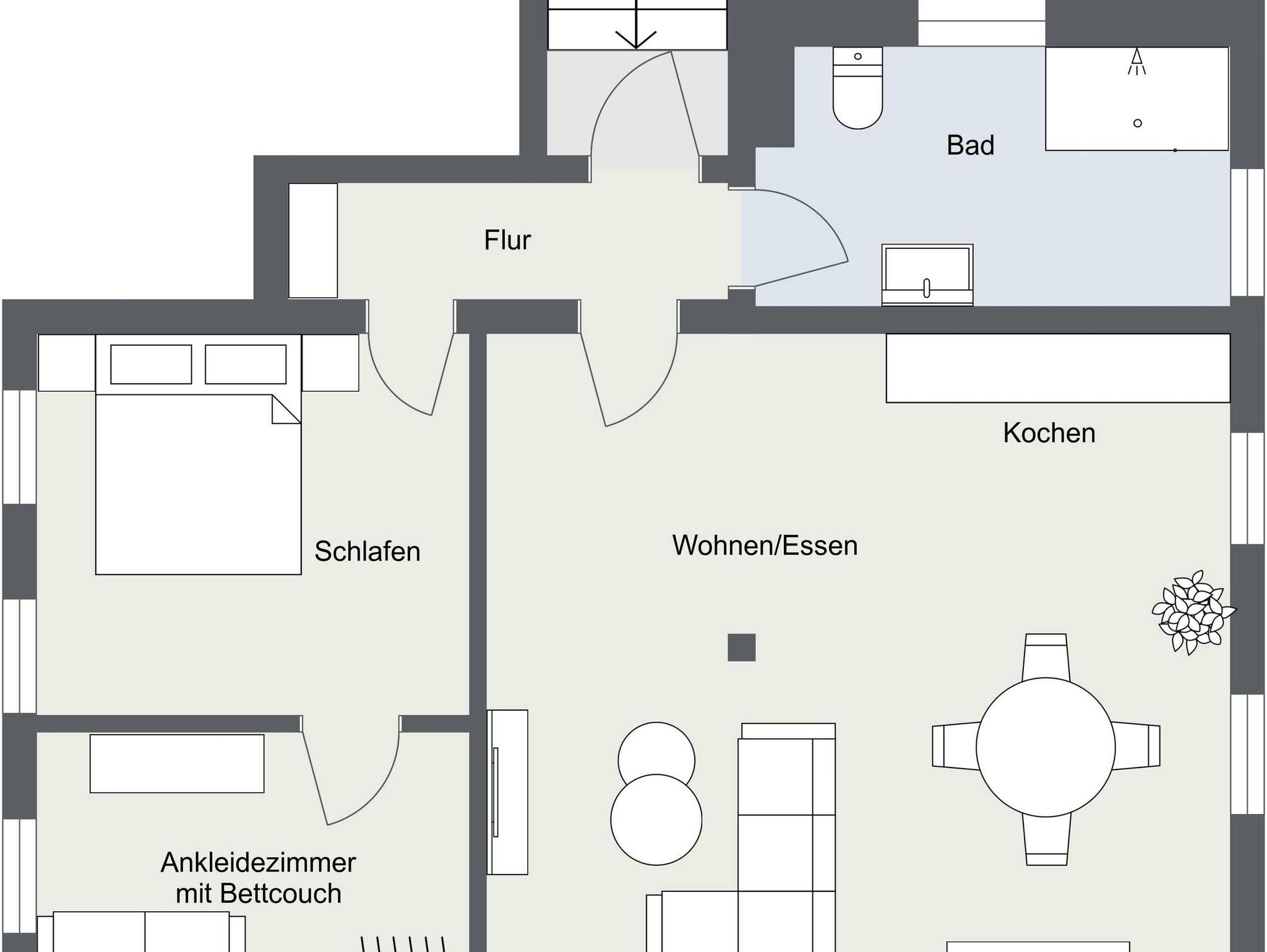 Die Ferienwohnung befindet sich im Erdgeschoss des Winzerhauses. Das Herz der 70 qm großen Wohnung ist der großzügige, offene Wohn-/Essbereich mit moderner und voll ausgestatteter Küche. Die Wohnung verfügt über ein großes, helles Bad und ein Doppelschlafzimmer mit angrenzendem, separatem Ankleidezimmer. Im Ankleidezimmer steht ein Schlafsofa als zusätzliche Schlafmöglichkeit für bis zu 2 Personen zur Verfügung.