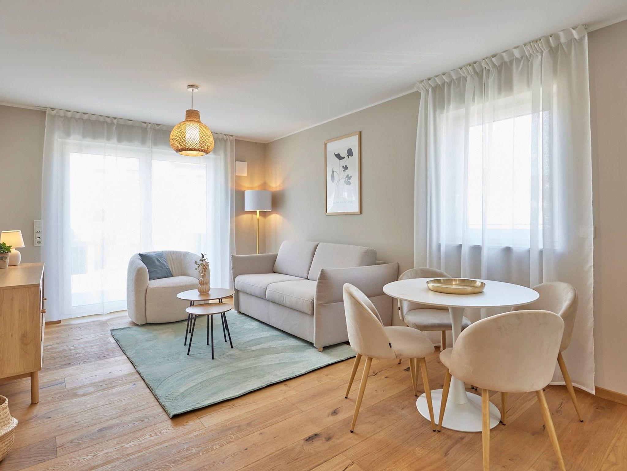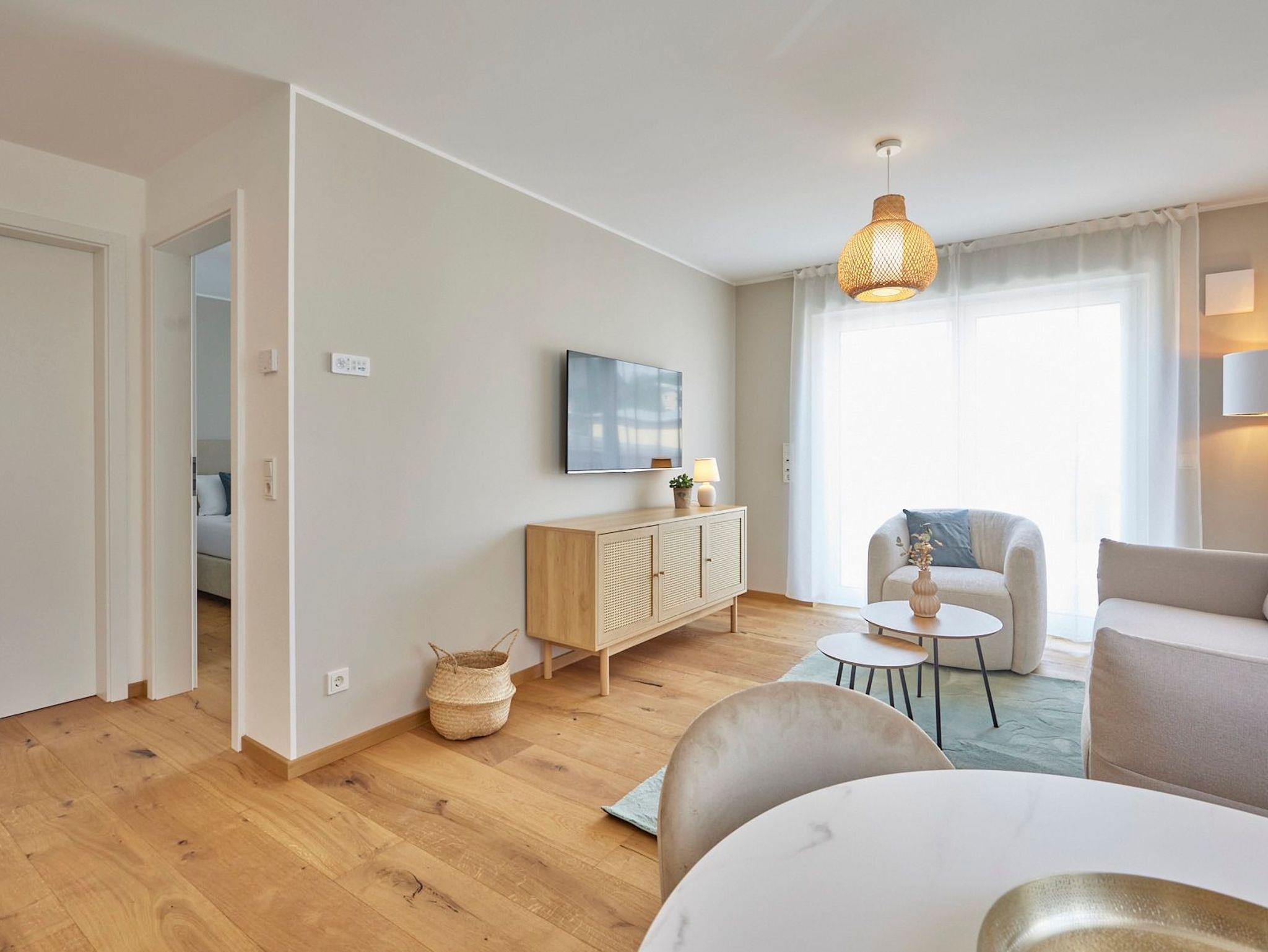 · Hochwertige Ausstattung: Echtholzböden, gemütliche Boxspringbetten, eine voll ausgestattete Küche, ein großes, exklusives Bad, kostenloses W-LAN und ein moderner Flatscreen-Smart-TV sorgen für ein topmodernes Wohnambiente.