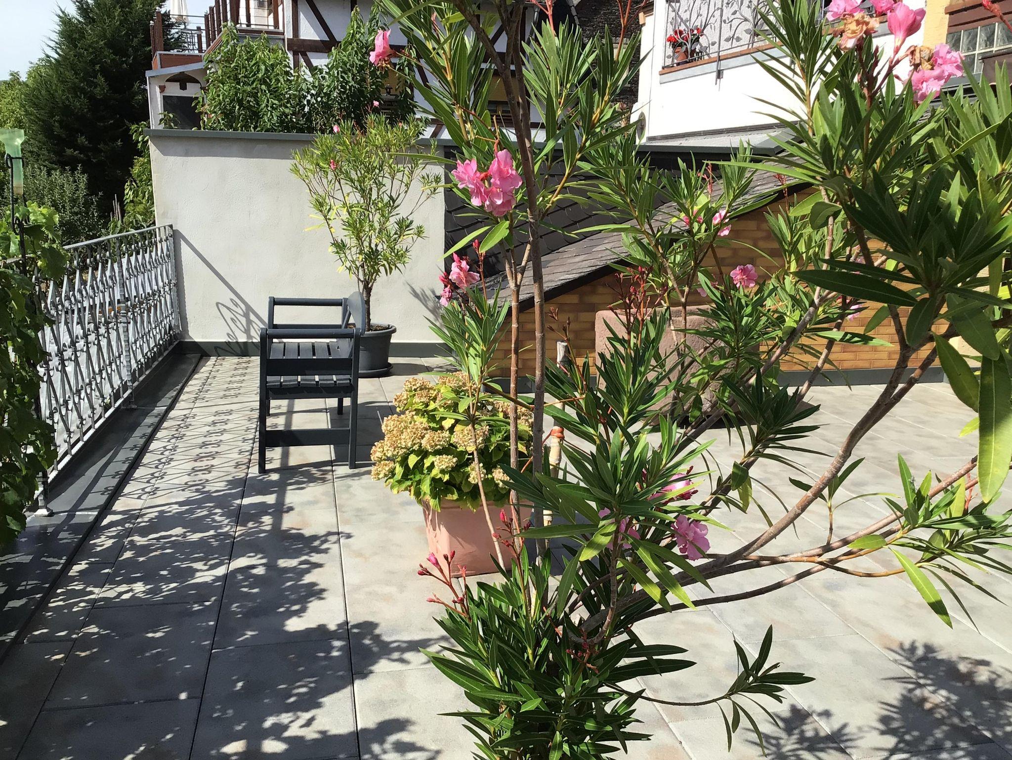 Gepflegtes Haus mit familiärer Atmosphäre in ruhiger Lage am Weinberg, sonnige Freiterrasse mit herrlichem Blick auf die Weinberge, Mosel und Weinlaube mit Blick zur Burg, eigener Parkplatz am Haus, nicht an der Straße, idealer Startplatz zum Wandern und Radfahren.