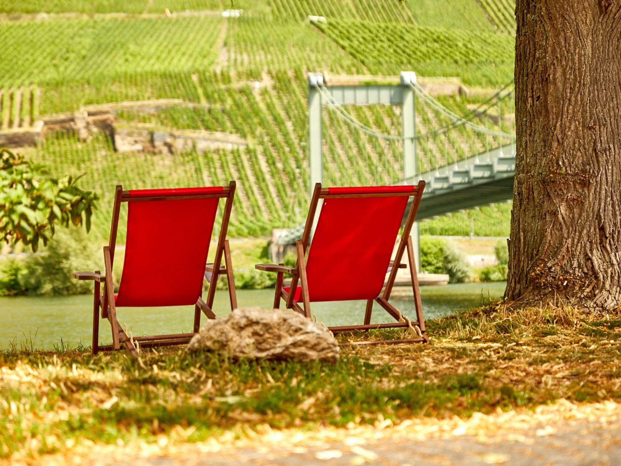 Vor dem Haus und direkt am Moselufer stehen unseren Gästen Sitz- und Verweilmöglichkeiten zur Verfügung.