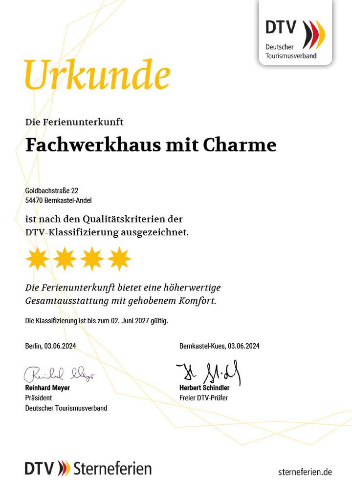 Das Ferienhaus Fachwerkhaus mit Charme befindet sich im Ortsteil Andel in unmittelbarer Nähe von Bernkastel-Kues und hat die F **** DTV-Klassifizierung.