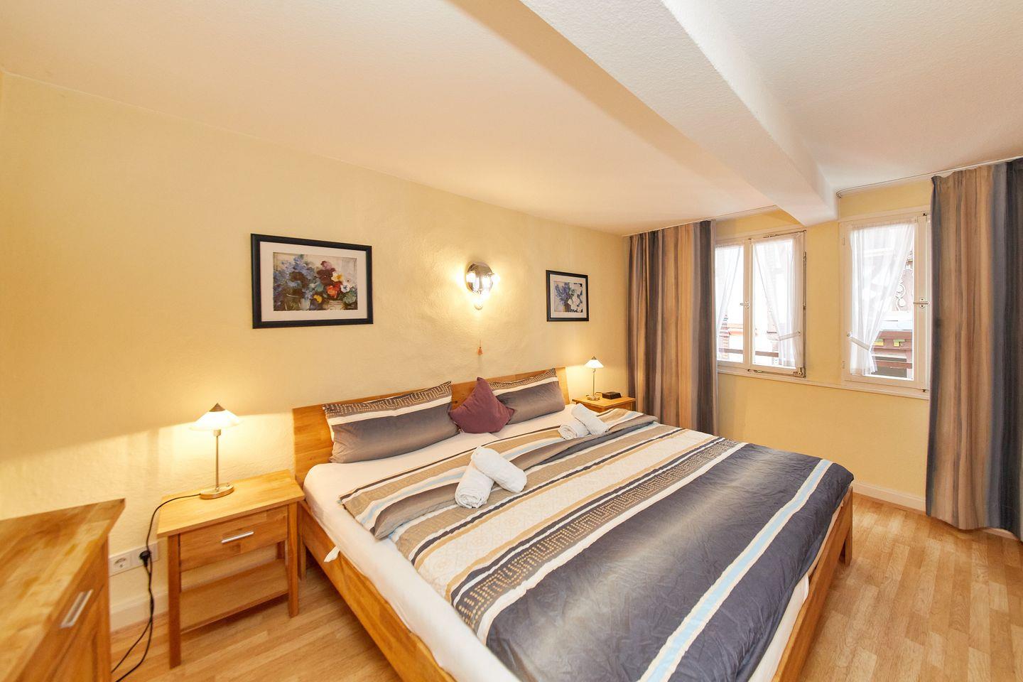 Die Ausstattung lässt kaum Wünsche offen: In zwei geschmackvoll eingerichteten Schlafzimmern mit Dielenboden finden bis zu vier Personen bequeme Schlafmöglichkeiten. Das Badezimmer ist mit einer Dusche, einem WC und einem Haartrockner ausgestattet und bietet Badetücher sowie Handtücher als Erstausstattung für Ihren Aufenthalt.