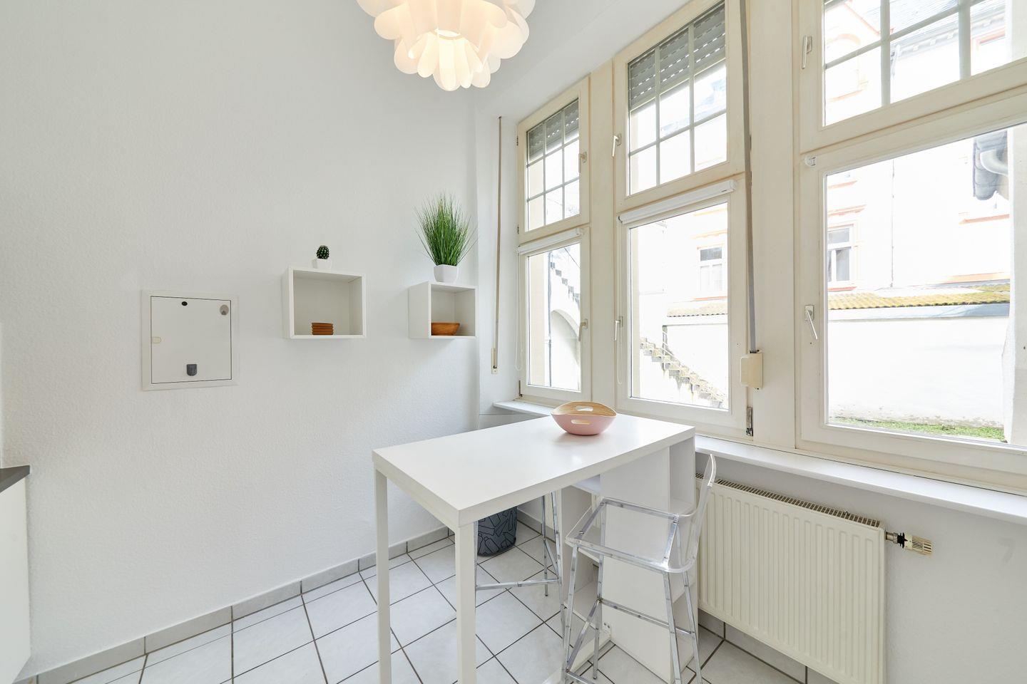 Die im ersten Obergeschoss gelegene Ferienwohnung besteht aus insgesamt drei Zimmern. Ein Schlafzimmer mit Sitzecke bietet zwei Schlafmöglichkeiten und eignet sich besonders für Einzelreisende oder Paare, für entspannte Abende steht Ihnen ein TV mit Satellitenanschluss sowie ein Radio zur Verfügung. WLAN ist kostenlos nutzbar, sodass auch das Arbeiten aus dem Homeoffice problemlos möglich ist.