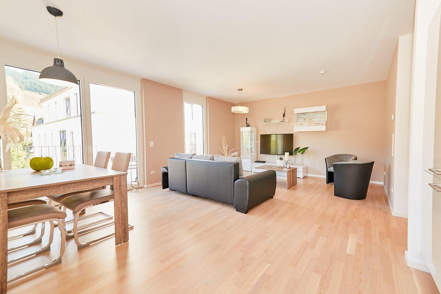 Wunderschöne, helle und moderne Ferienwohnungen im Stadtteil Kues mit traumhaftem Blick auf die Burg Landshut.