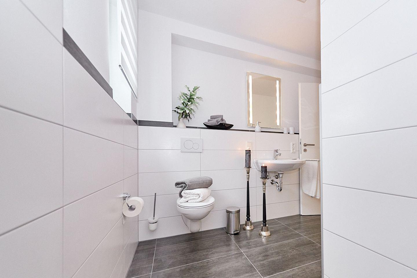 1 Badezimmer mit ebenerdiger Dusche und WC