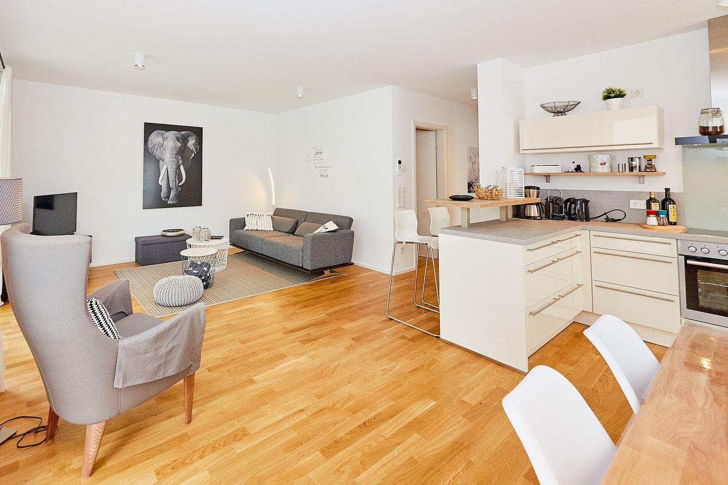 Wohn- / Esszimmer mit offener Küche und Schlafcouch für zwei Personen