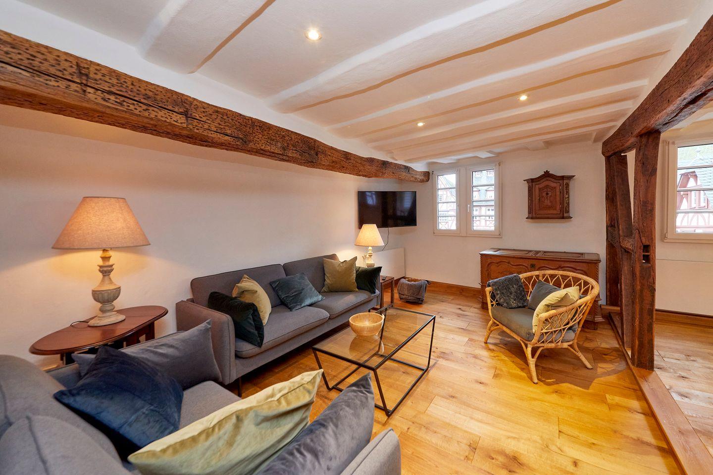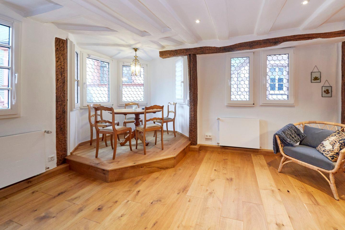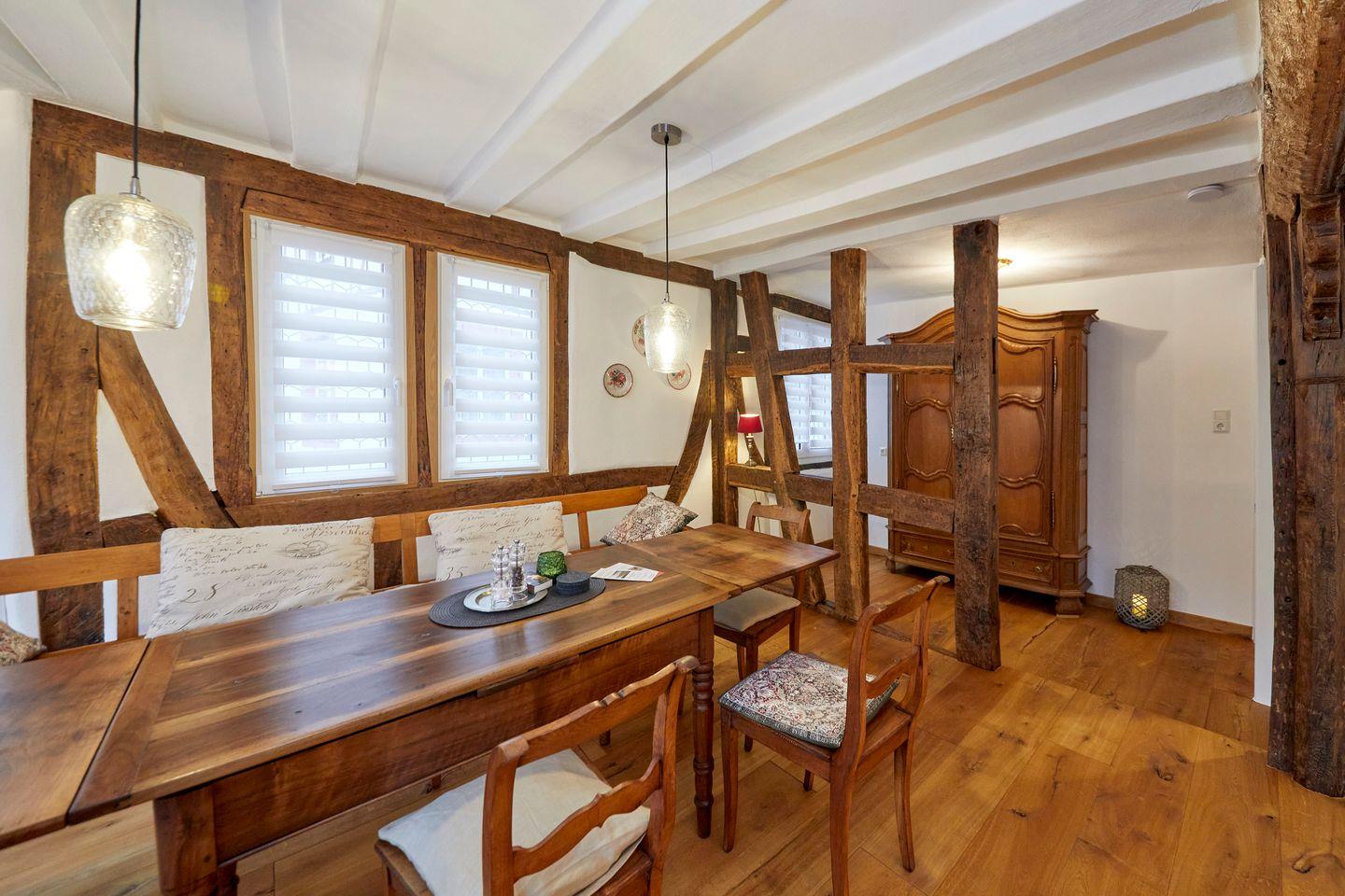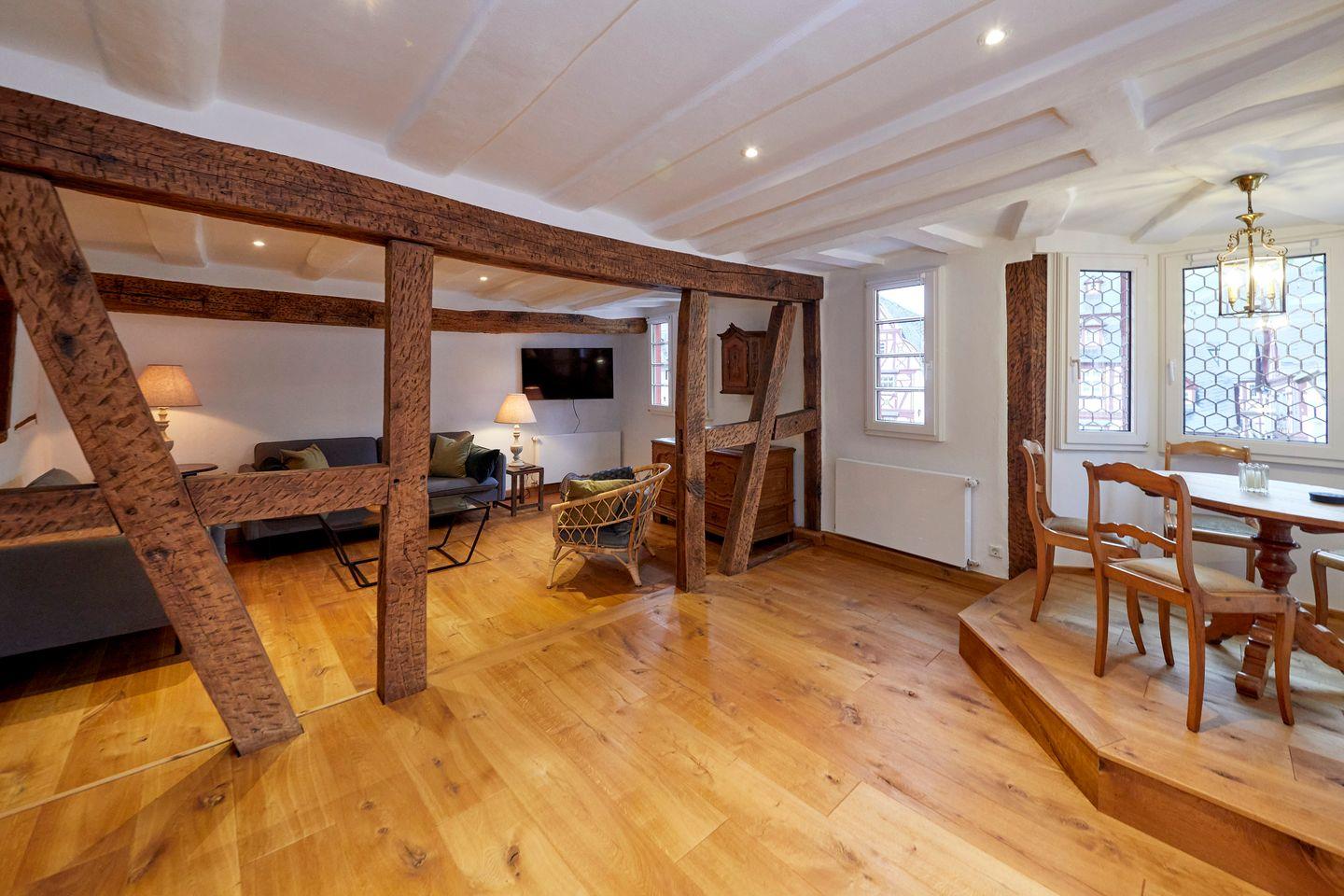 ?Die in dem denkmalgeschützten Fachwerkhaus über 2 Etagen gehende Ferienwohnung (ca. 190 m²), mitten am historischen Marktplatz von Bernkastel, bietet großzügig Platz für 8 Gäste.
