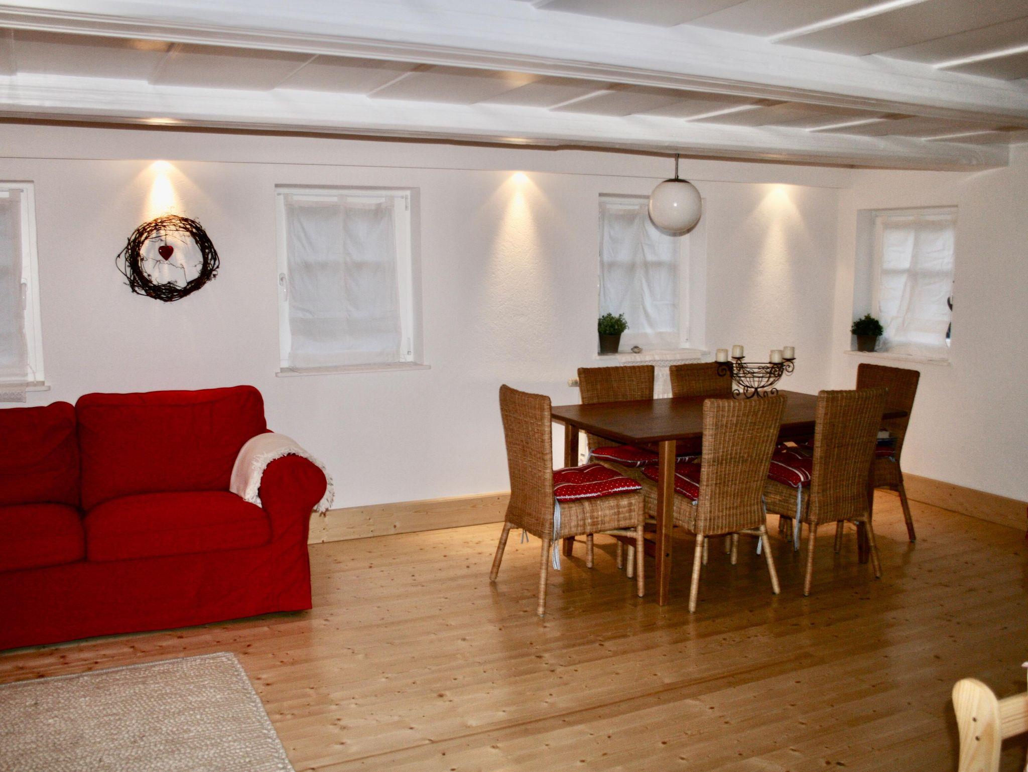Im Obergeschoss befinden sich 3 Schlafzimmer (Hinweis: Die Schlafzimmer sind über eine steile Treppe zu erreichen). Im unteren Teil des Hauses befindet sich die große Blockstube mit Wohnküche sowie ein Bad mit Dusche, Badewanne und WC. Die Wohnküche ist komplett eingerichtet.