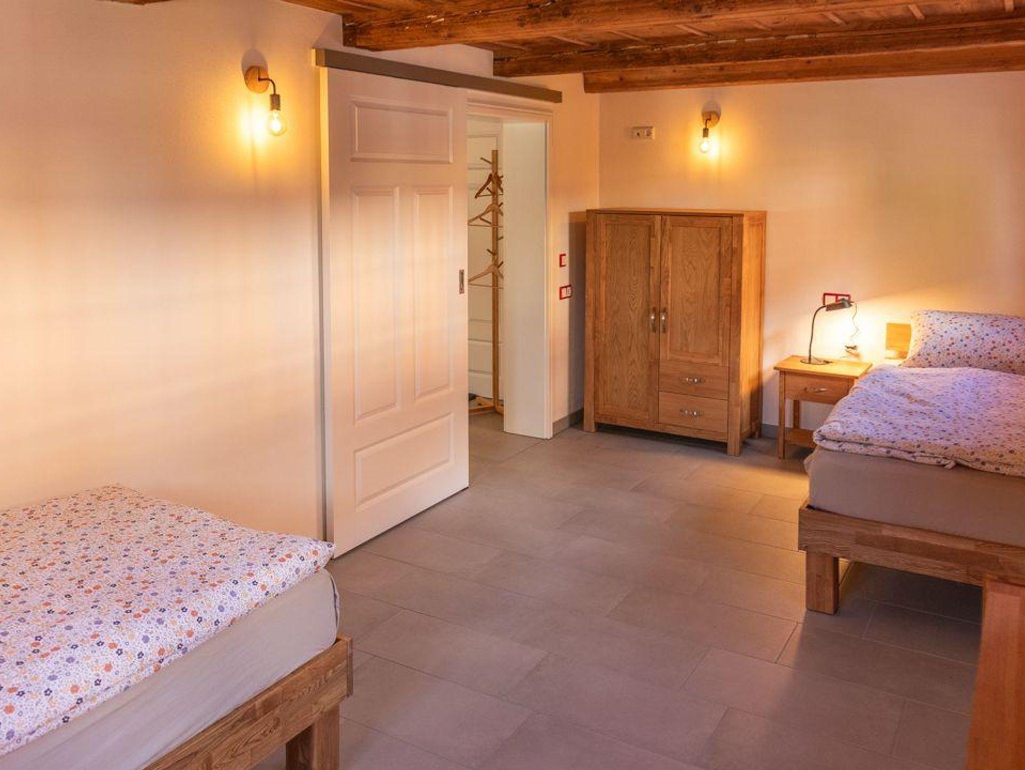 Praktisch für größere Gruppen: Über eine doppelte Verbindungstür im Schlafzimmer kann die Wohnung mit der benachbarten Ferienwohnung „Scheibe“ vernetzt werden – so genießen Sie Flexibilität und gemeinsame Zeit.