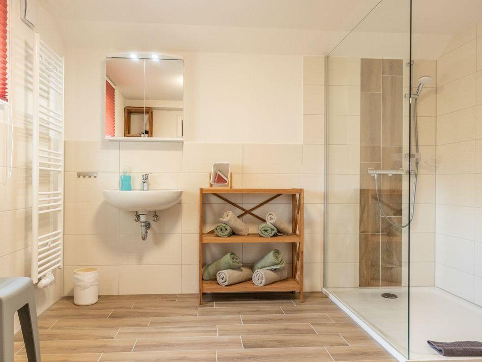 Die Küche ist komplett ausgestattet, der großzügige Essbereich lädt zum gemeinsamen Essen ein. Ein modernes Bad mit ebenerdiger Dusche sorgt für Wohlfühlmomente. Der Balkon und die gemütliche Sitzecke im Garten bieten schöne Rückzugsorte im Freien.