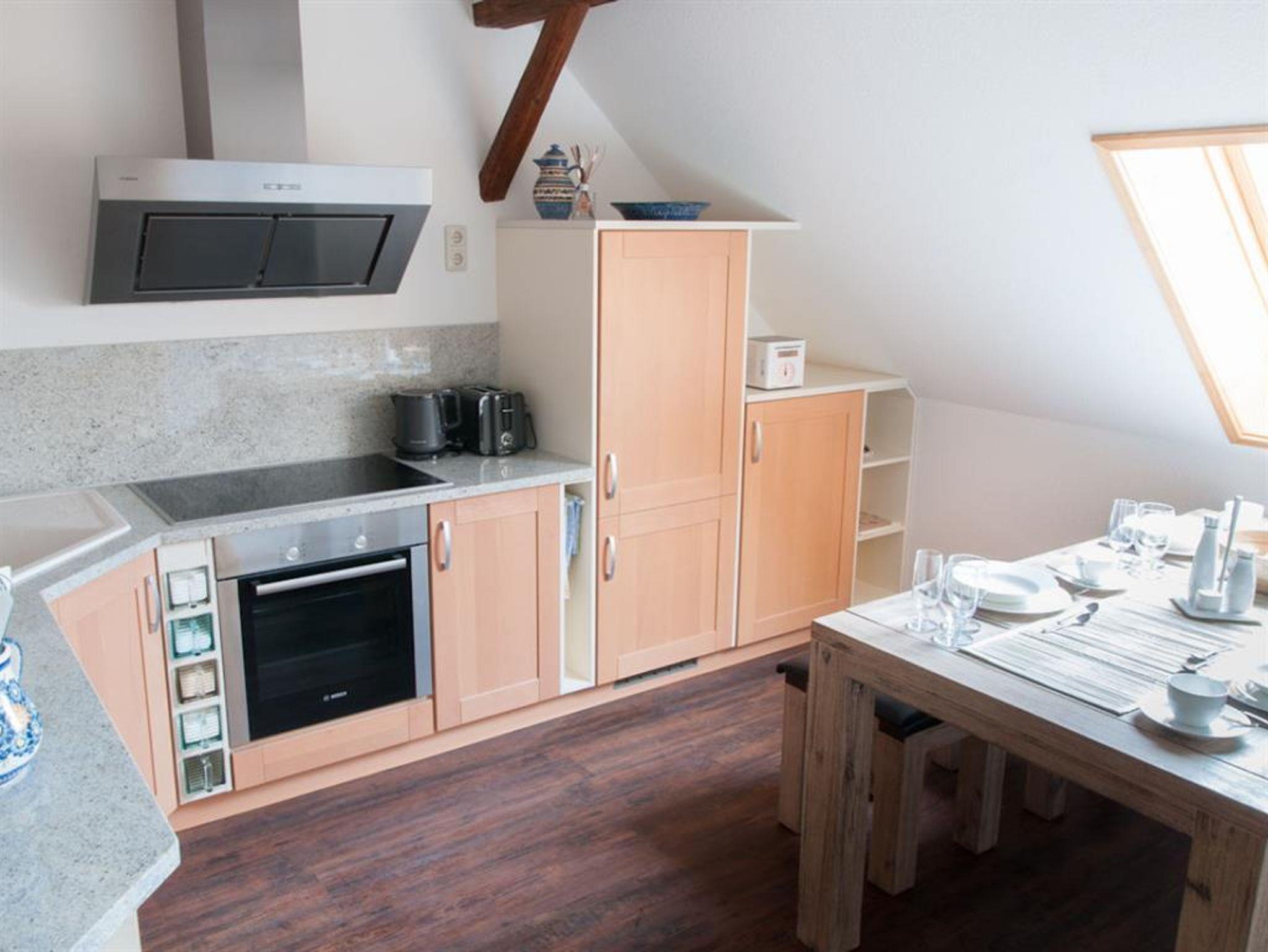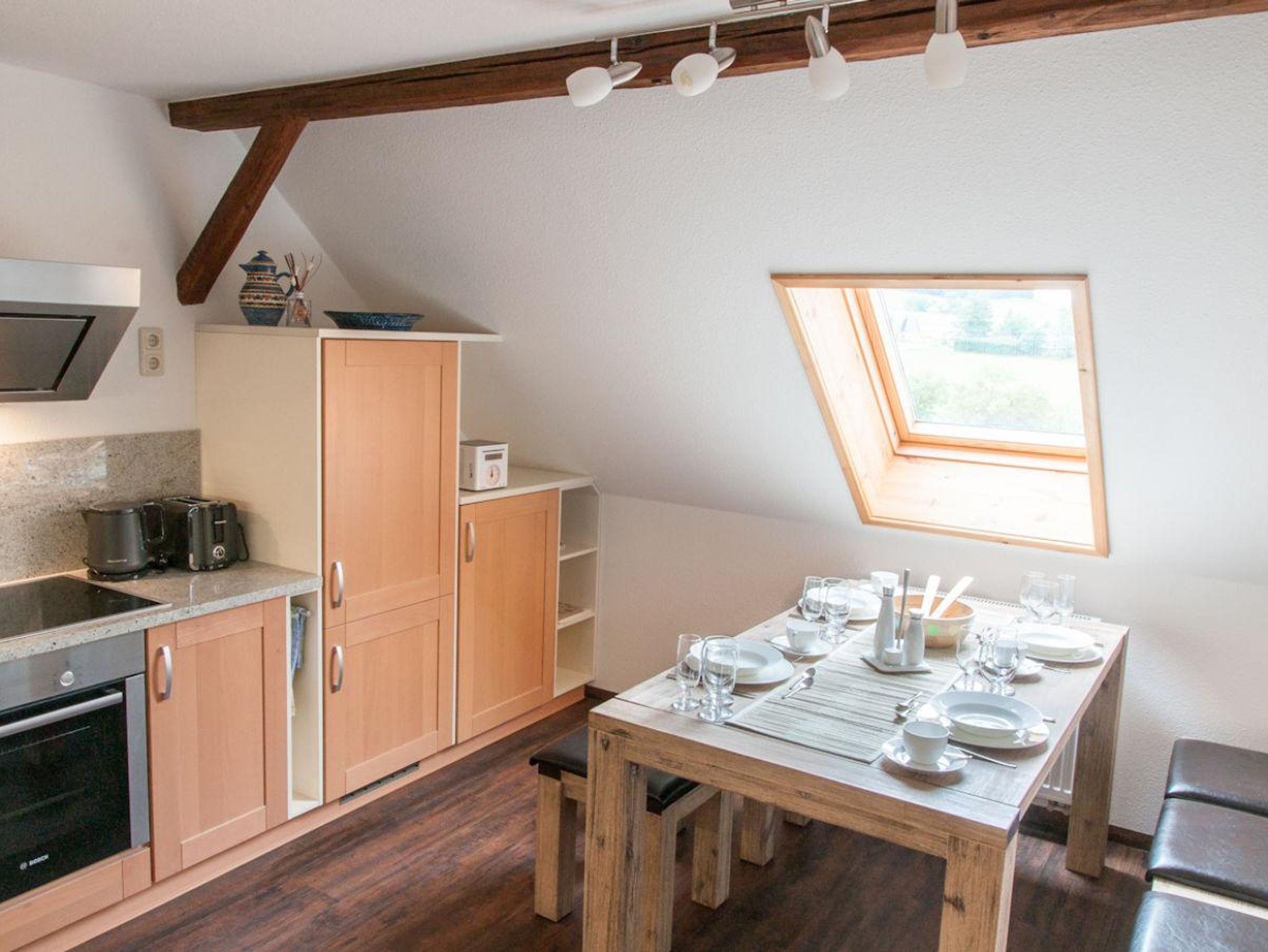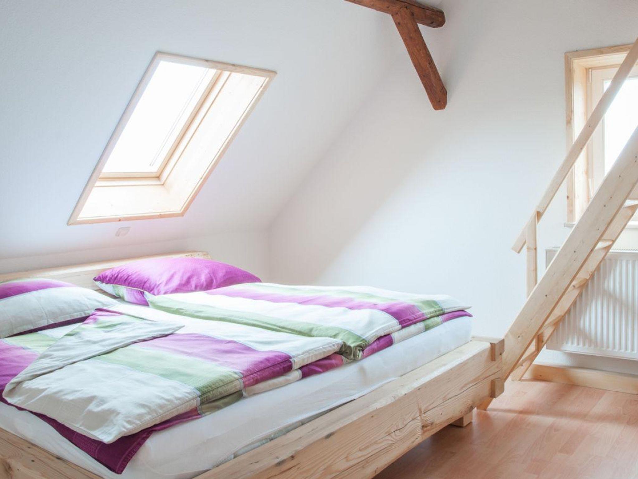Die Ferienwohnung befindet sich in Bertsdorf, ca. 5 km von der Stadt Zittau entfernt. Die Ferienwohnung ist im 2. Obergeschoss eines sanierten Umgebindehauses und ist liebevoll und hochwertig eingerichtet. Sie verfügt über eine Einbauküche mit modernen Geräten und einer gemütlichen Essecke. Das schicke Bad ist ausgestattet mit Dusche/ WC und einem großen Waschtisch. Im Wohnzimmer können Sie entspannt fernsehen, DVD schauen und relaxen. Zu beachten ist, dass das Elternschlafzimmer und das Kinderschlafzimmer nur durch eine Treppe getrennt sind (Galerie). Ein weiteres Bett befindet sich in einer Nische im Wohnzimmer. Die Betten und Matrazen sind neu und bequem.