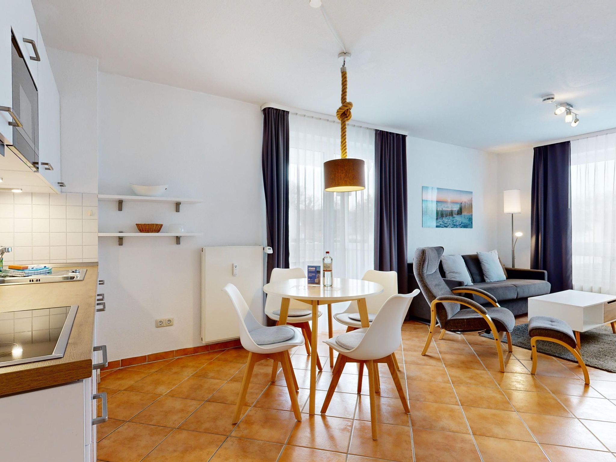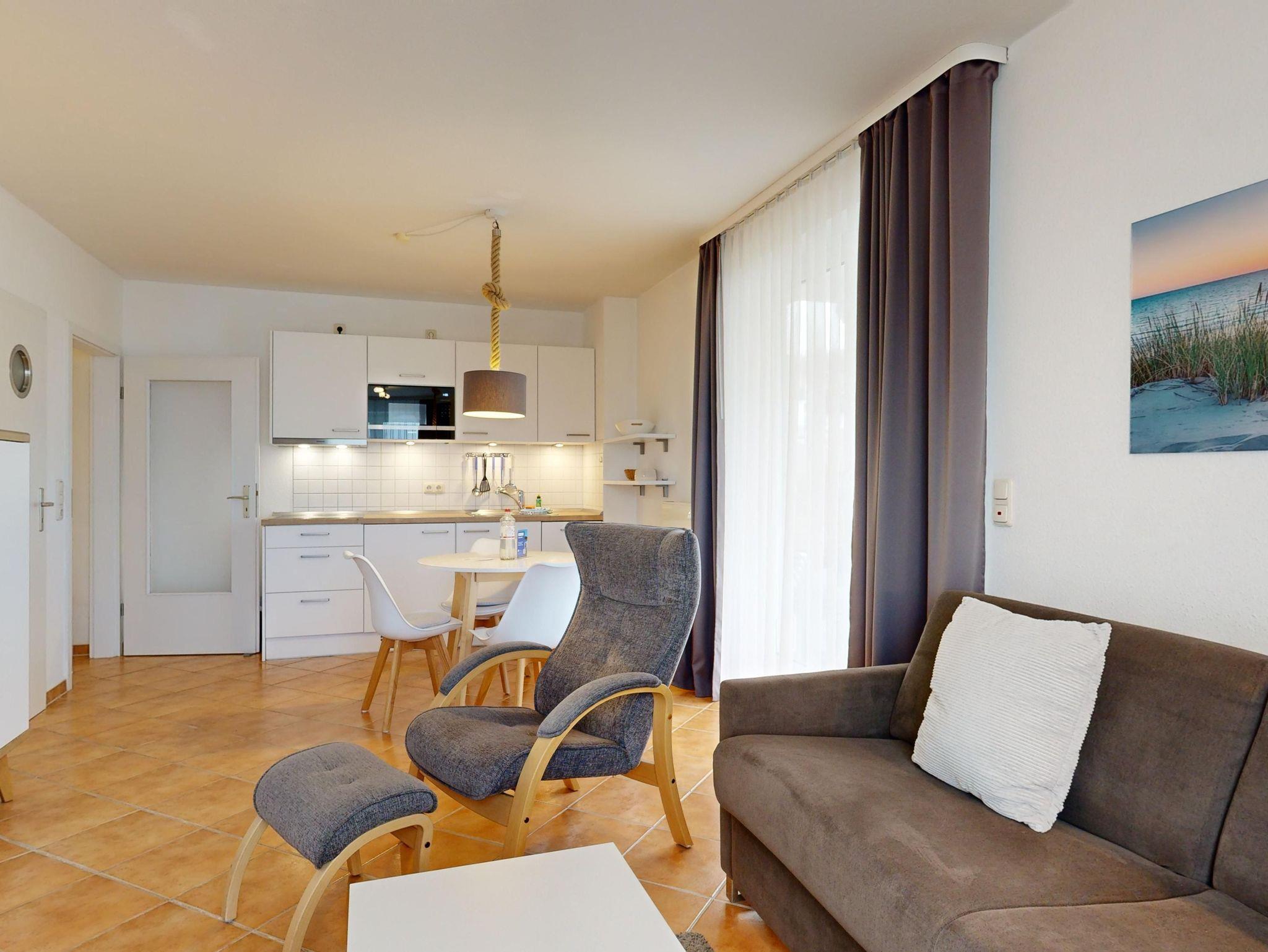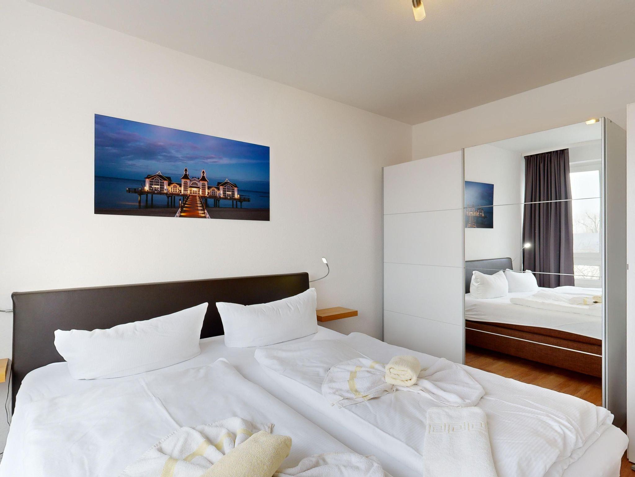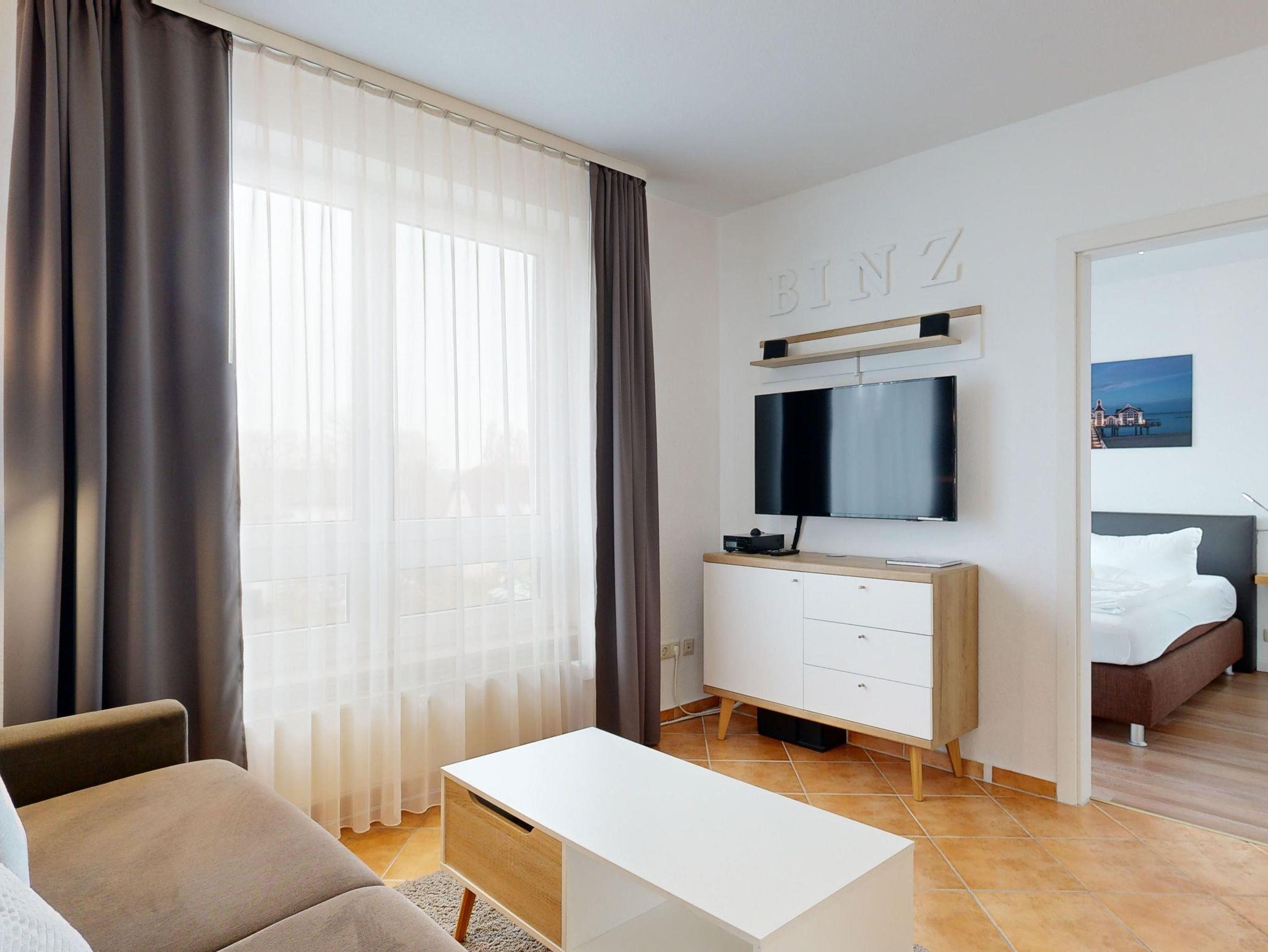 Ferienwohnung Binzer Sterne 31 für bis zu 4 Personen im 1. Obergeschoss (2 Zimmer / 45 m²) des Appartementhauses Binzer Sterne, 1 Schlafzimmer, Parkplatz (gegen Gebühr) und freies WLAN.