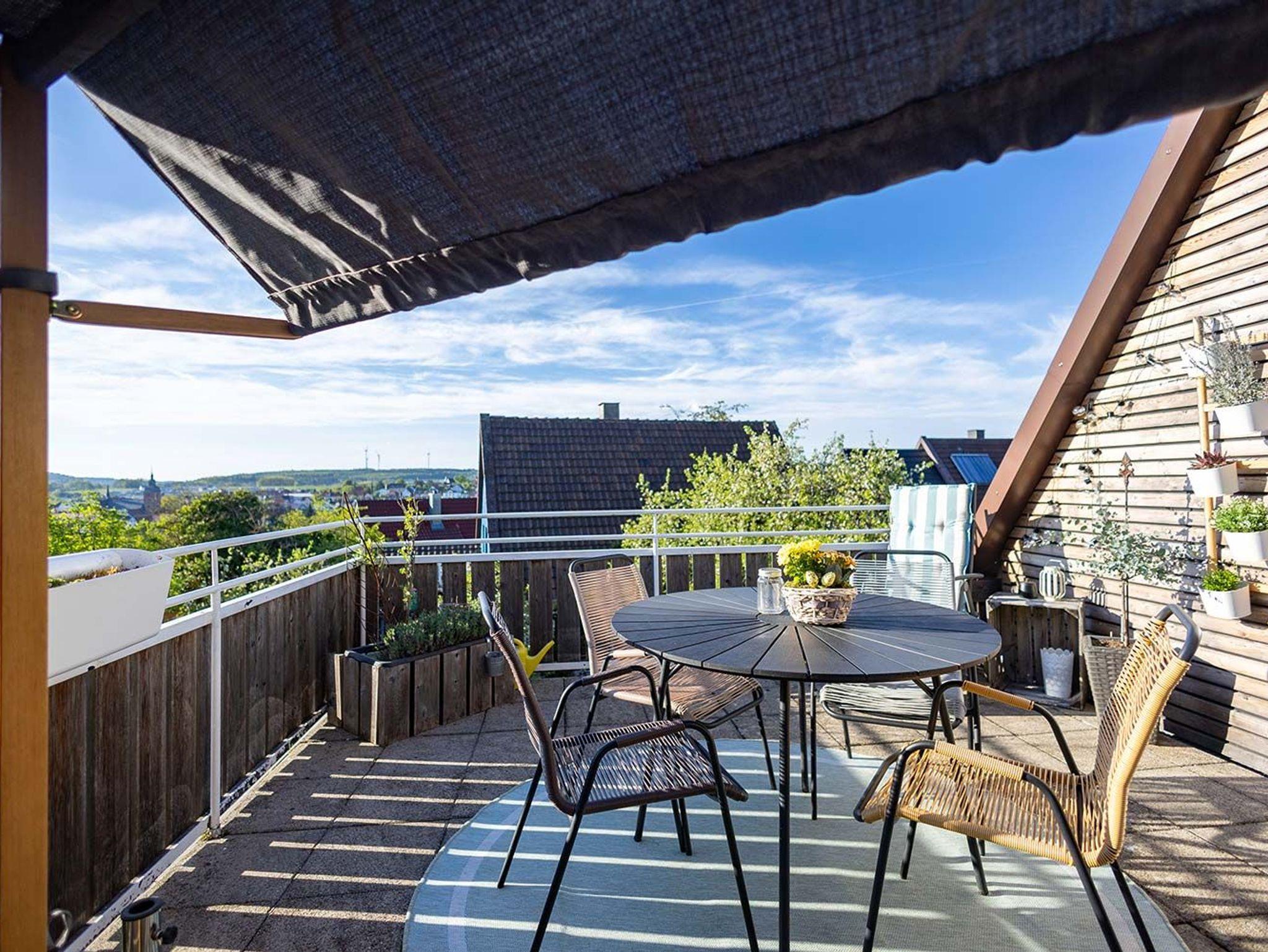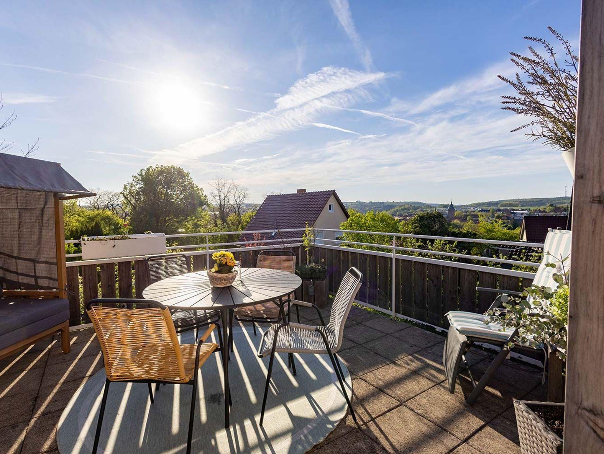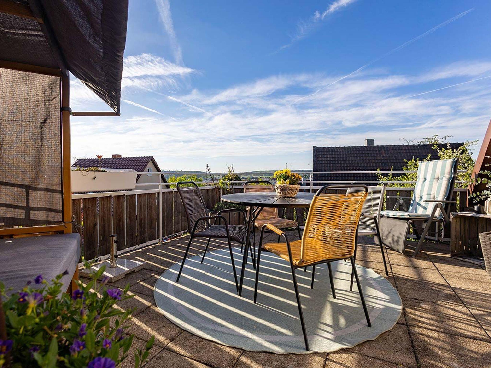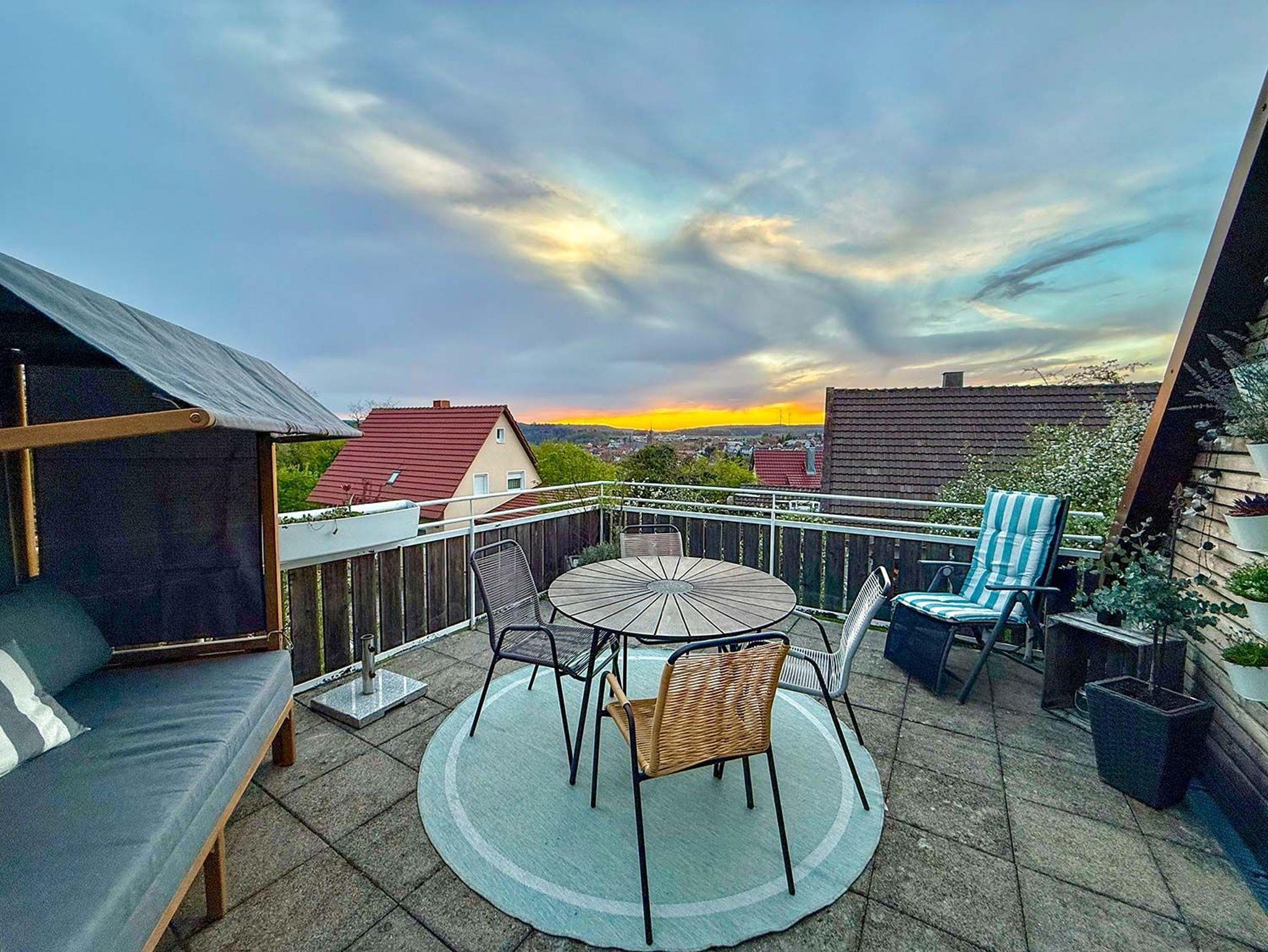 Einfach Koffer auspacken, Balkontür öffnen und den Blick über Buchen und den Odenwald genießen! Bezogene Betten, die vorbereitete Kaffeemaschine und der Blick über den Odenwald machen schon die Anreise zur Entspannung.