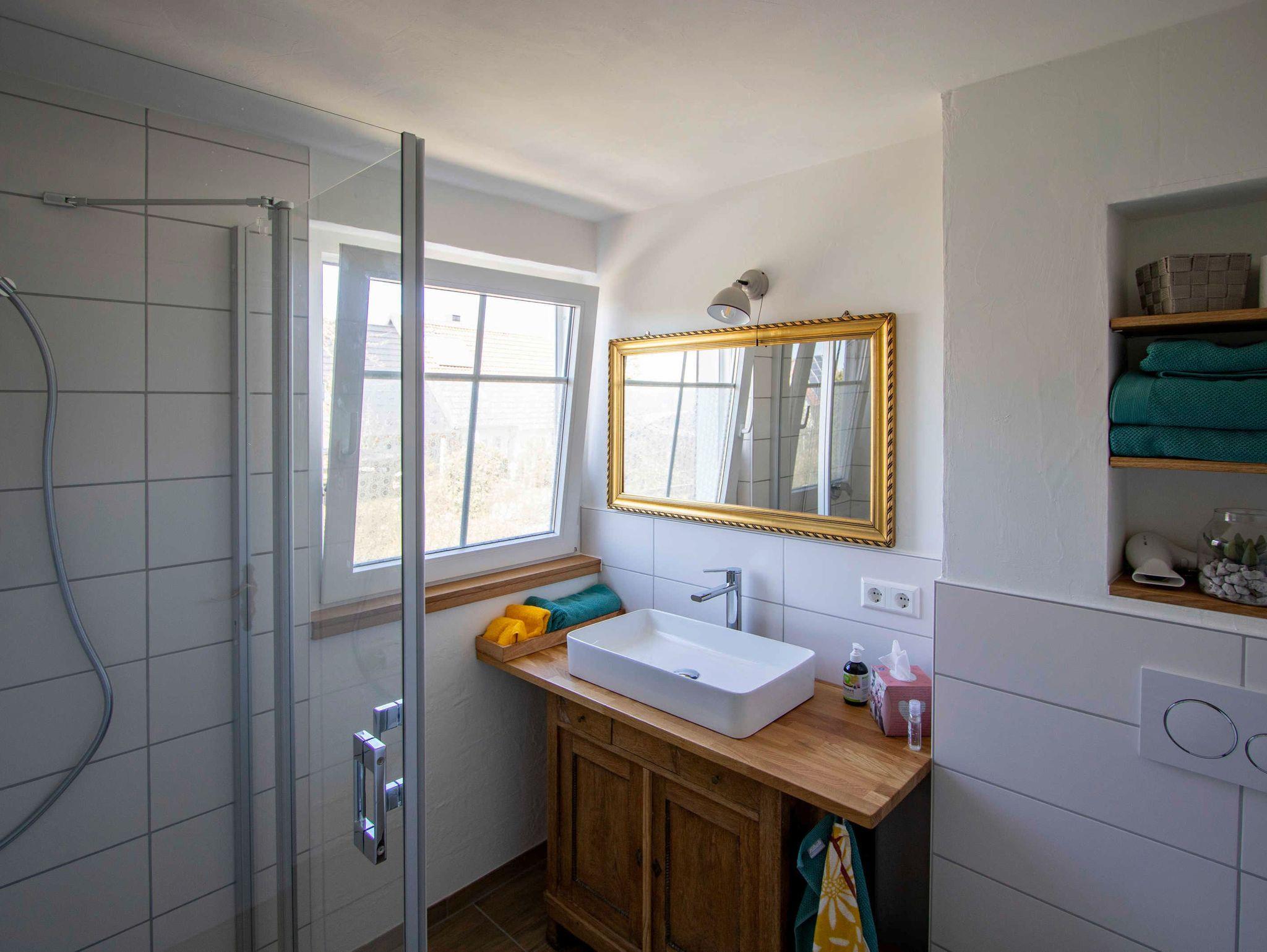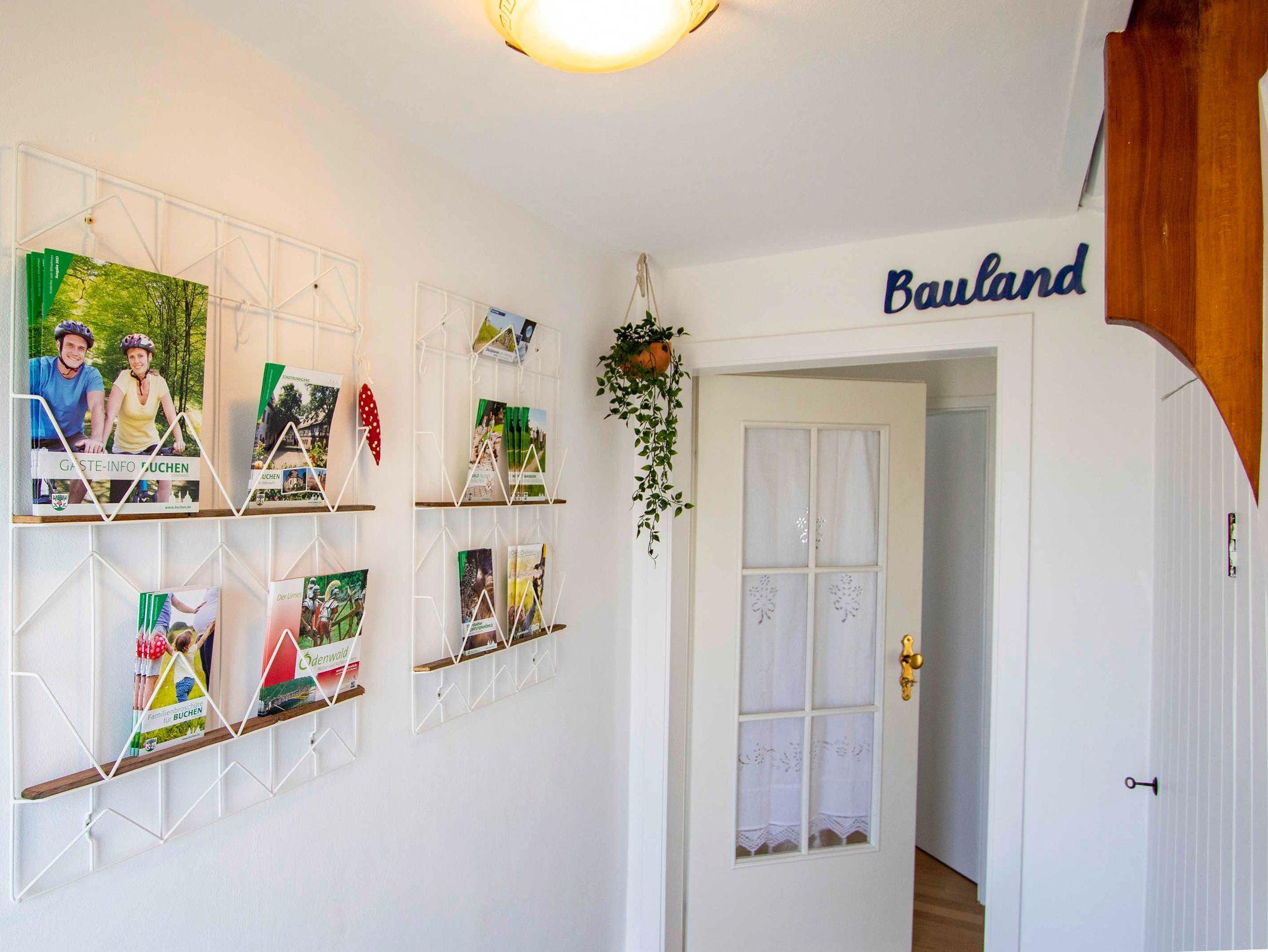 Die Ferienwohnung Bauland verfügt über ein Schlafzimmer, ein Kinderzimmer, ein Badezimmer, ein Wohnzimmer, eine Küche, einen Flur, eine große Terrasse. Der Garten steht zur Nutzung zur Verfügung.