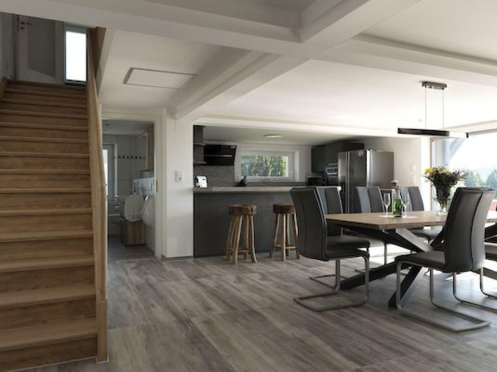 The equipment is always kept up to date and the house consists of 4 flats with separate entrances. We offer 4 kitchens, 4 living rooms and 4 dining tables with enough chairs. The house offers a total of 37 beds and there is a sauna and two whirlpools in the outdoor area. The entire outdoor area can be used as a terrace. 2 of the flats extend over 2 floors, these flats can also be connected with a connecting door. One of the other flats is barrier-free and has 2 bedrooms.