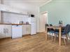 Stueetage: (åbent køkken(kogeplade(Komfur med to kogeplader, glaskeramisk), elkedel, brødrister, kaffemaskine, ovn, mikrobølgeovn, køle-fryseskab), stue / spisestue(dobbeltsovesofa, Fjernsyn(fladskærm, parabol), spisebord), soveværelse(dobbeltseng(180 x 200 cm)), badeværelse(bruser, håndvask, toilet)) varme(gas), terrasse, havemøbler, parkering, Håndklæder/sengelinned (ekstra gebyr)